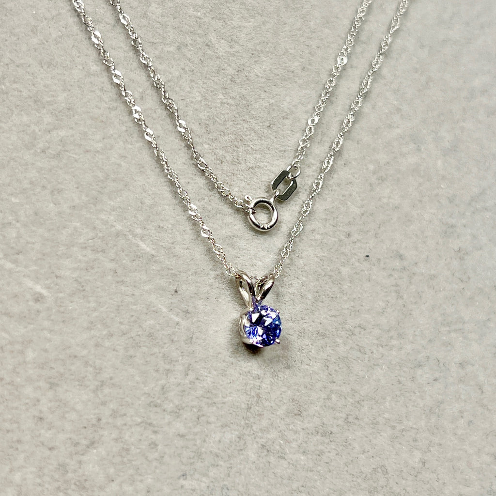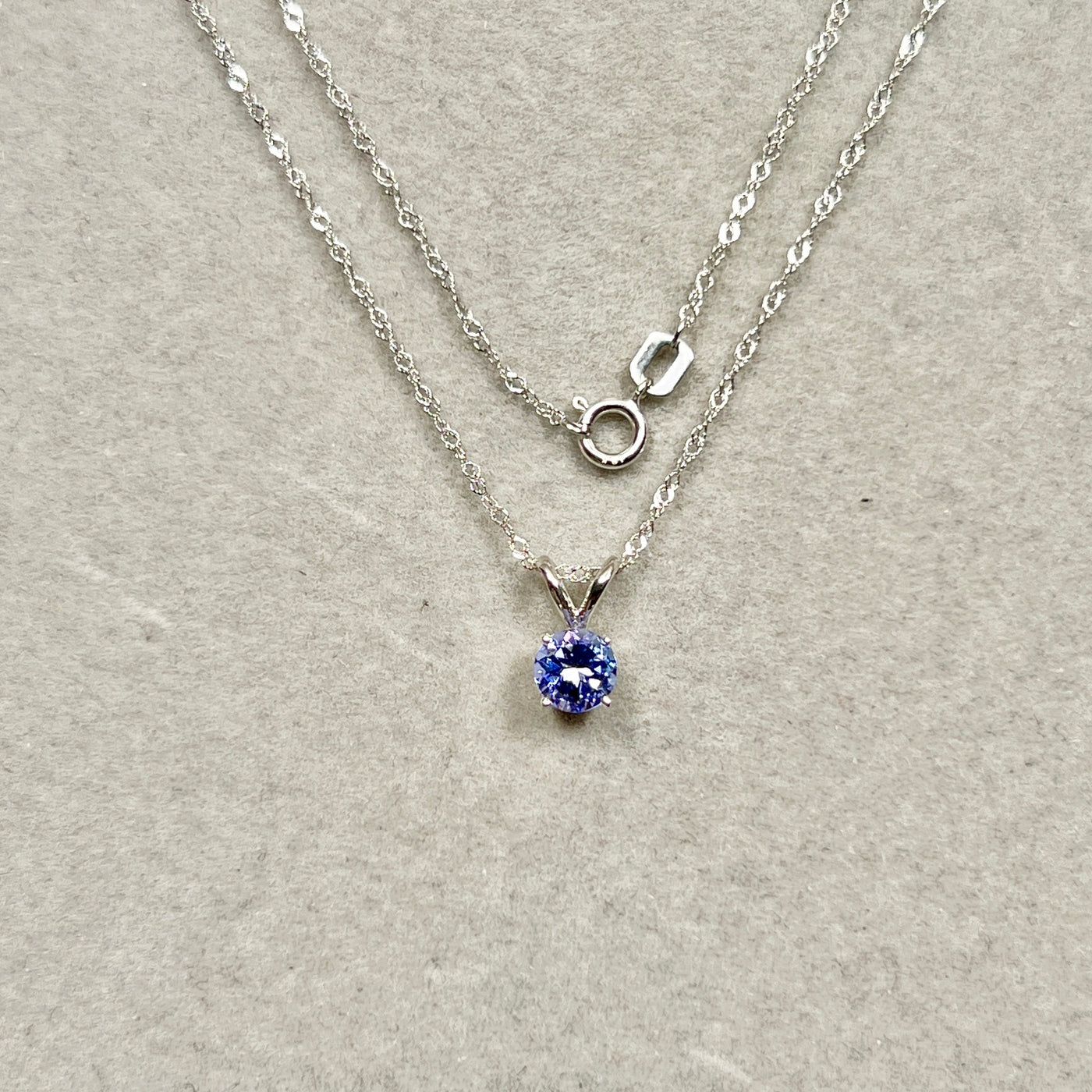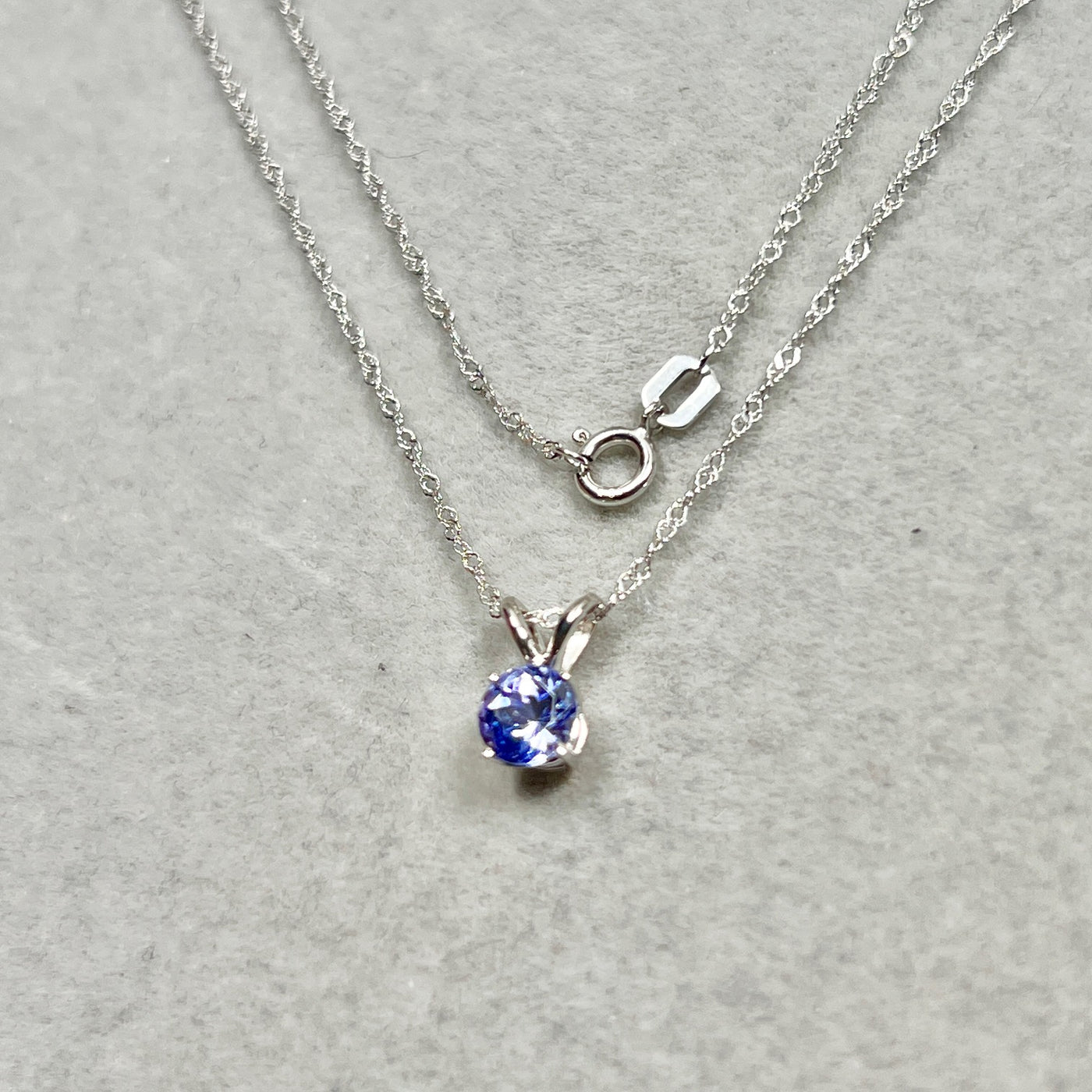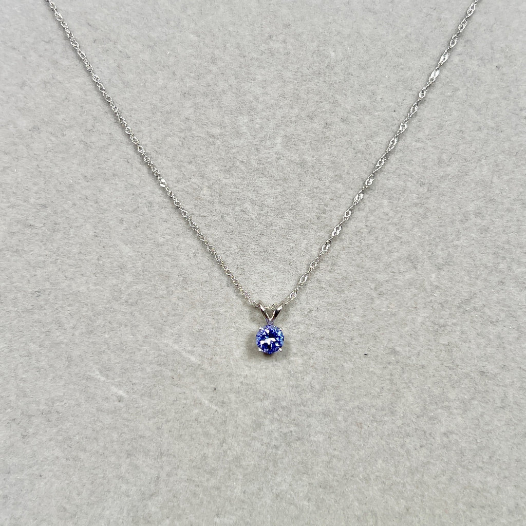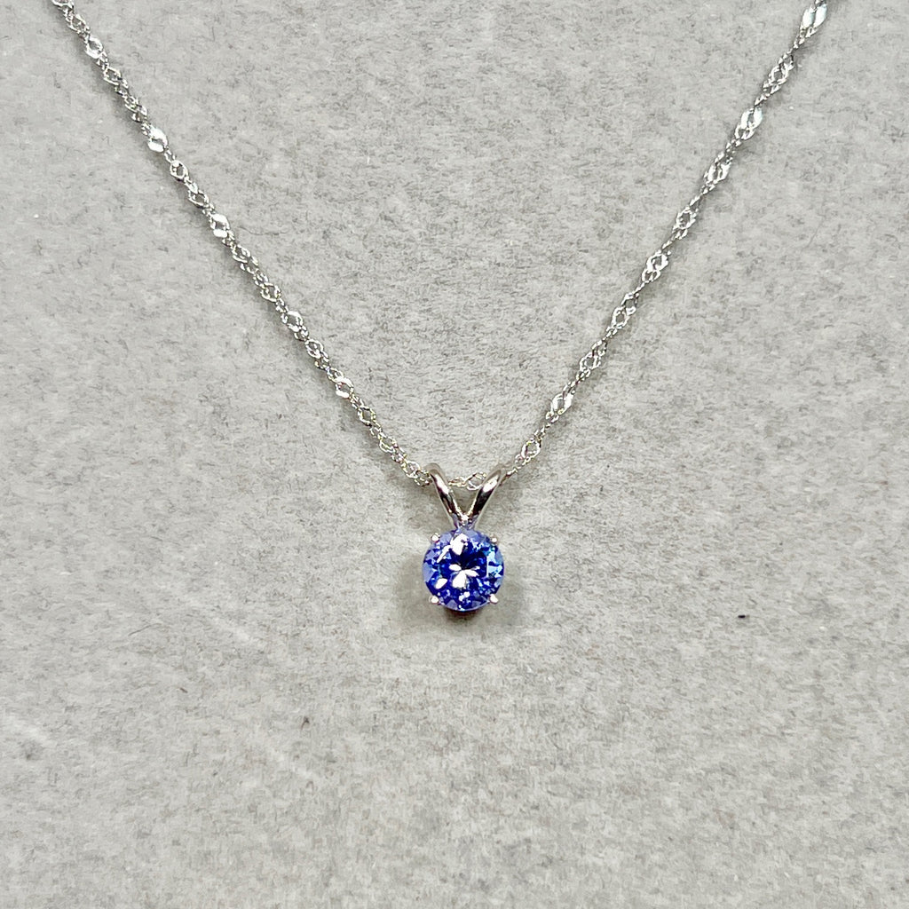 5 mm AA Round Tanzanite Solitaire Pendant 0.49 Cts 18K White Gold – 18” Singapore Chain