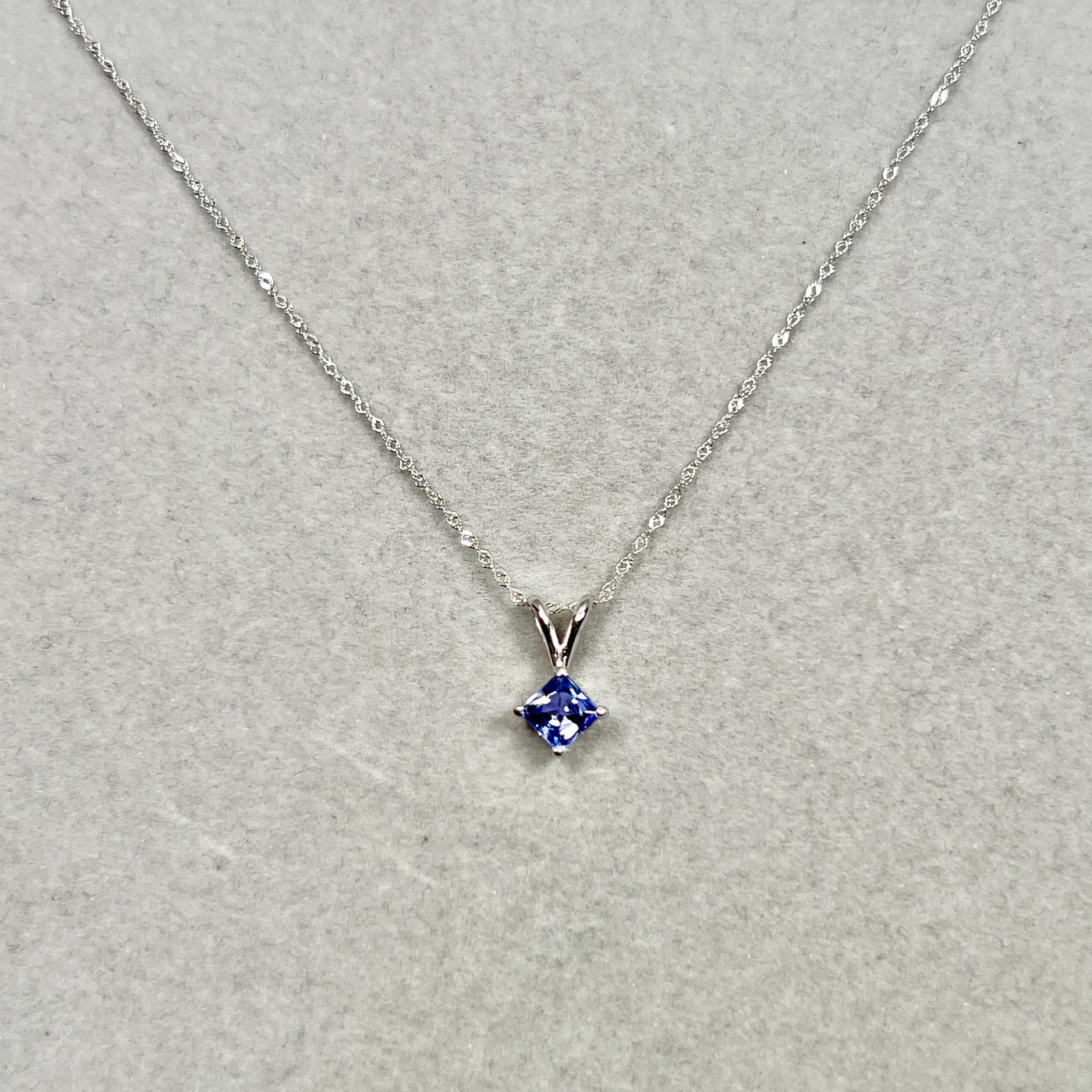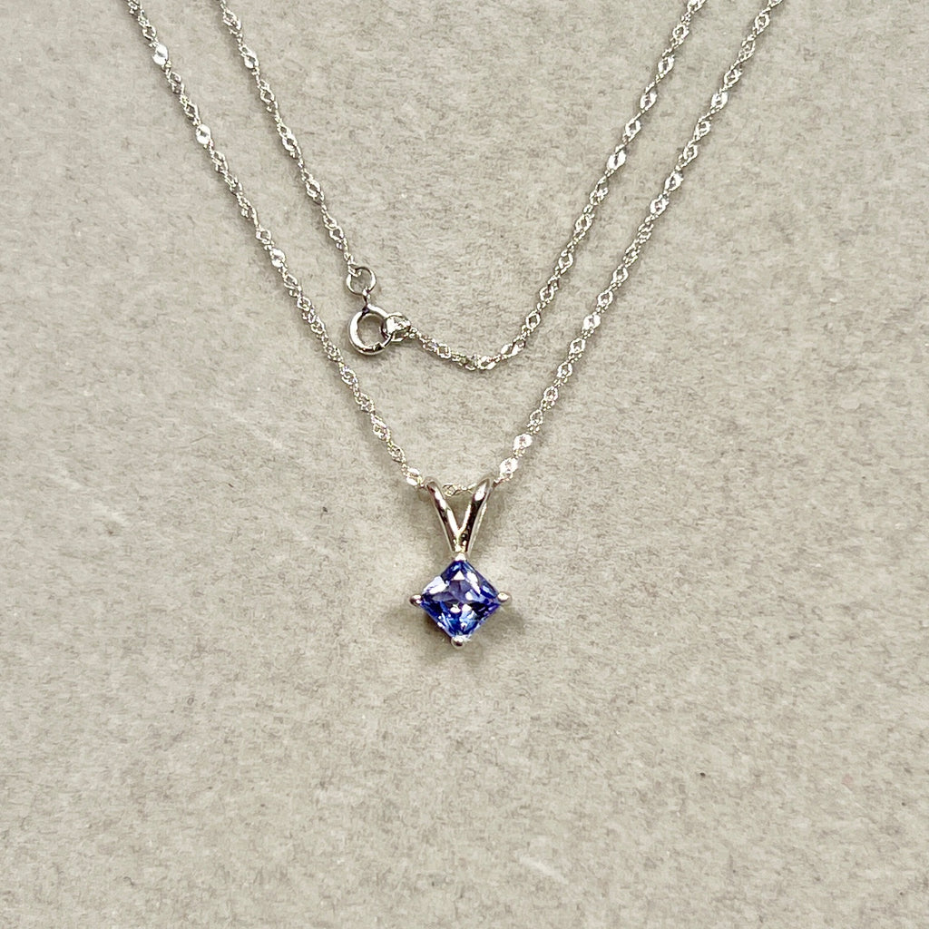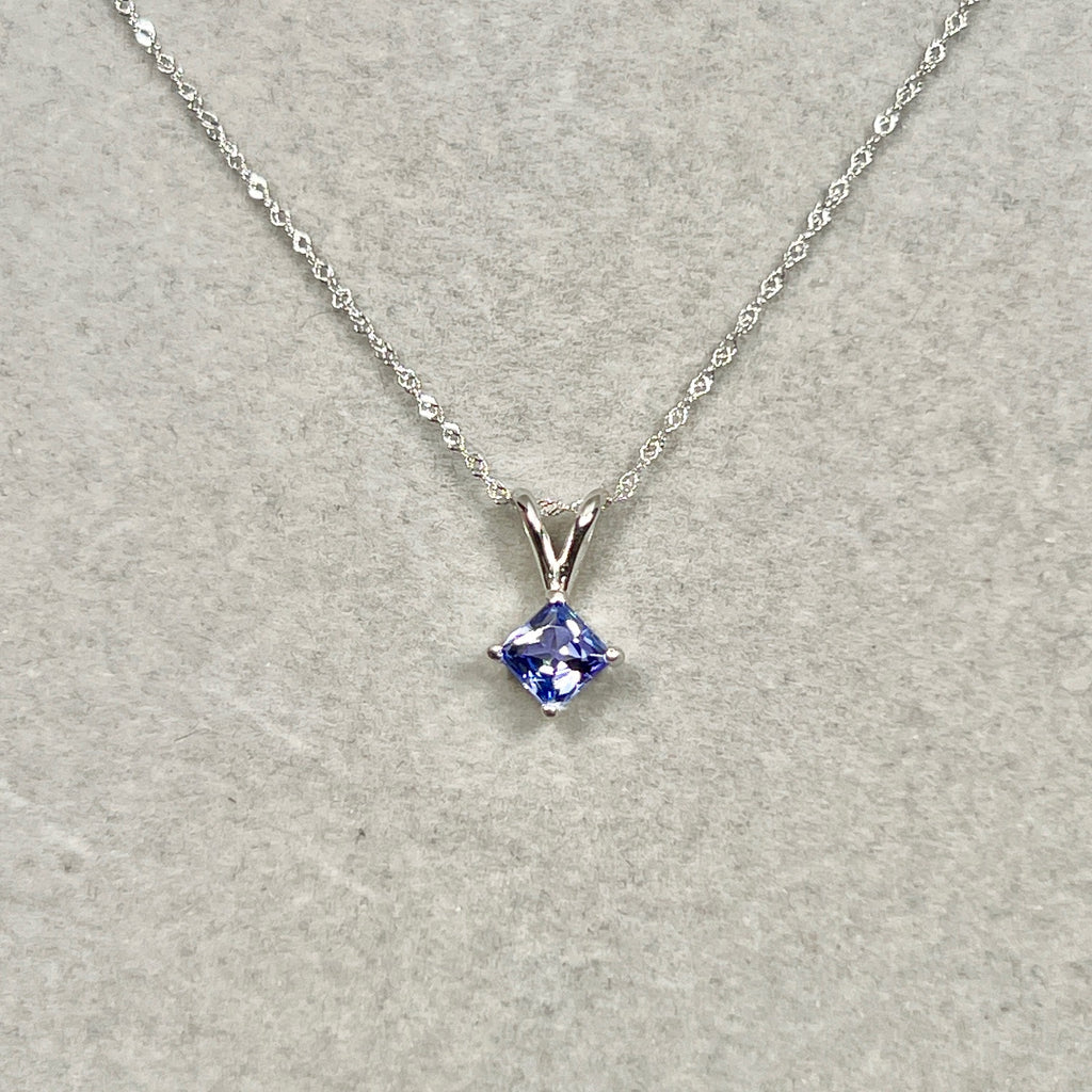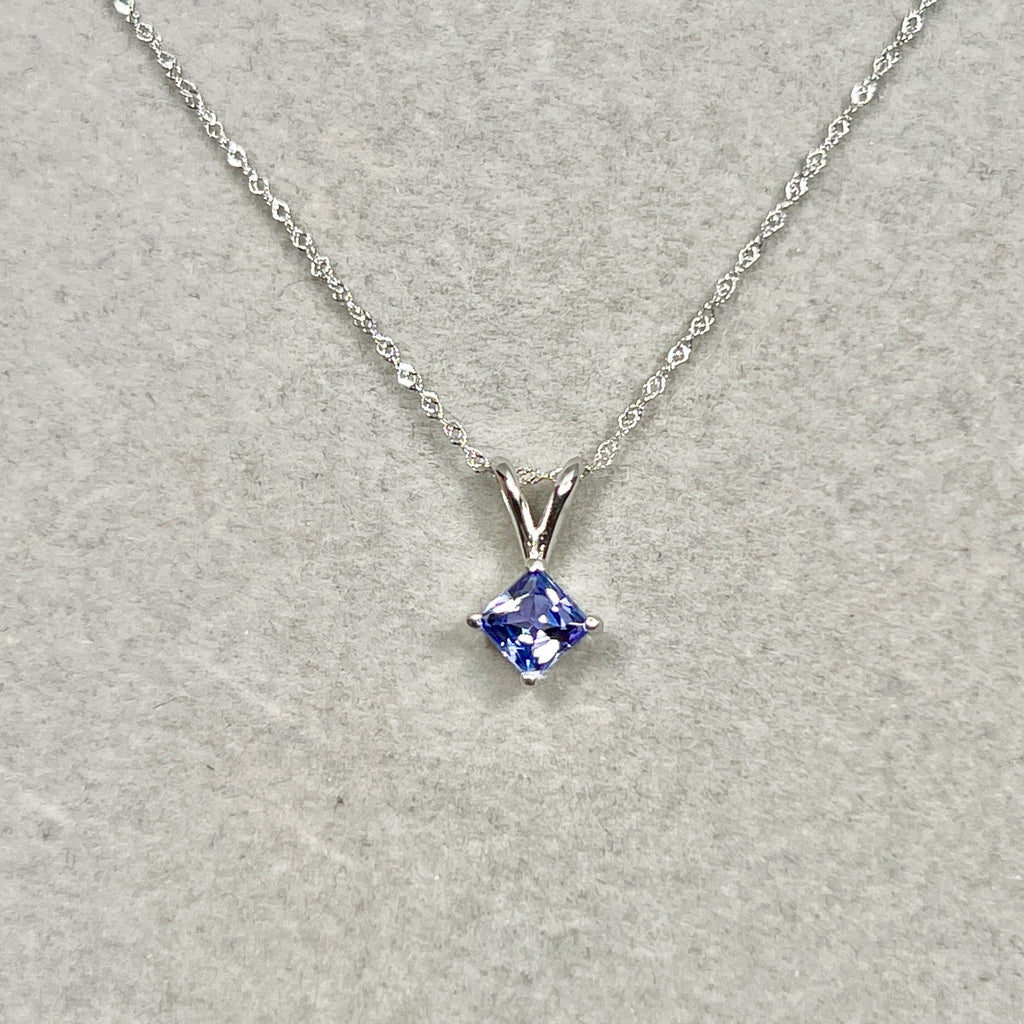 5mm Princess Cut Tanzanite Pendant 0.65 Ct | AA Tanzanite Solitaire Necklace in 14K White Gold | December Birthstone