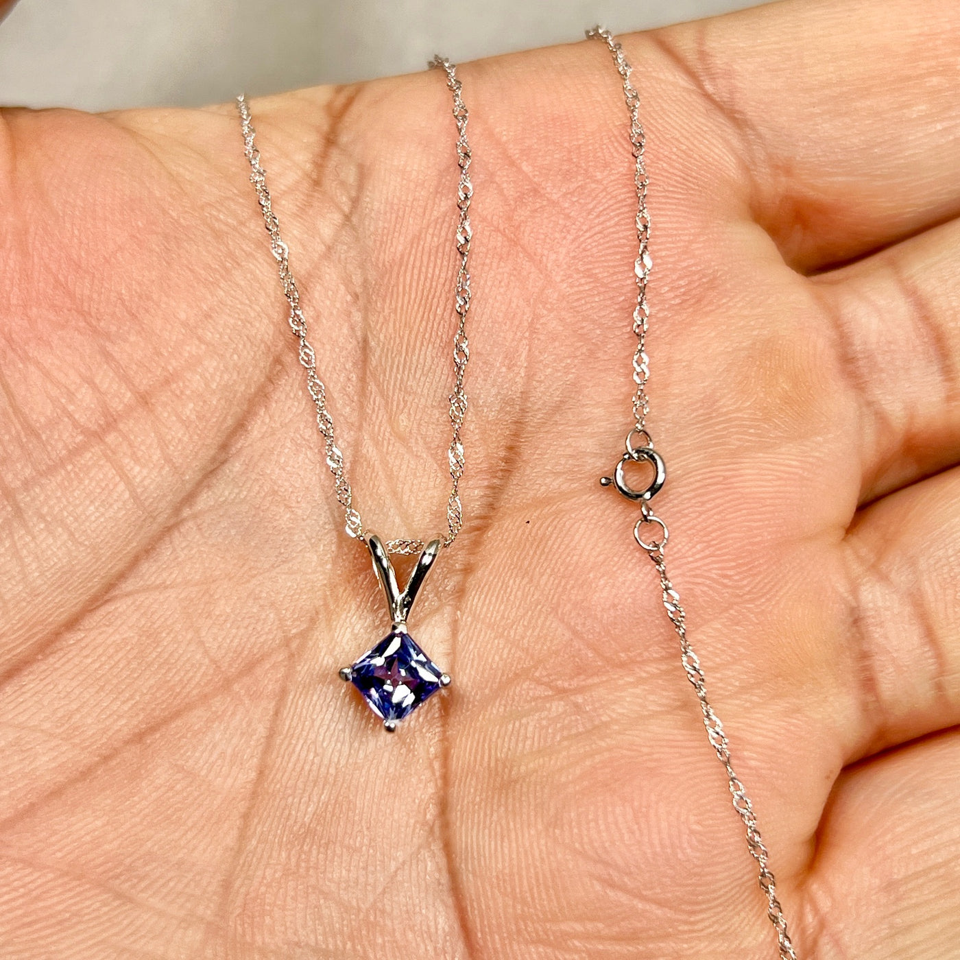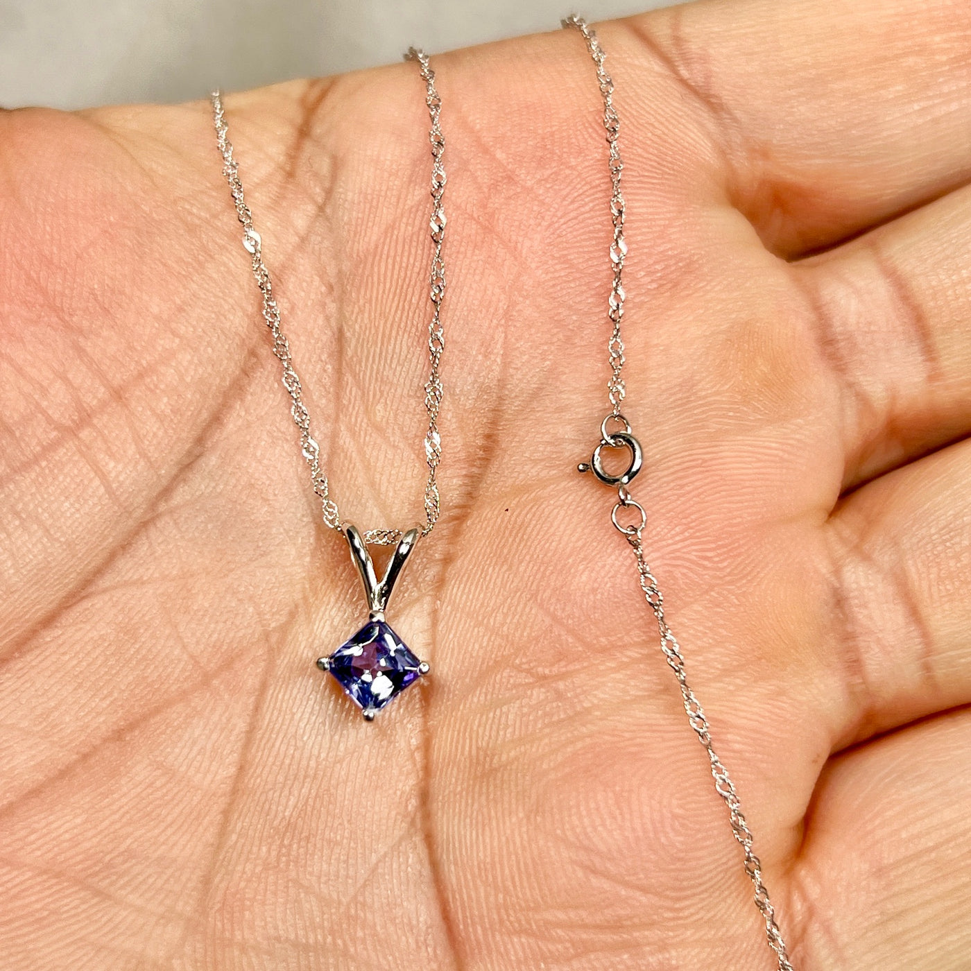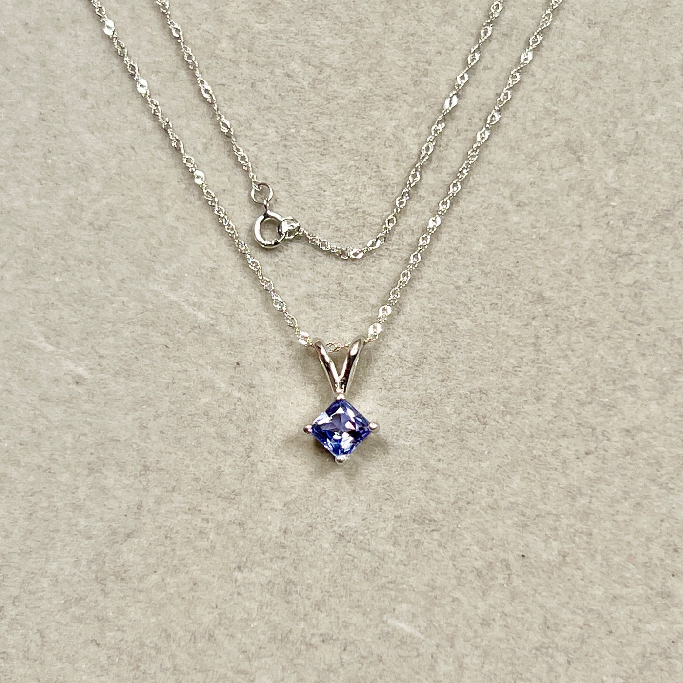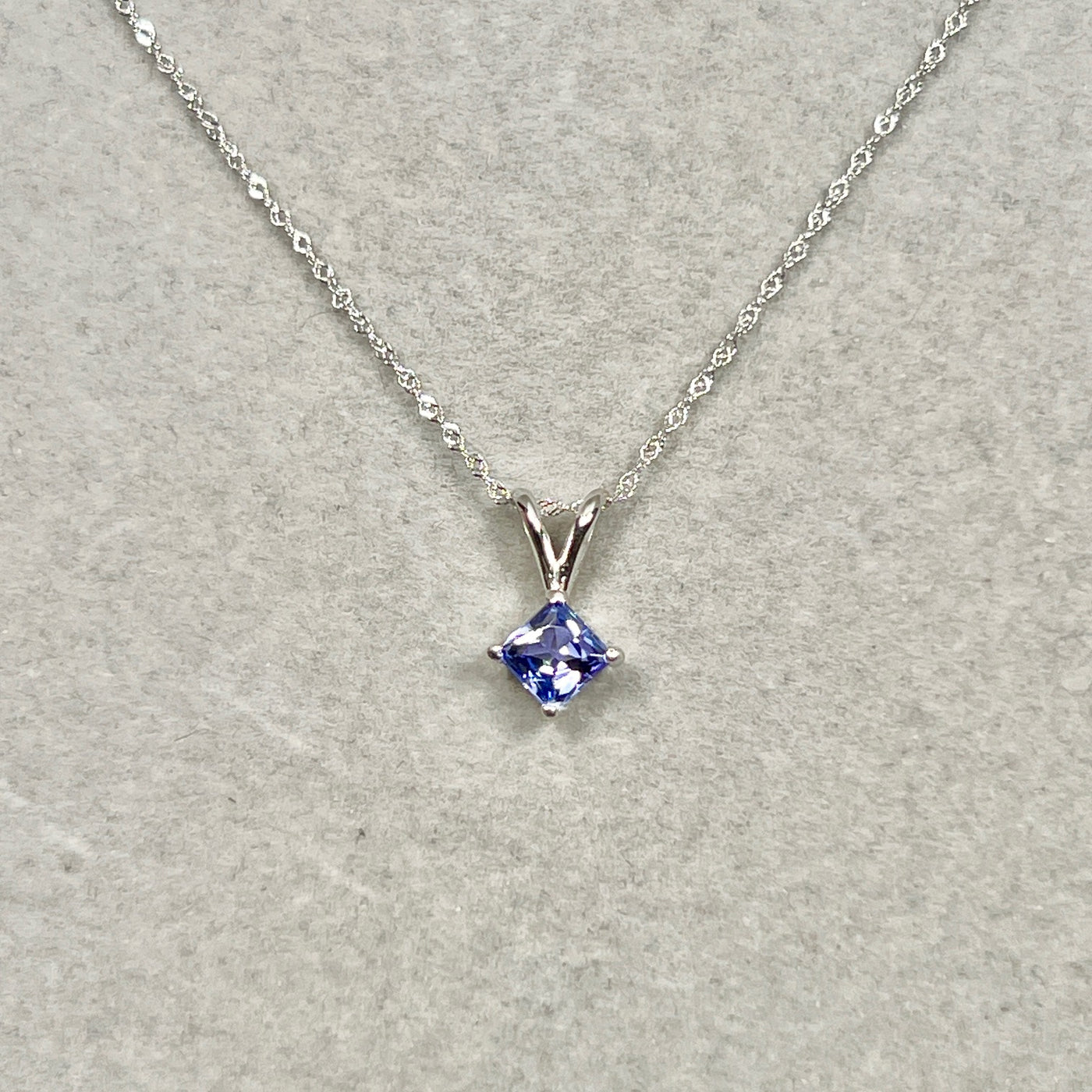 5mm Princess Cut Tanzanite Pendant 0.65 Ct | AA Tanzanite Solitaire Necklace in 14K White Gold | December Birthstone