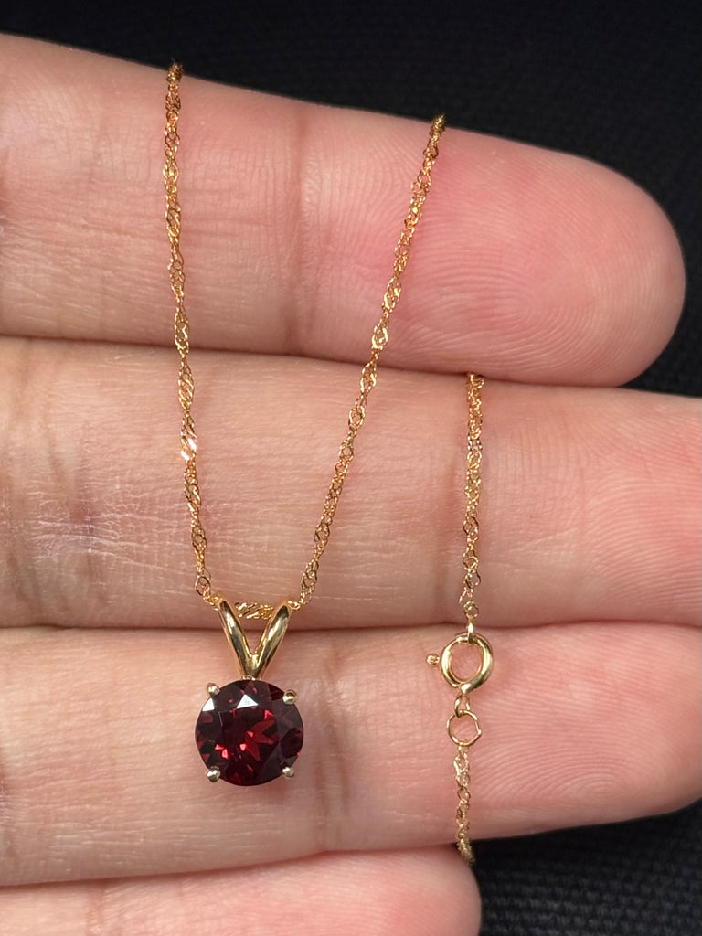 7mm Garnet Pendant 14K Yellow Gold AAA Natural Red January Birthstone Necklace 1.20-1.75 Ct Solitaire Gift for Her