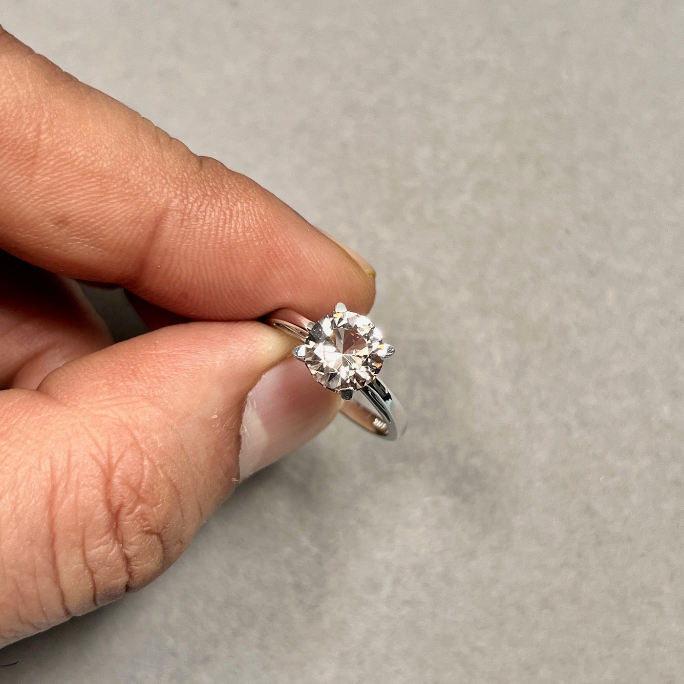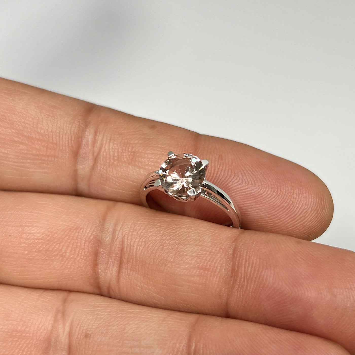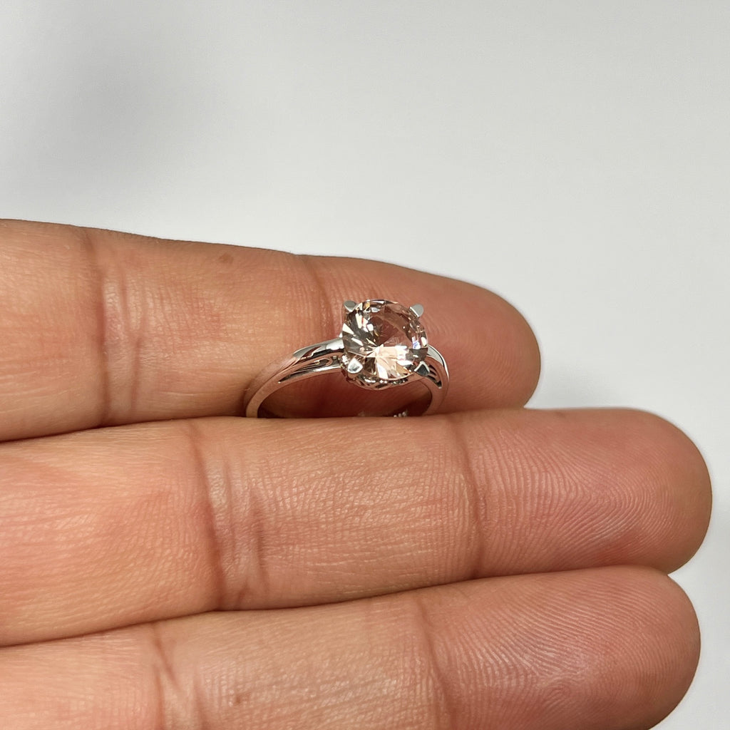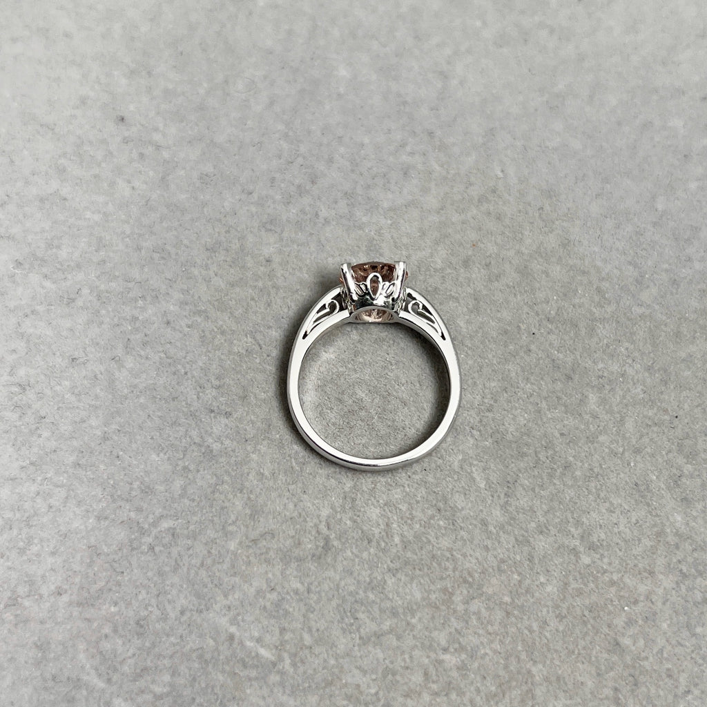 8mm Natural Morganite Scroll Solitaire Ring in 14K White Gold | Round Pink Morganite Engagement Ring | Women’s Fine Jewelry