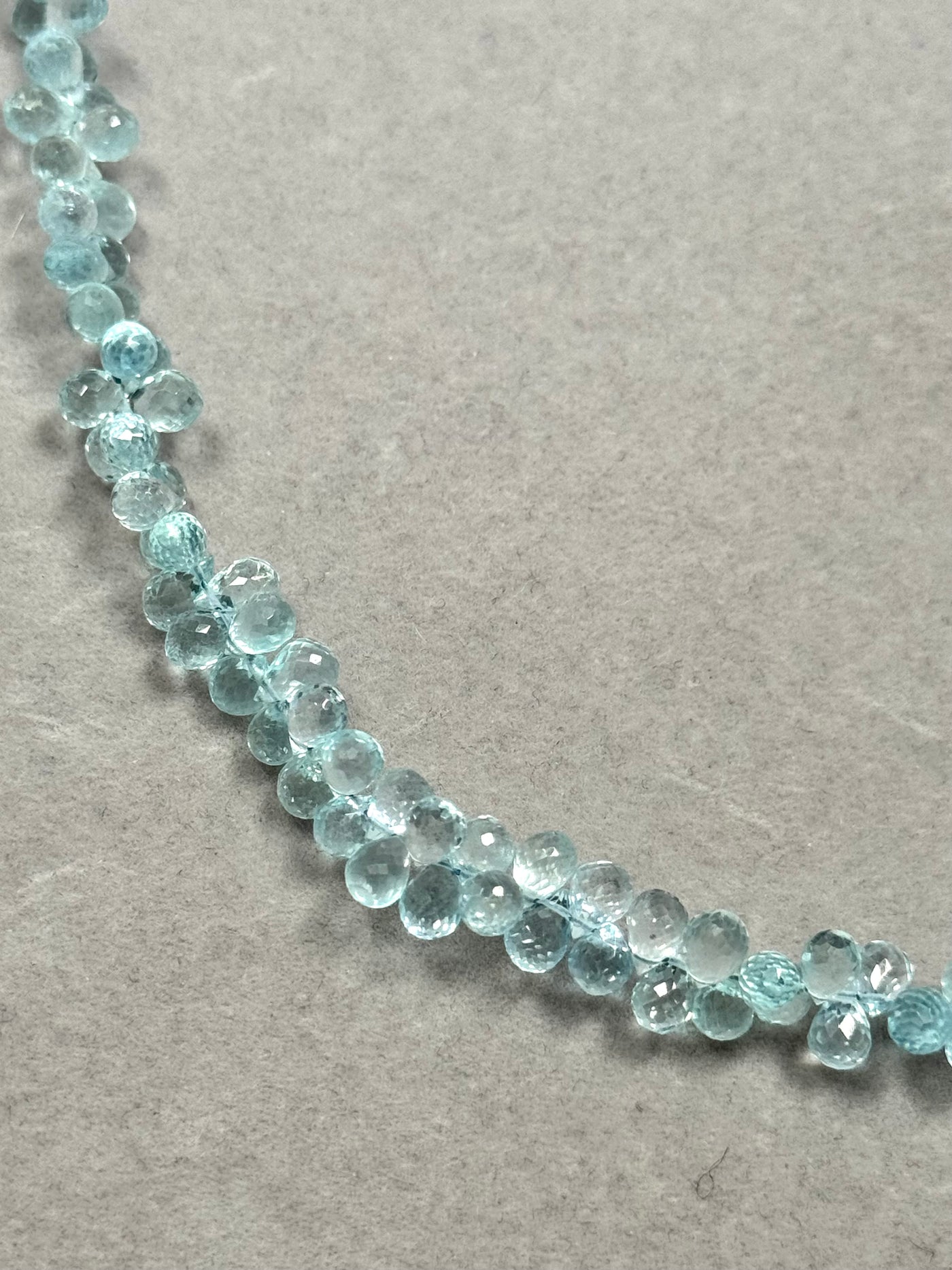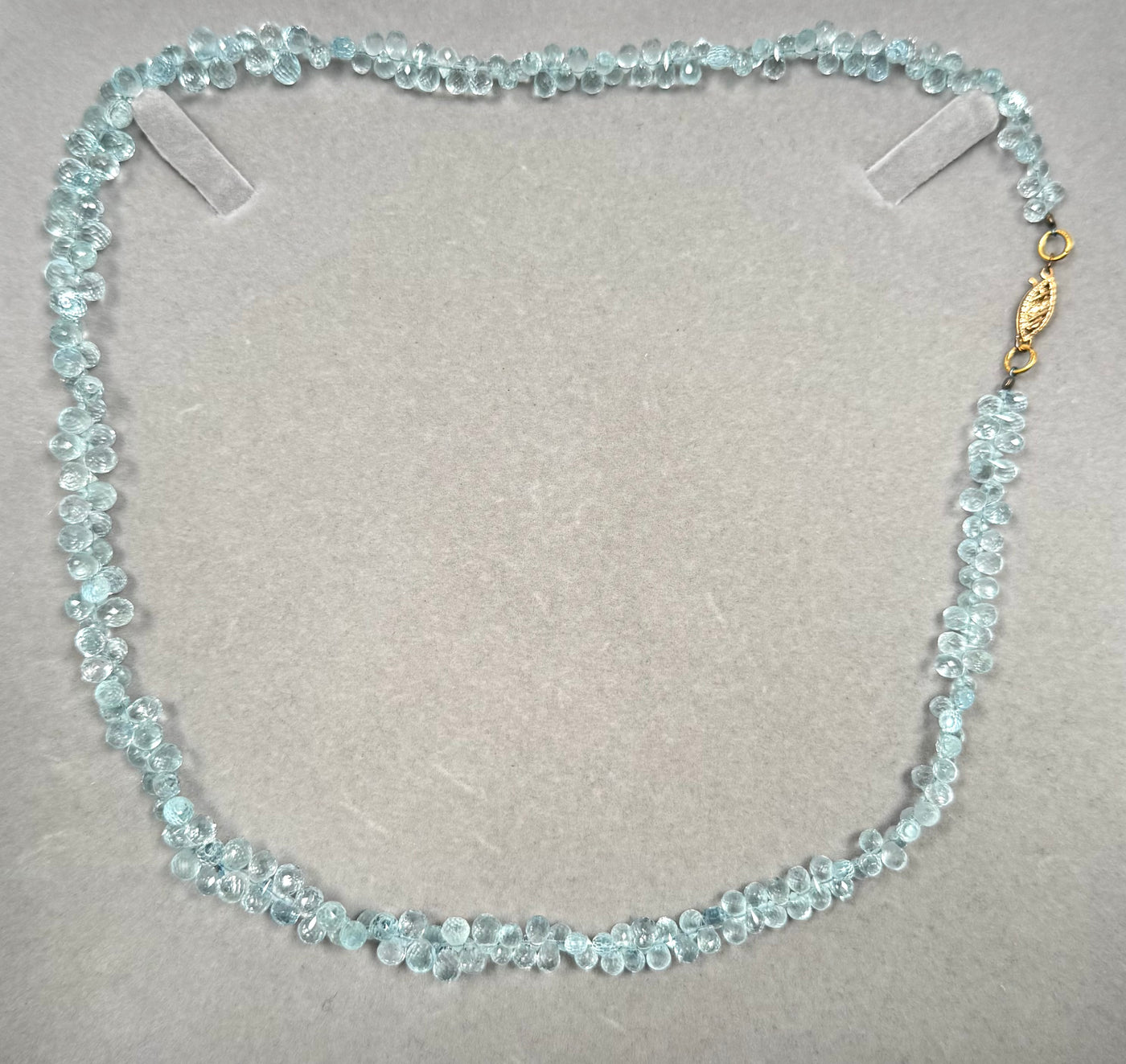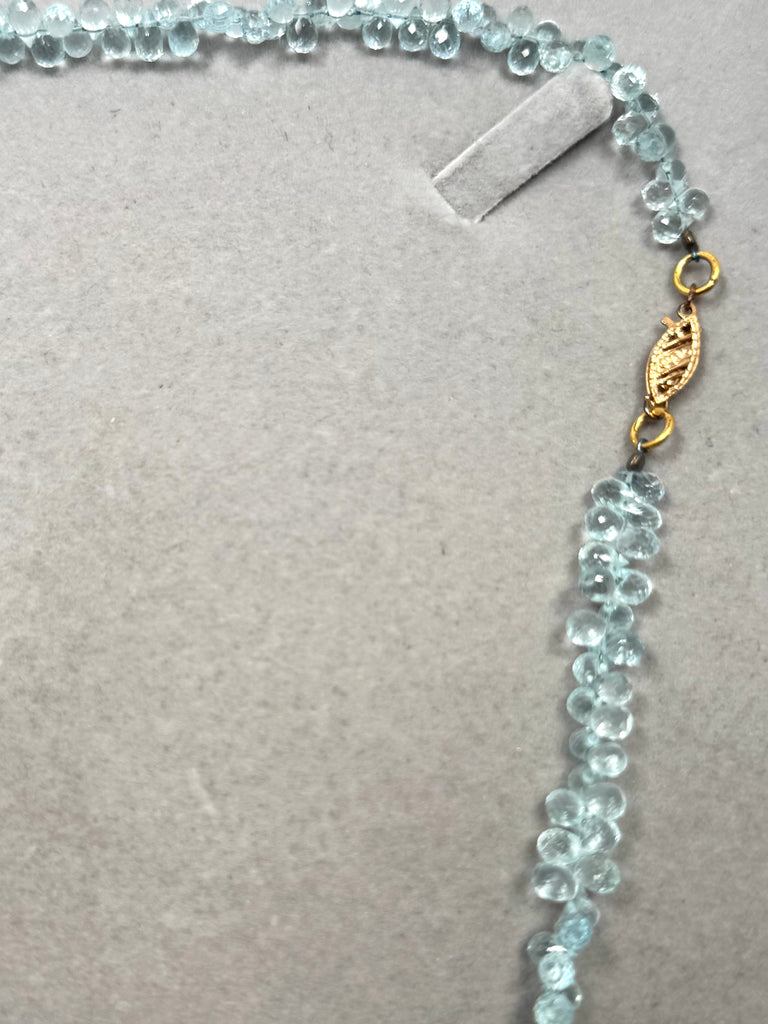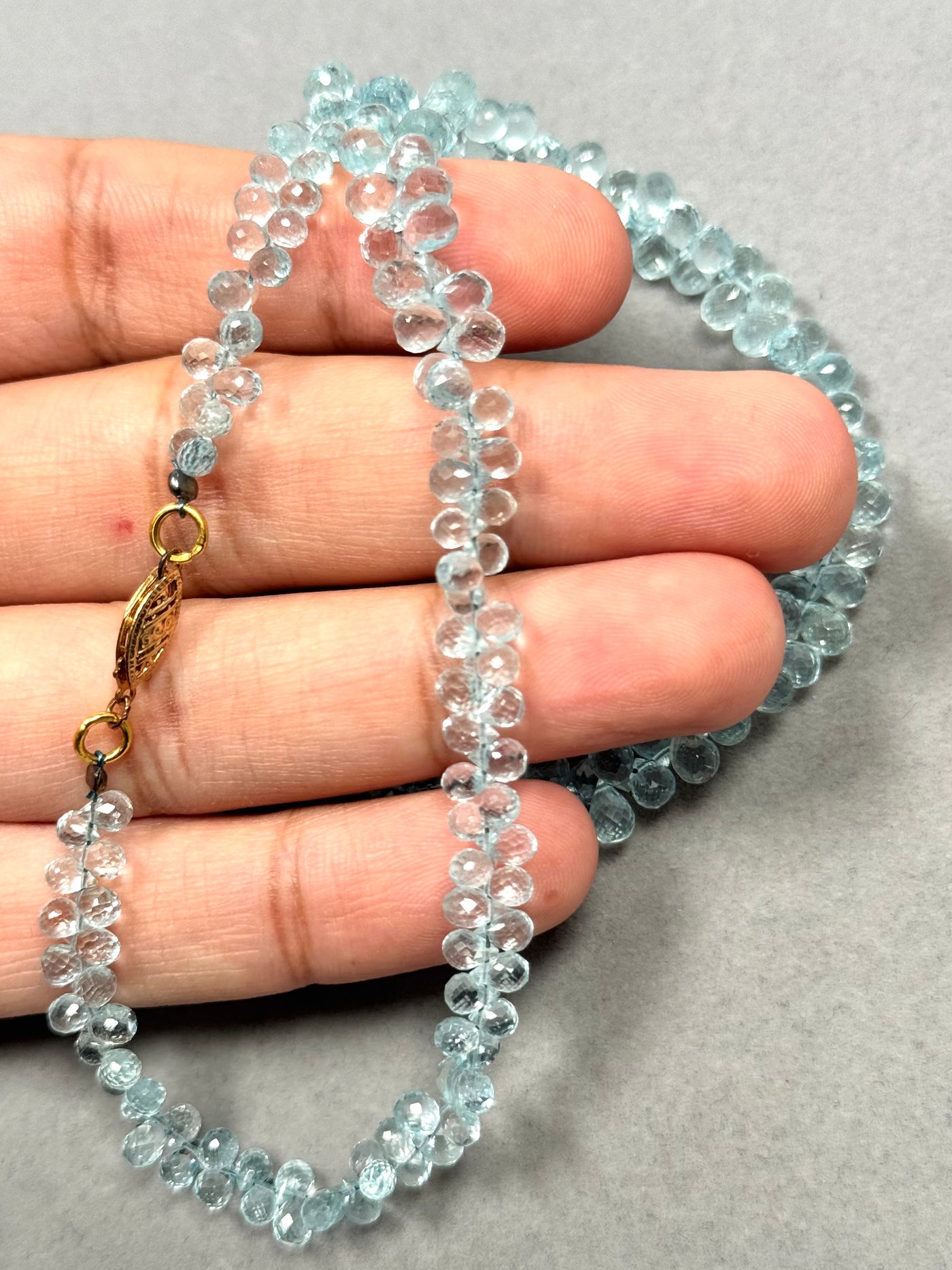 90.00–100.00 Cts Faceted Briolettes AA Aquamarine Necklace in 14K Yellow Gold | Natural Aquamarine Beaded Necklace, March Birthstone Jewelry