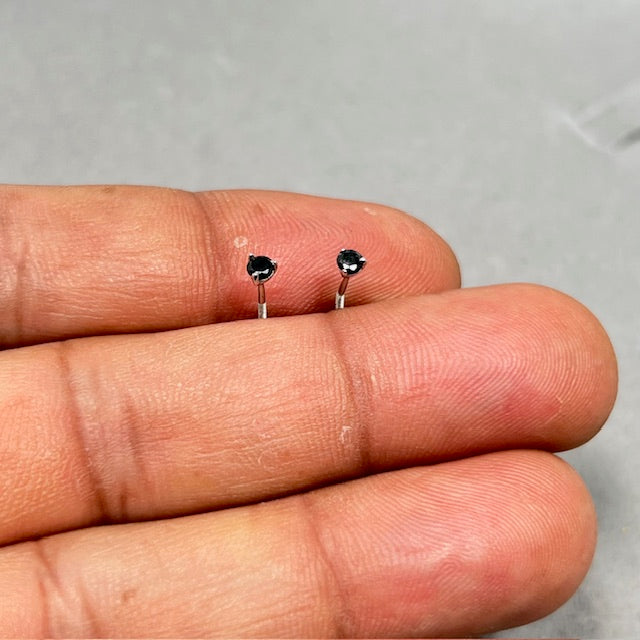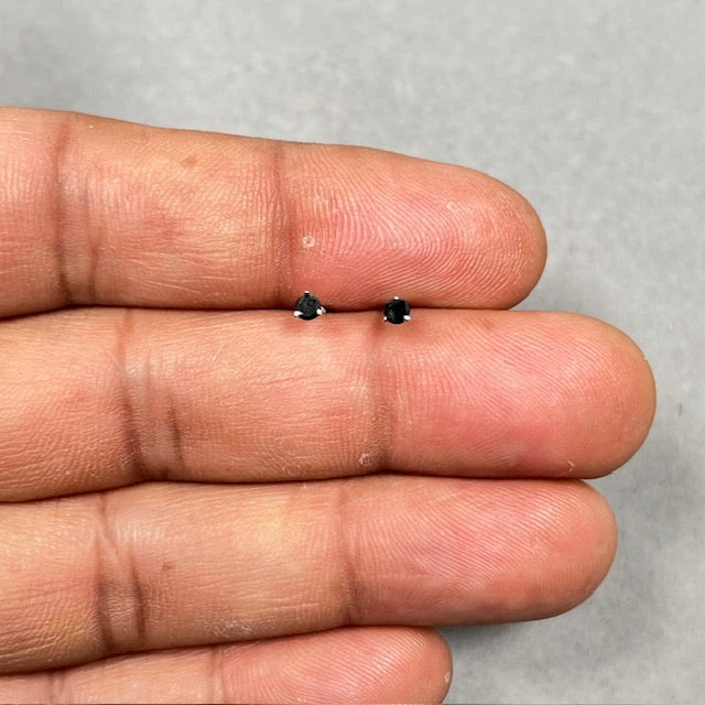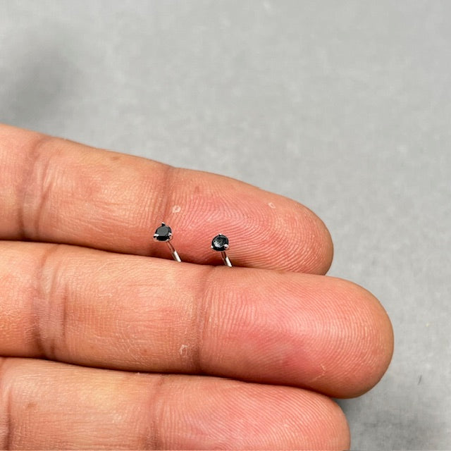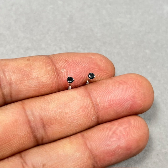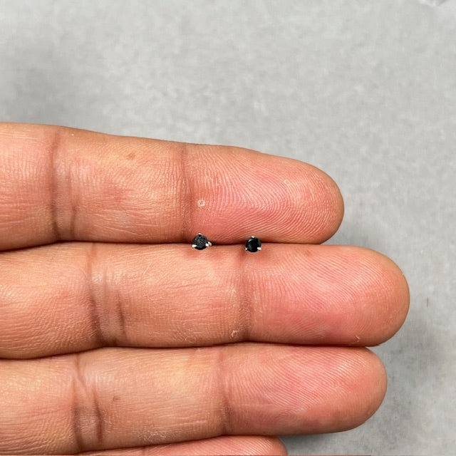 AA Black Diamond Studs 1/9 Cts in 18K White Gold women wear with Classic Prong Setting and Refined Minimal Profile