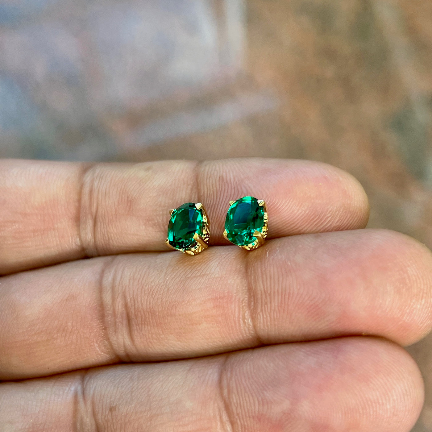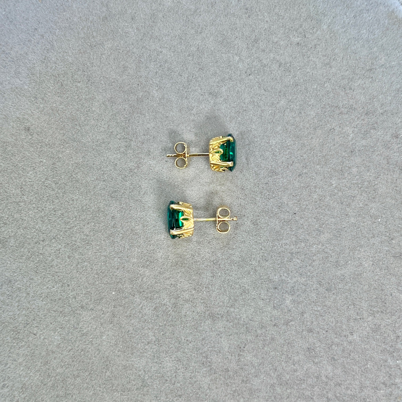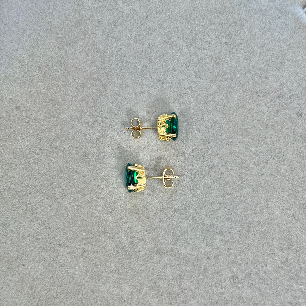 AAA 8x6mm Lab Created Oval Emerald Scroll Stud Earrings in 14K Yellow Gold | 1.90–2.56 Ct