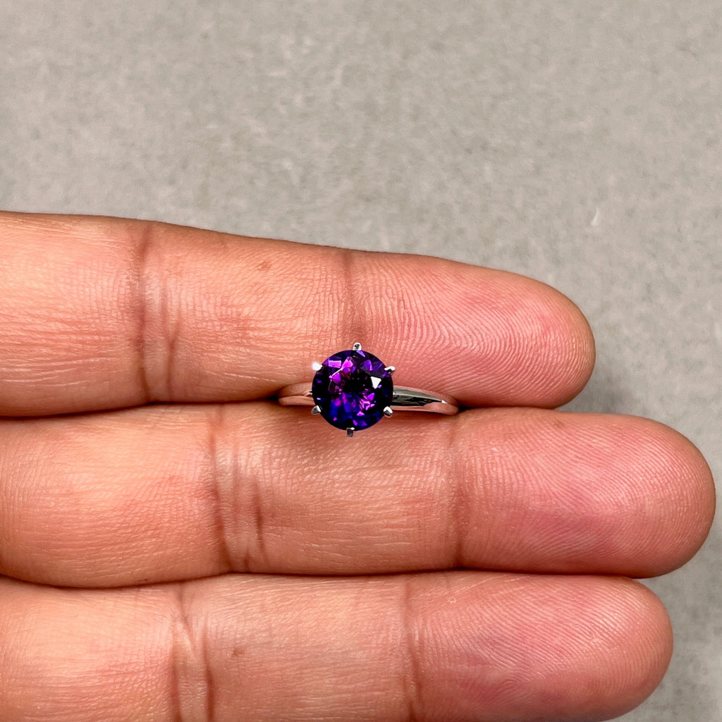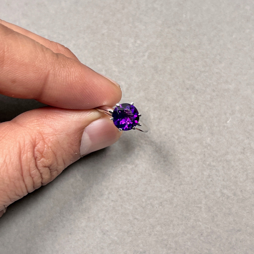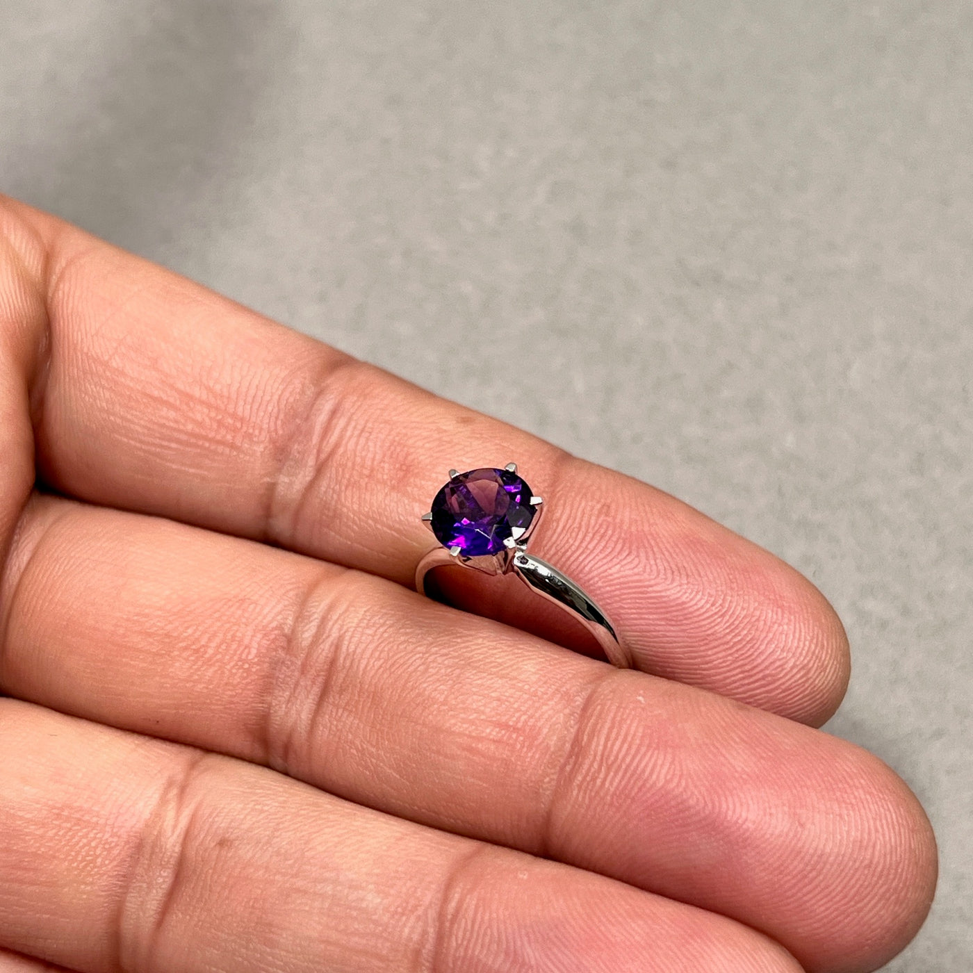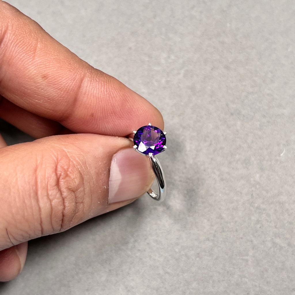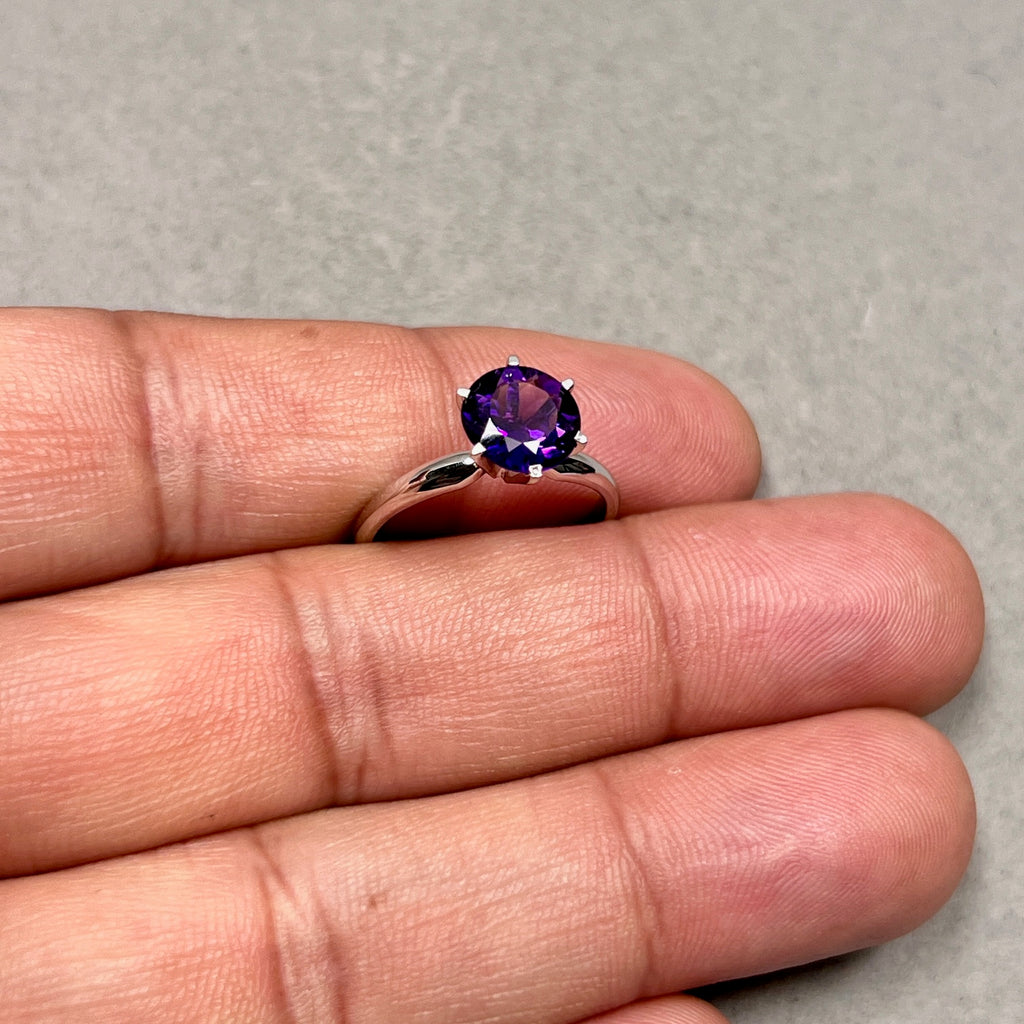 AAA Amethyst Round Solitaire Ring 8mm in 14K White Gold | 1.27–1.97 CT | Six-Prong Setting | Elegant Womens Fine Jewelry Gift