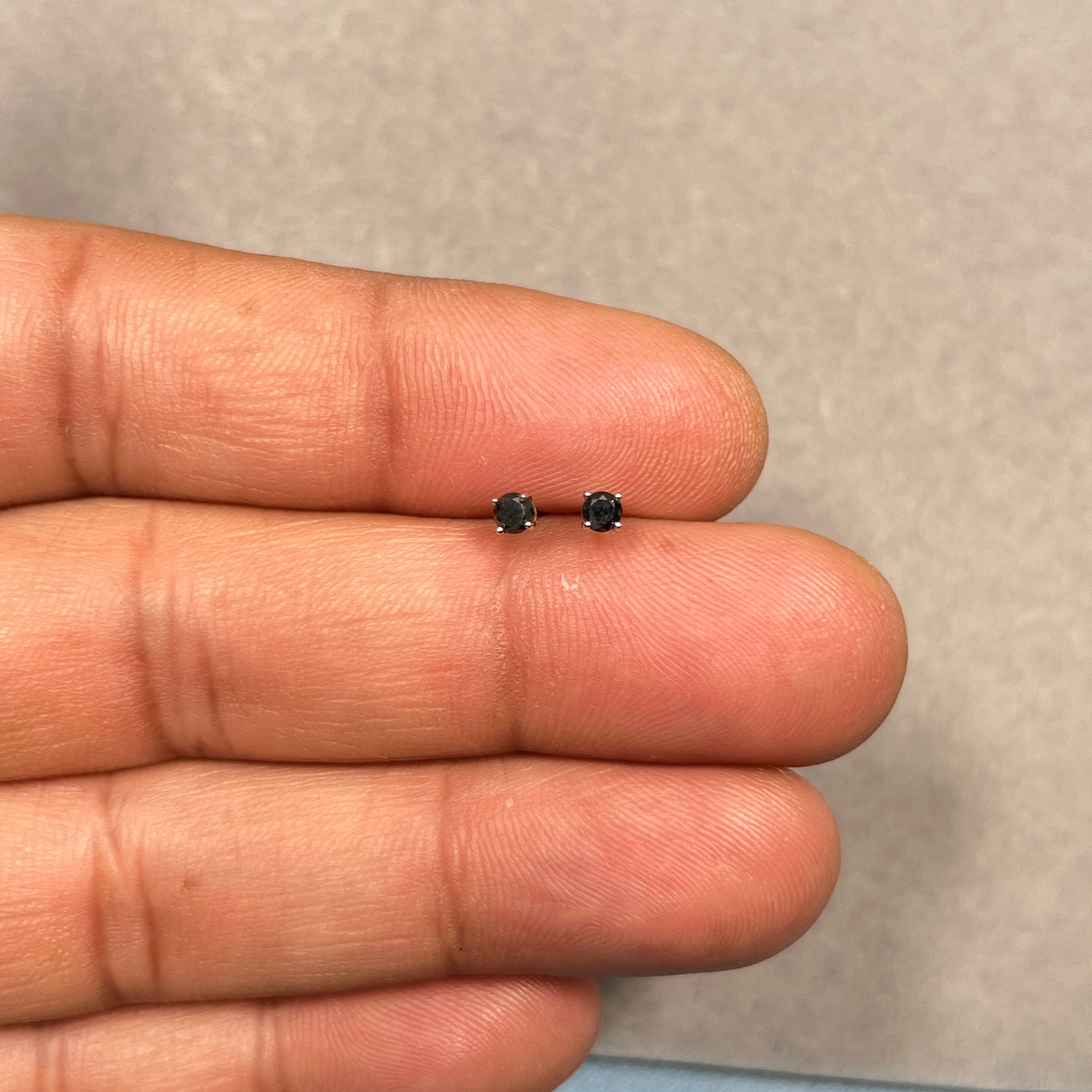 AAA Black Diamond Stud Earrings 14K White Gold | 2.5–3.0mm Round | 1/4 ct Total | Natural Black Diamonds for Jewelry Gift