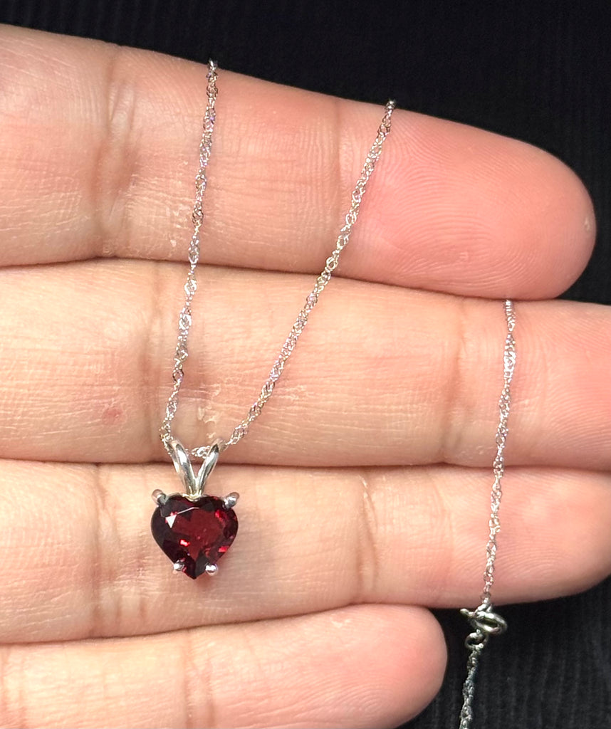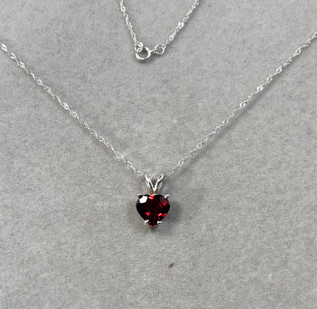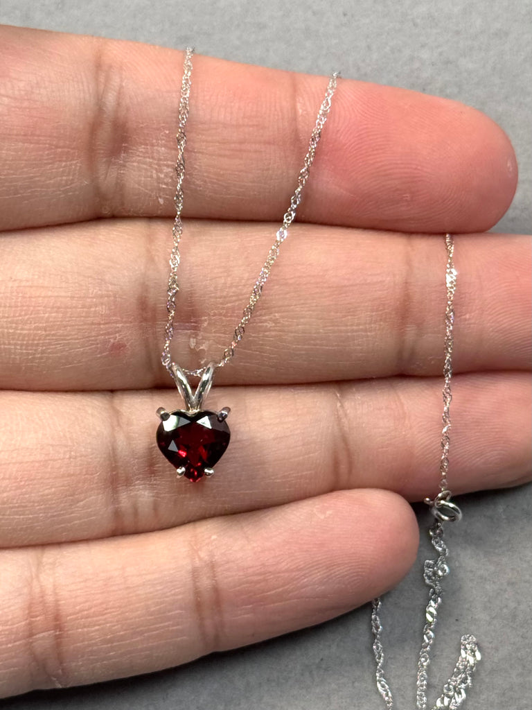 AAA Heart Shaped Garnet 8mm Solitaire Pendant Necklace 1.75–2.15 CT | 14K White Gold | January Birthstone Gift