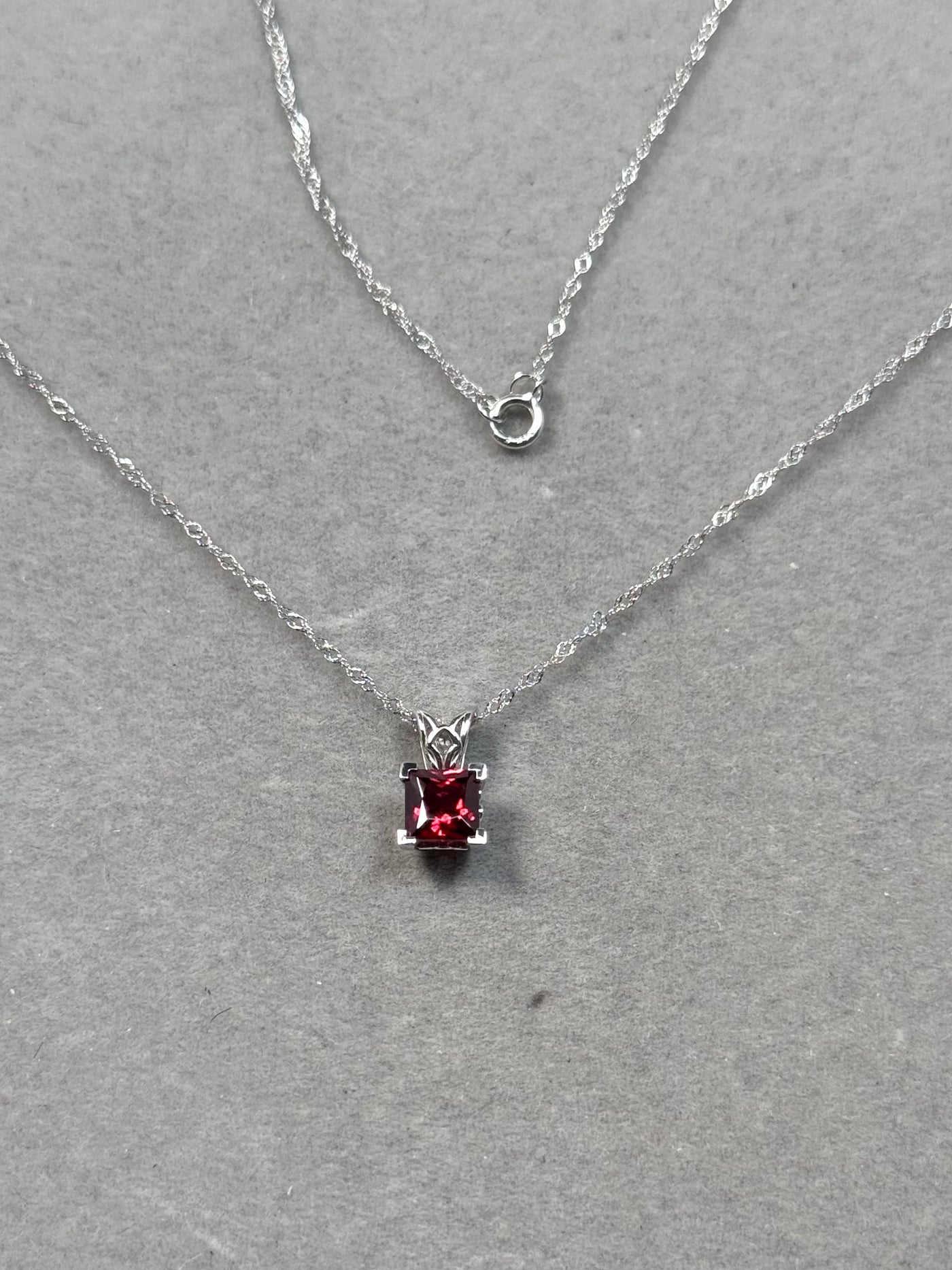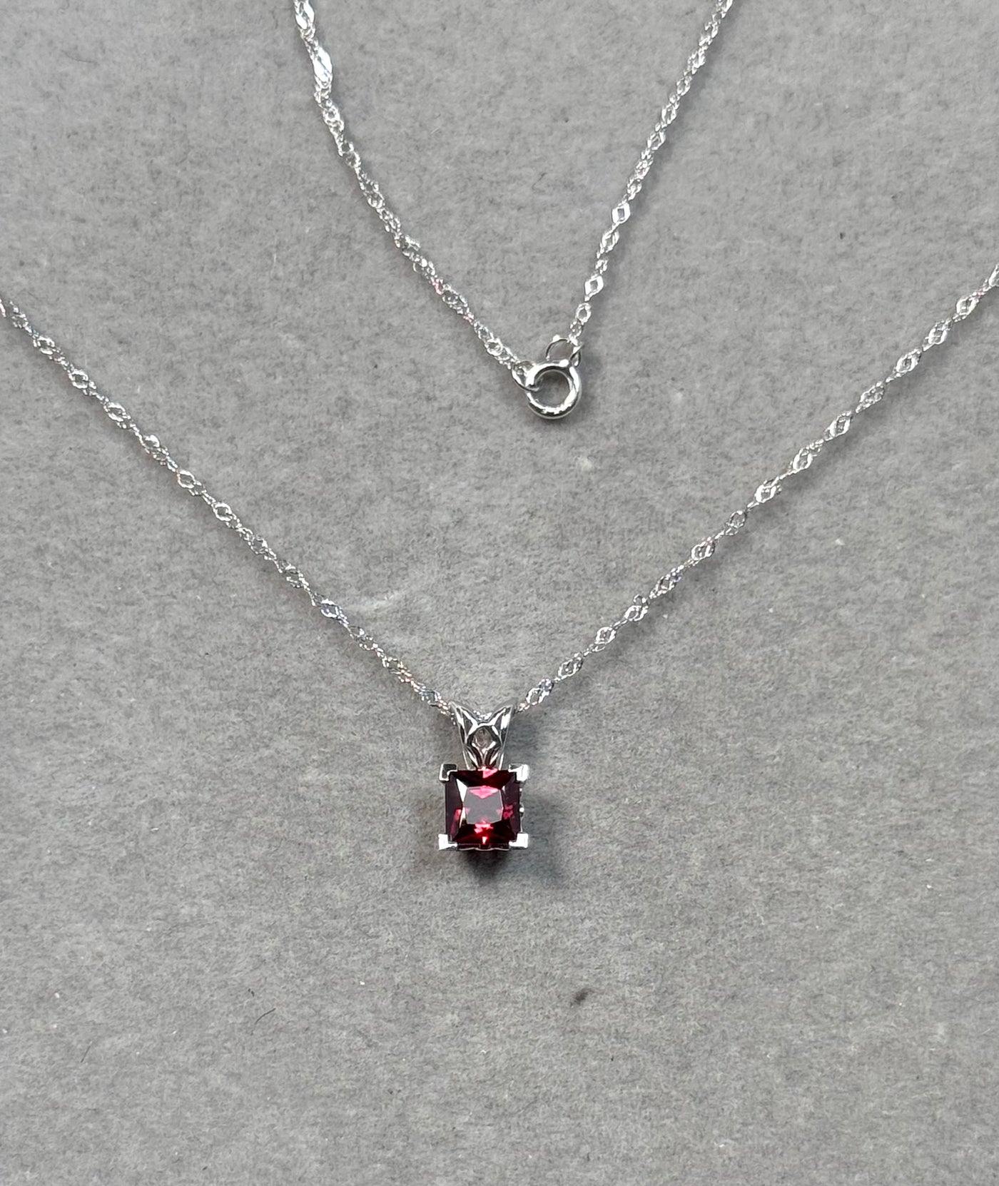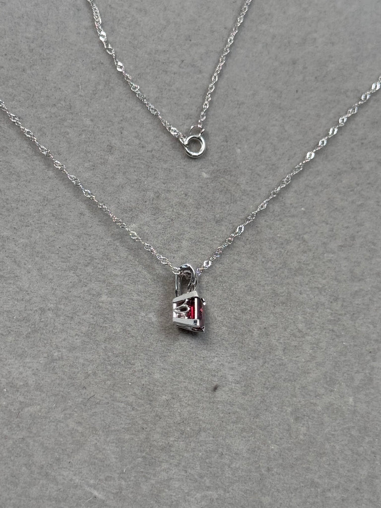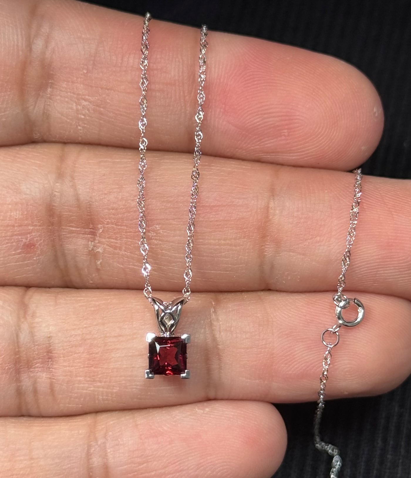 AAA Princess Cut Garnet Scroll 5mm Pendant Necklace 0.60–0.80 CT | 14K White Gold