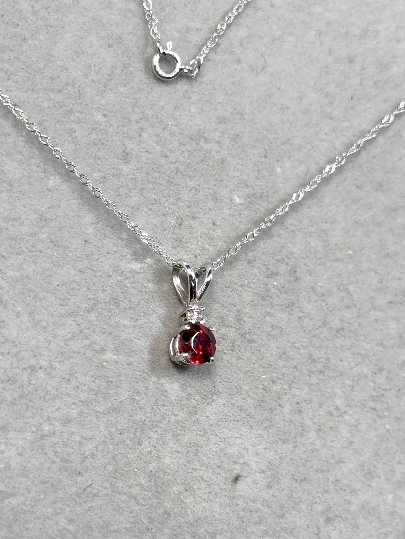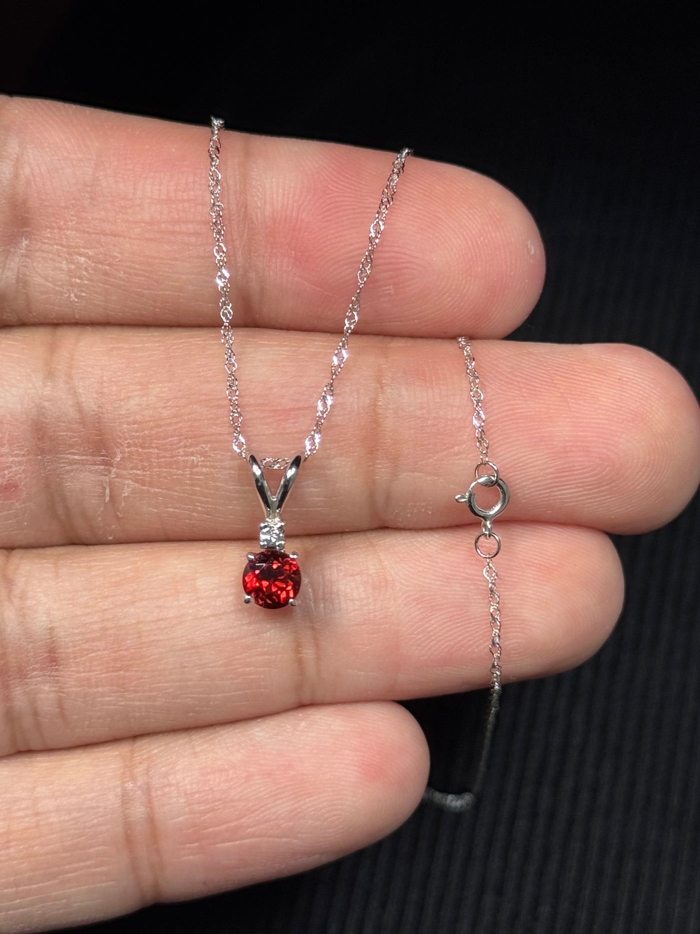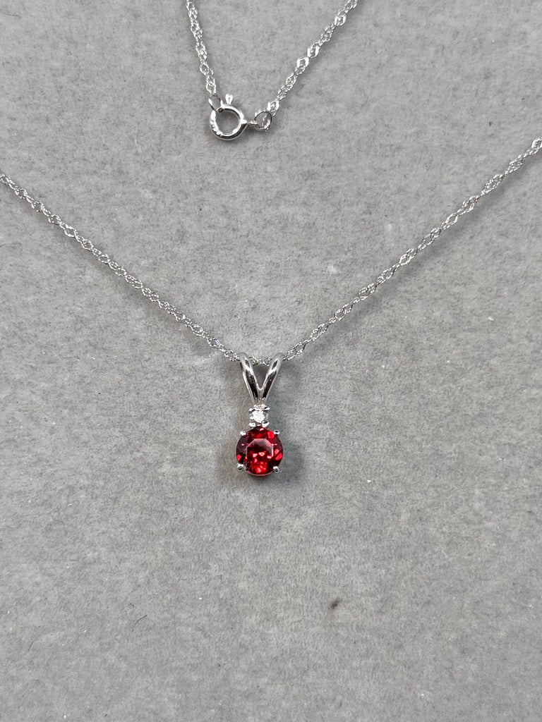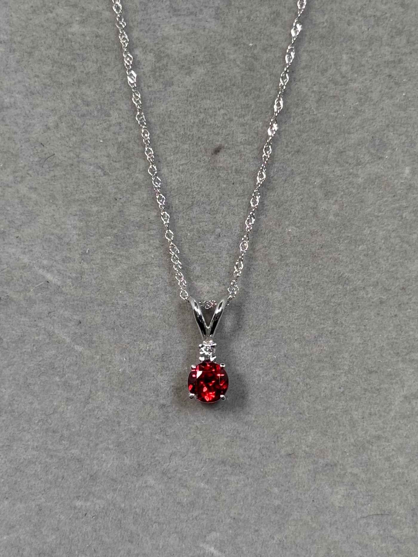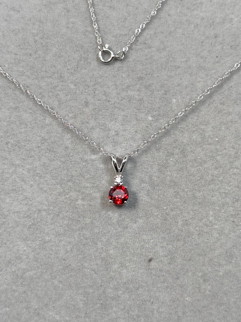 AAA Round Garnet & Diamond 5mm Pendant Necklace 0.57 CT Garnet | 14K White Gold | January Birthstone