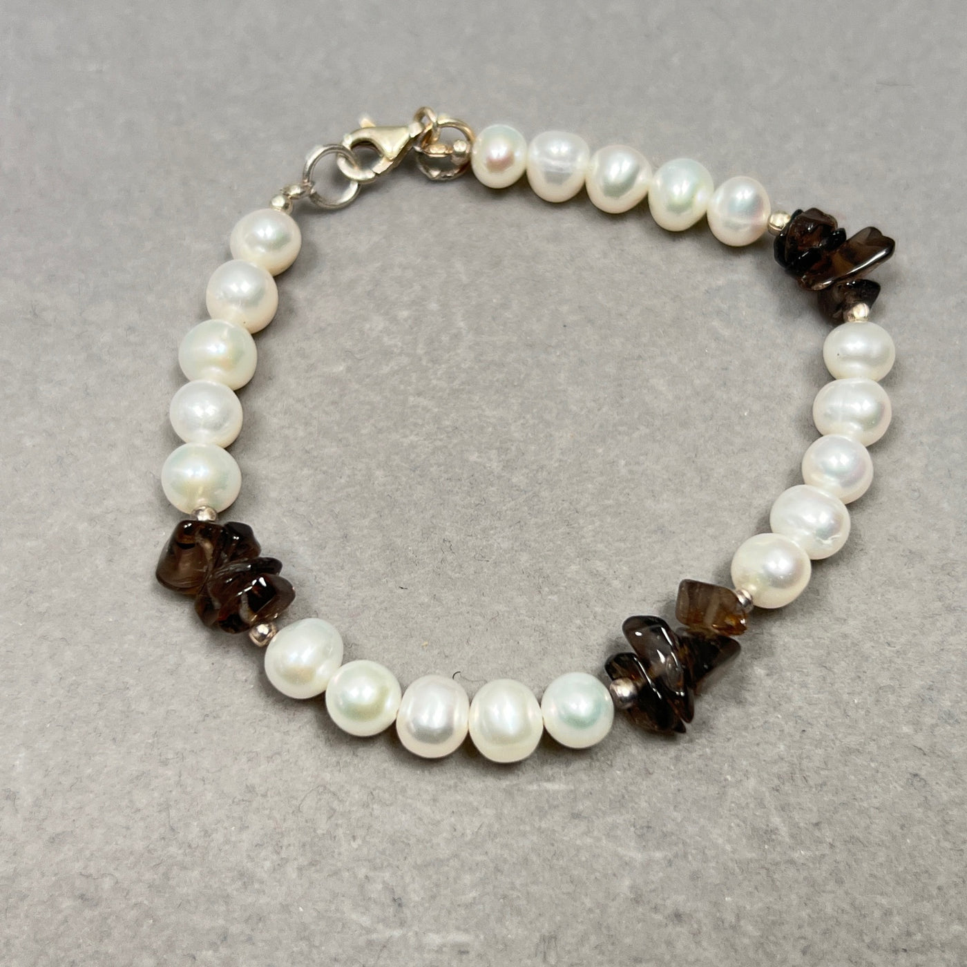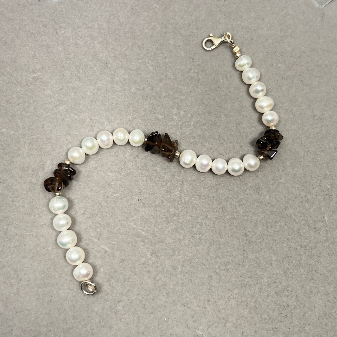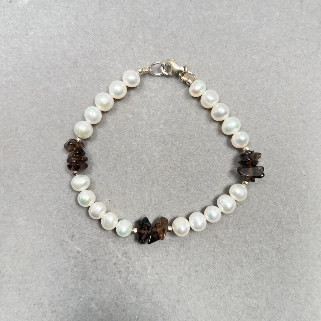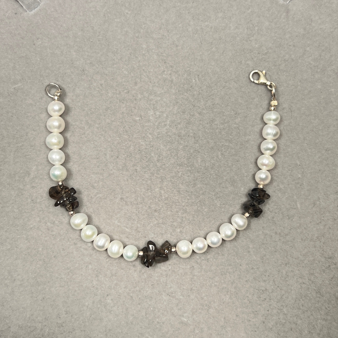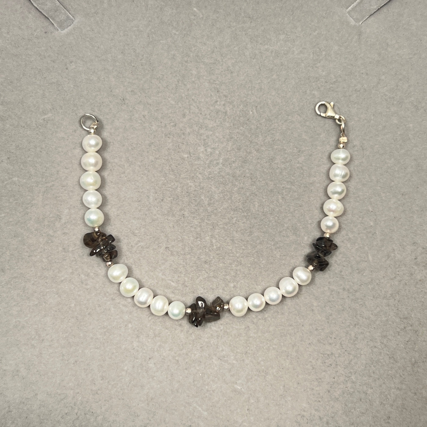 Akoya Pearl & Smokey Quartz Bracelet, 925 Sterling Silver