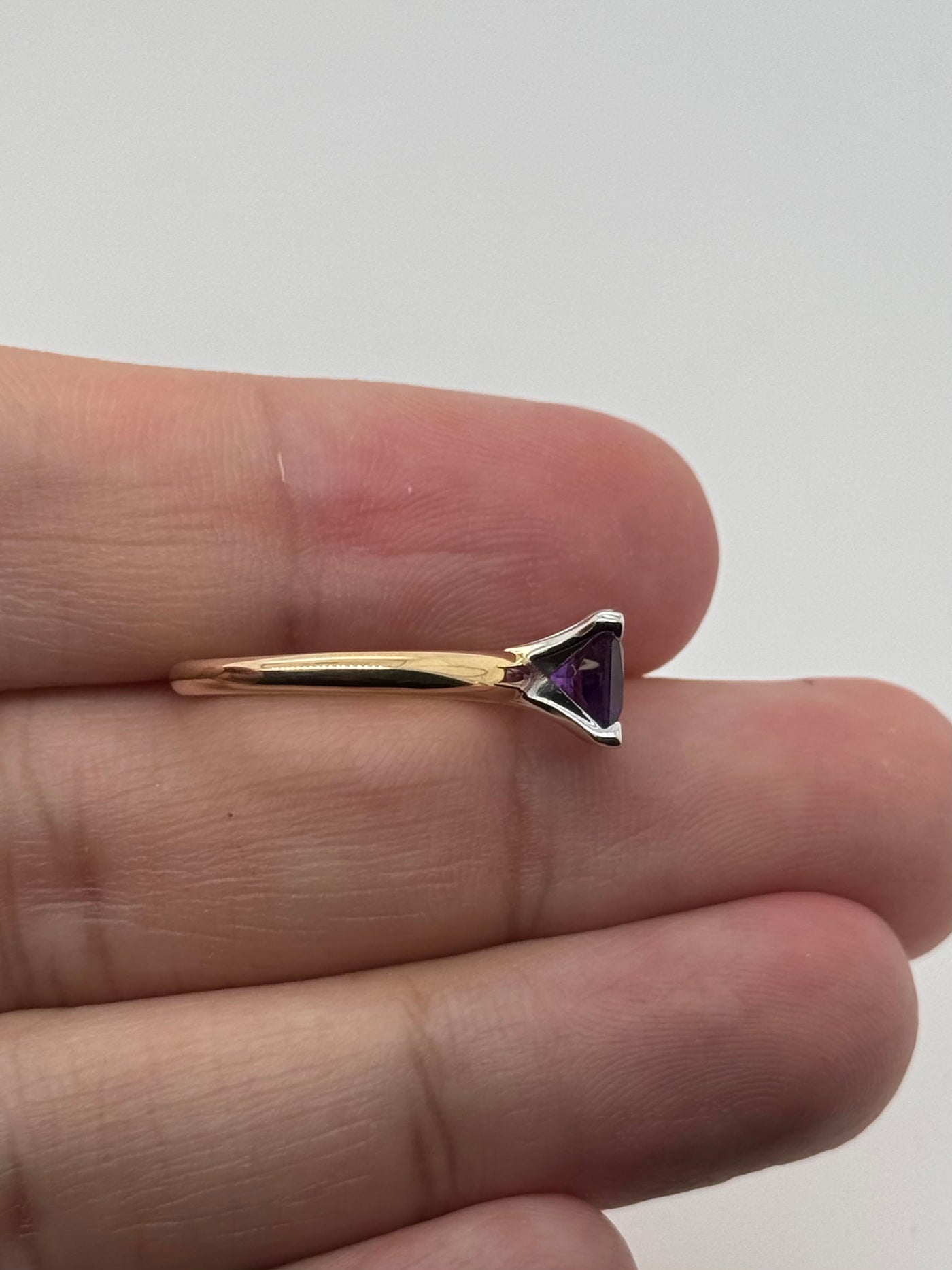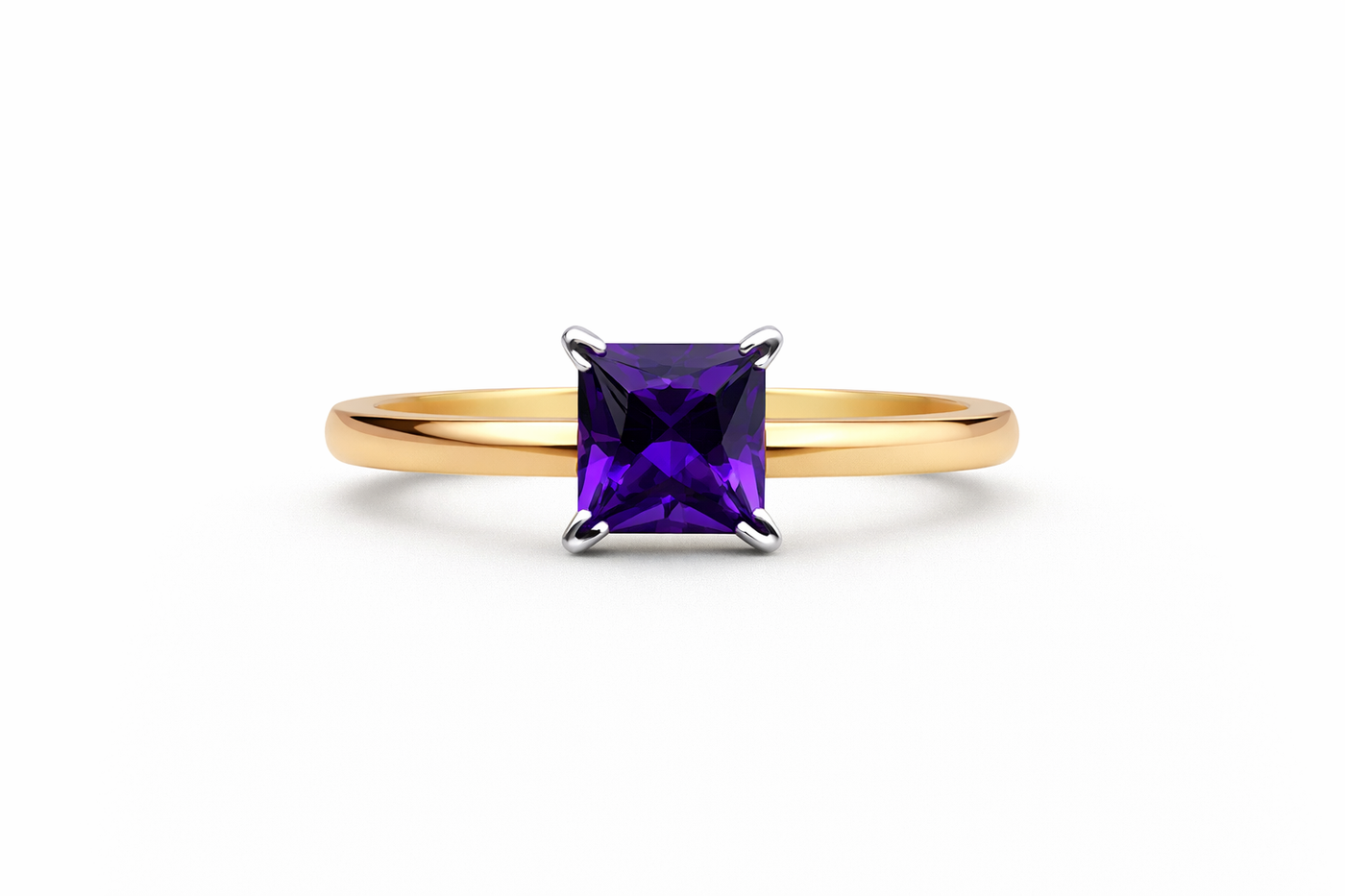 Amethyst Princess Cut Ring | 14K Two Tone Gold Solitaire — February Birthstone Gift for Her Modern Statement Jewelry