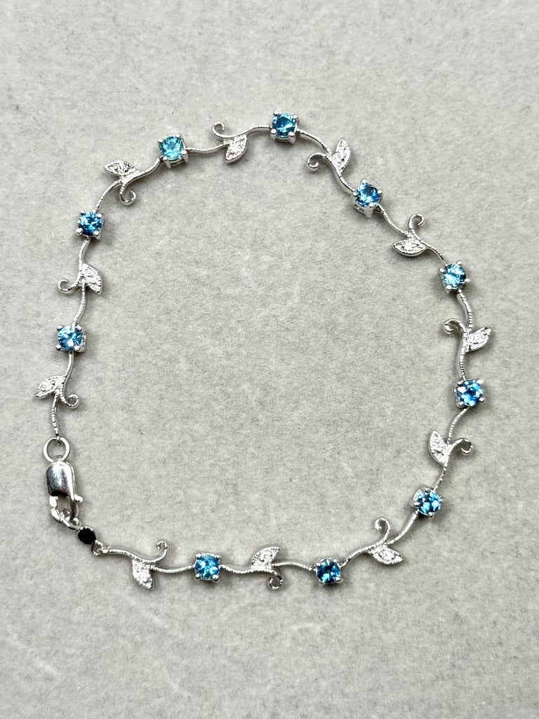 Aquamarine & Diamond Bud-Leaf Bracelet | 14K White Gold Jewelry