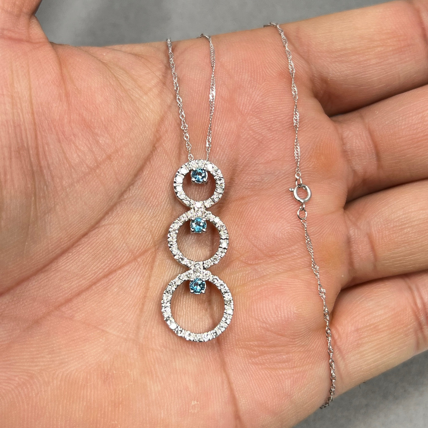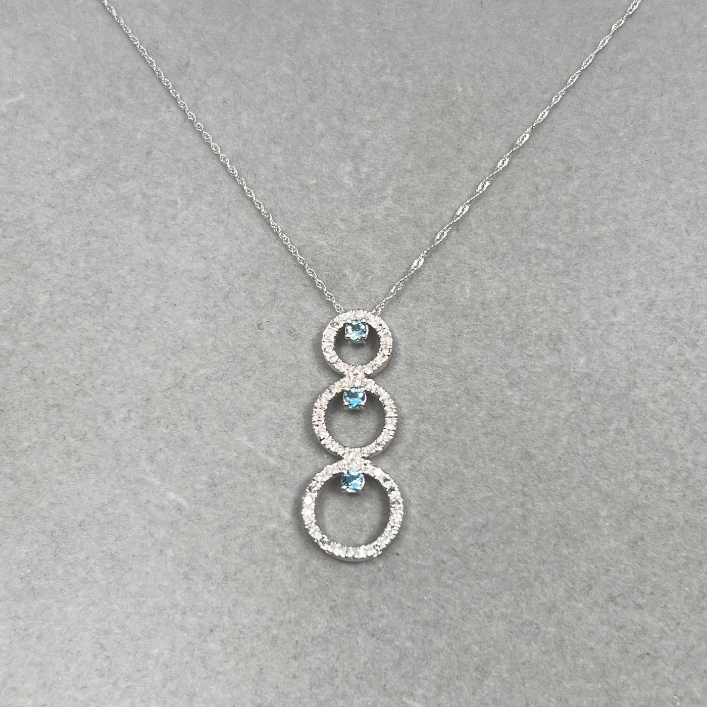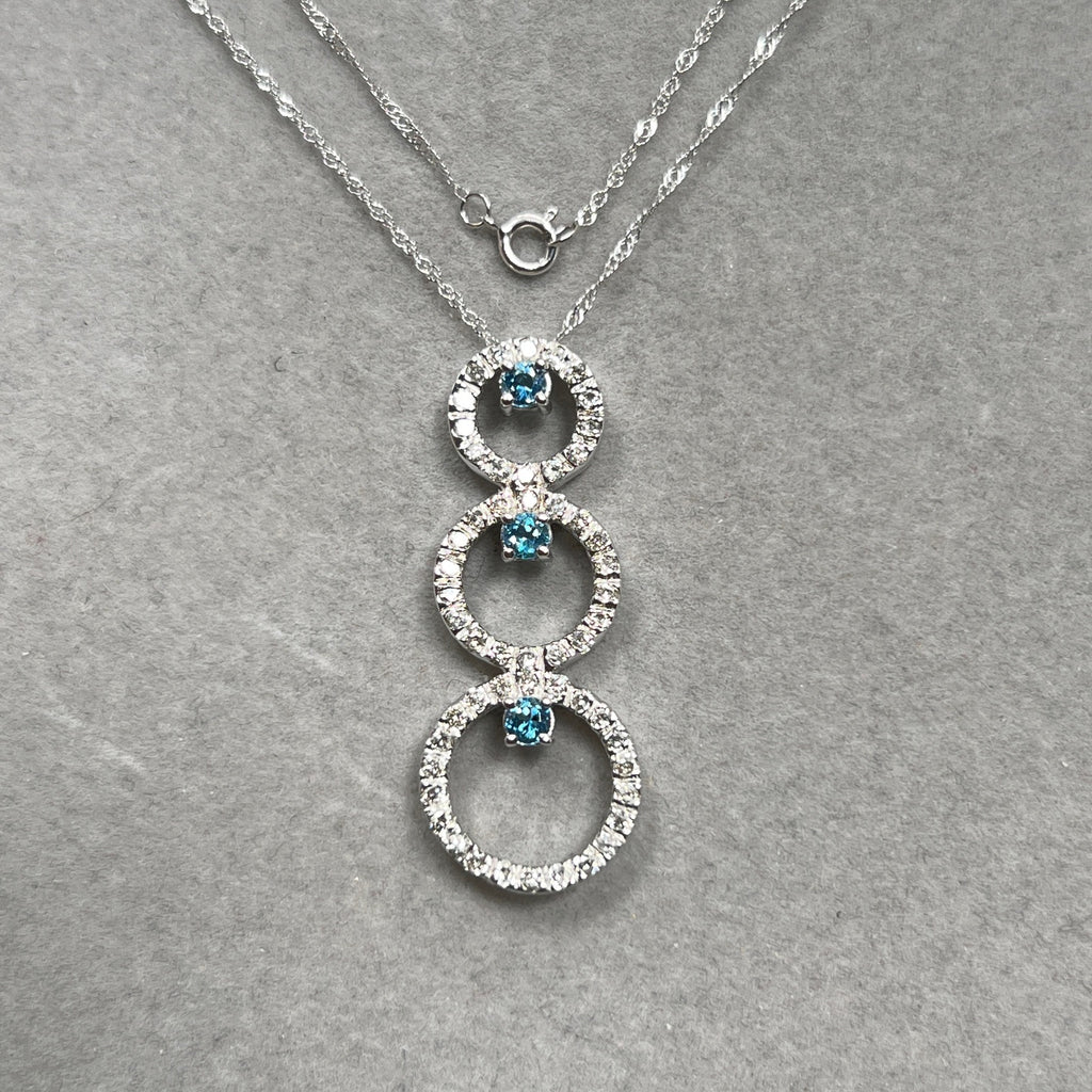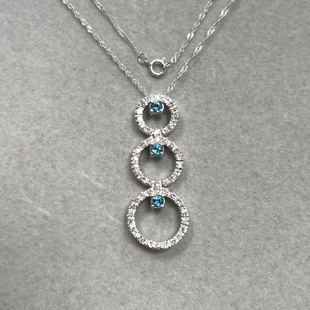 Aquamarine & Diamond Pendant 14K White Gold | 0.33 ct Aqua + 0.80 ct Diamonds | Trio Circle Necklace with 18" Chain