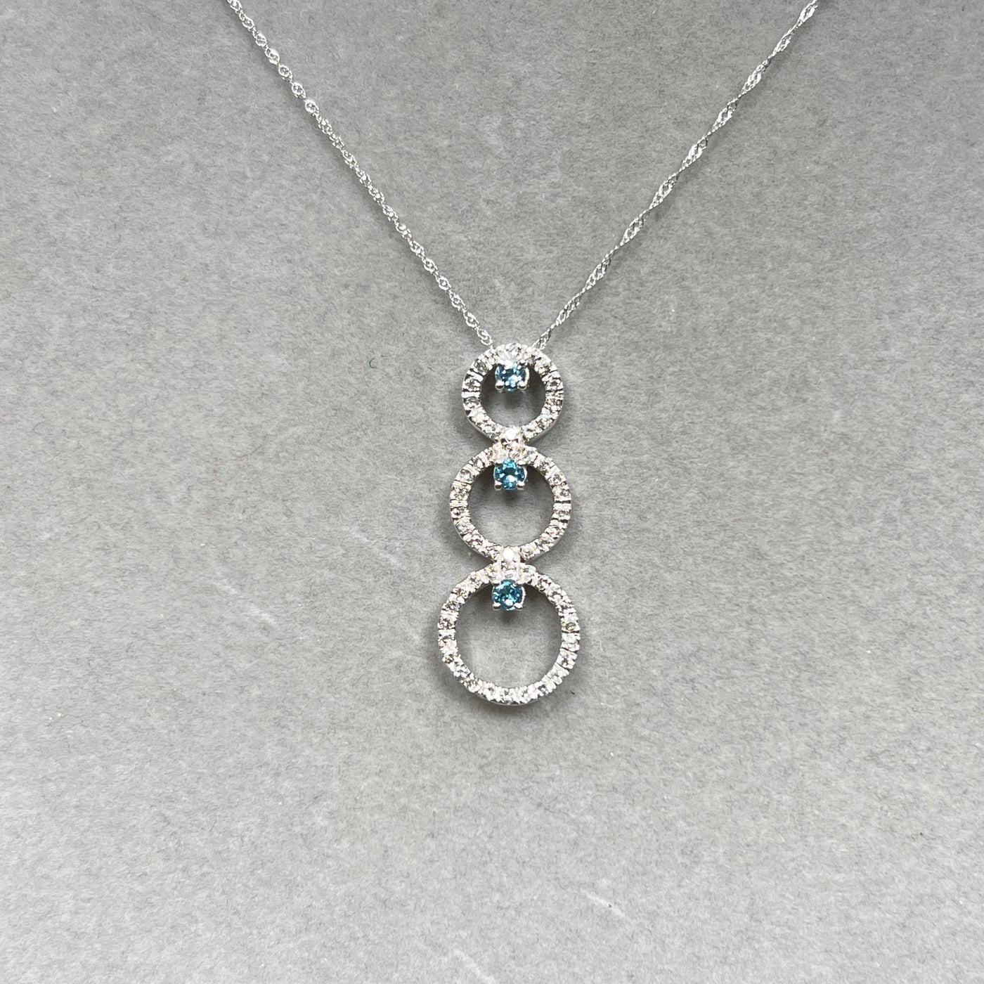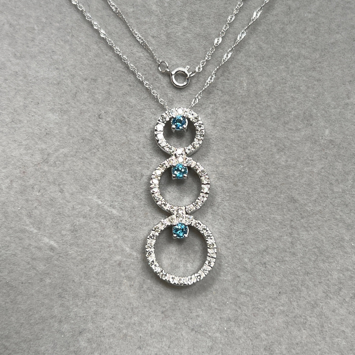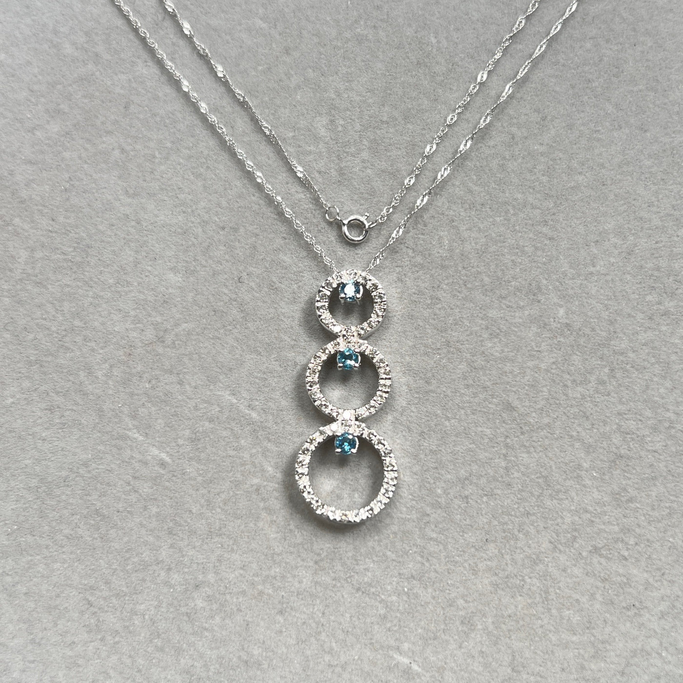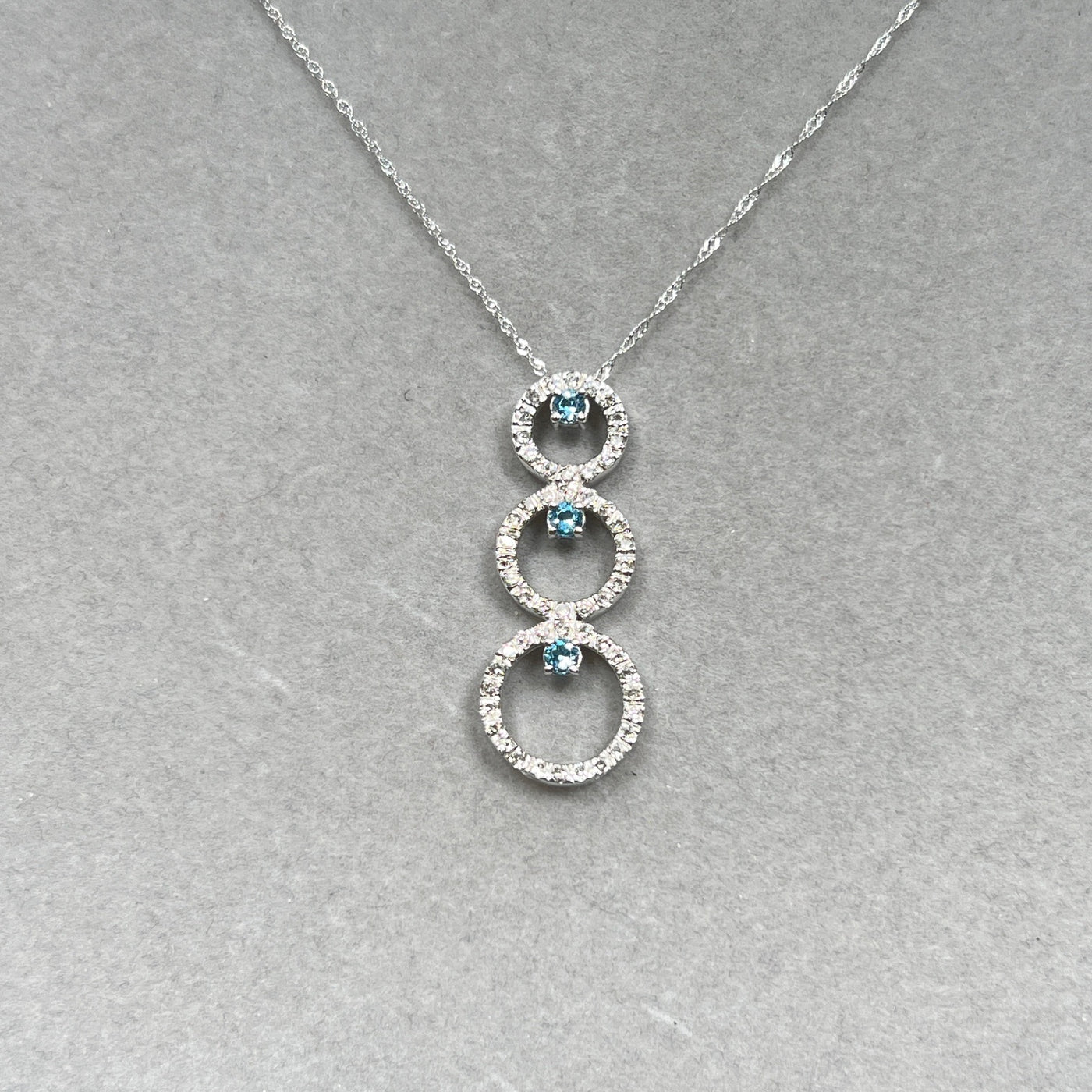 Aquamarine & Diamond Pendant 14K White Gold | 0.33 ct Aqua + 0.80 ct Diamonds | Trio Circle Necklace with 18" Chain