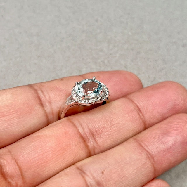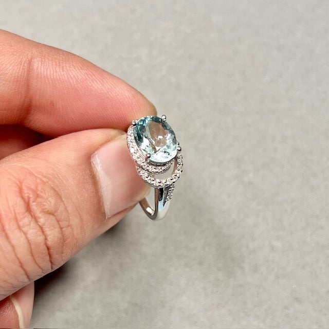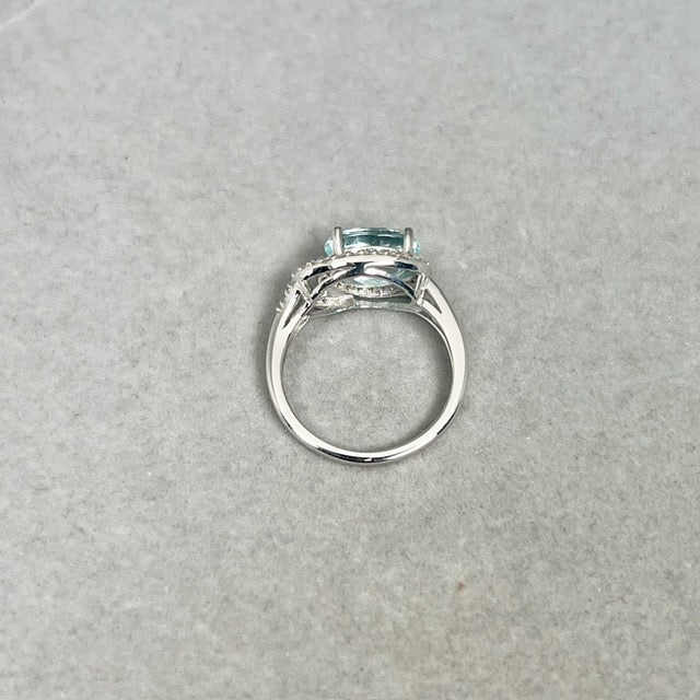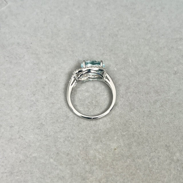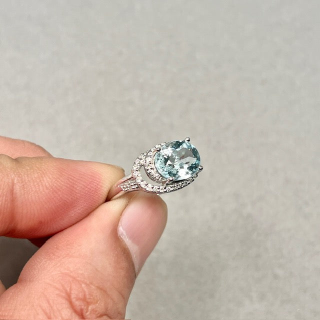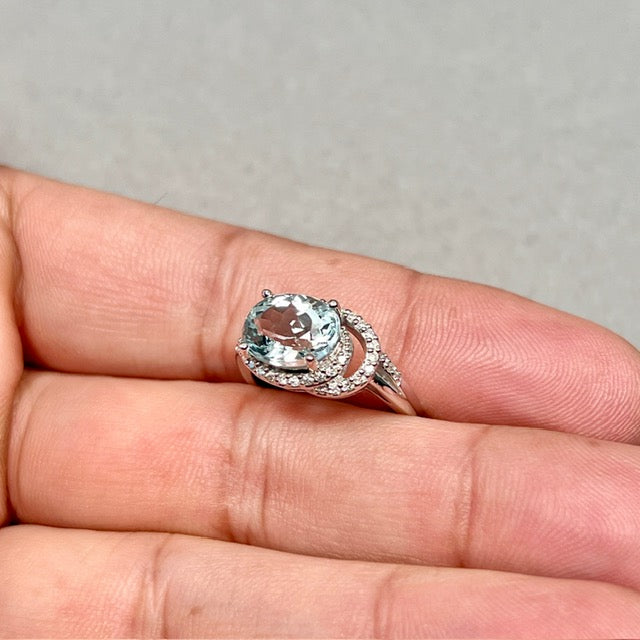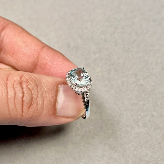 Aquamarine Diamond Ring | 14K White Gold Oval — March Birthstone Engagement Gift for Her Ring Size 7