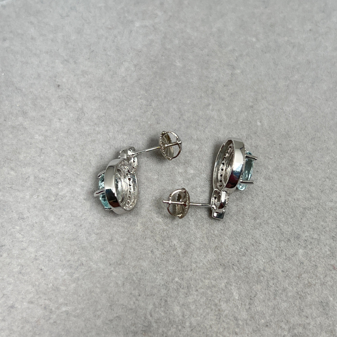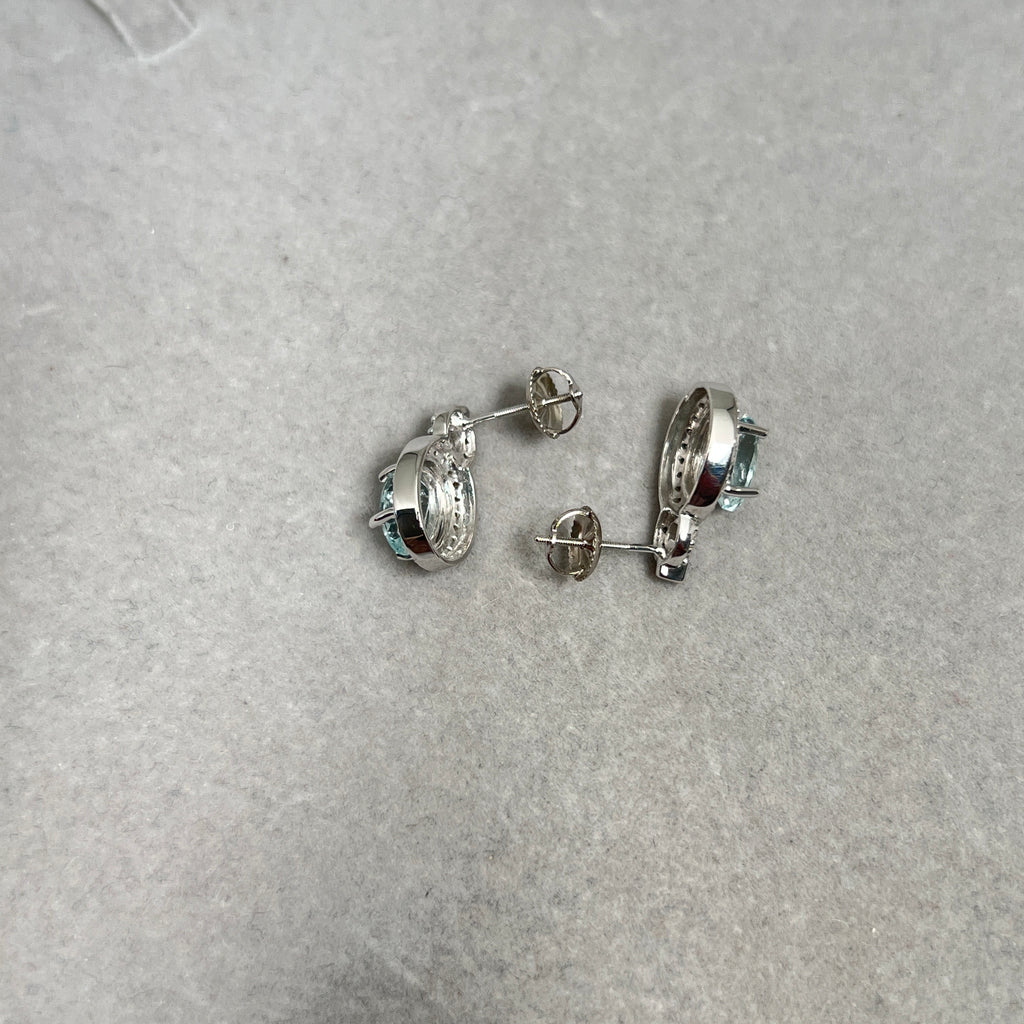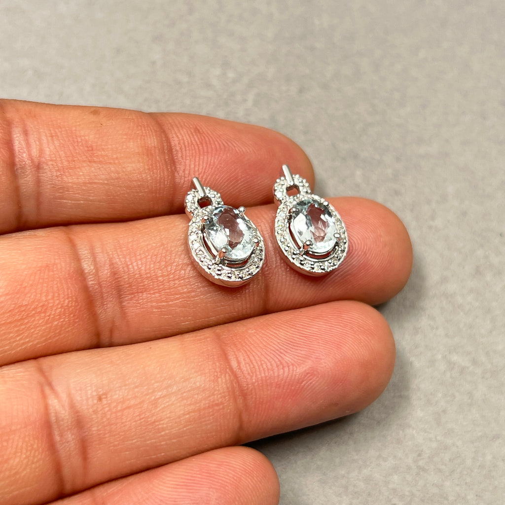 Aquamarine Halo Earrings 14K White Gold | 1.7–2.3 ct Stones + 0.25 ct Diamonds | Natural Gemstone Studs Gift
