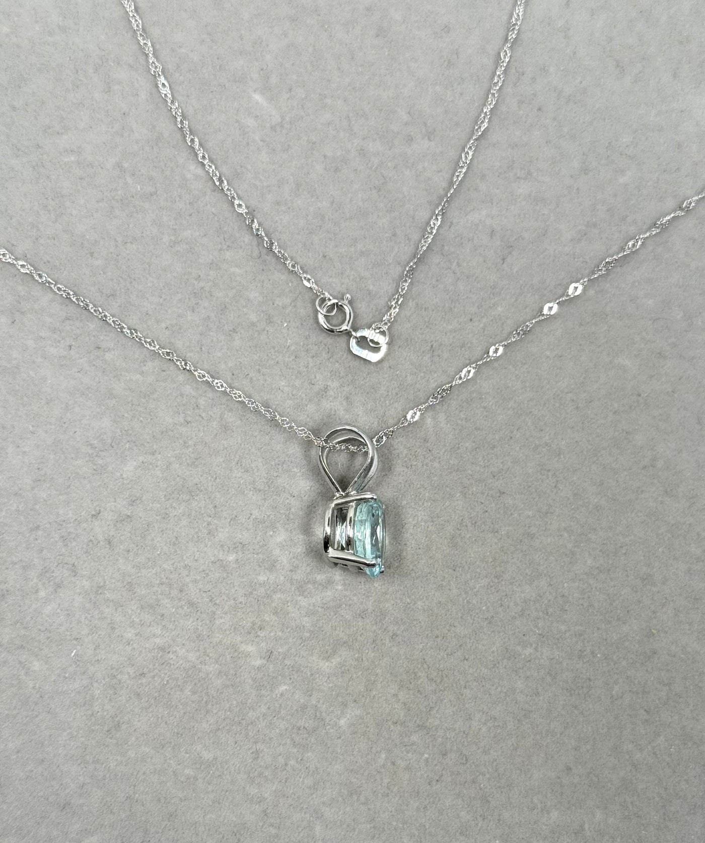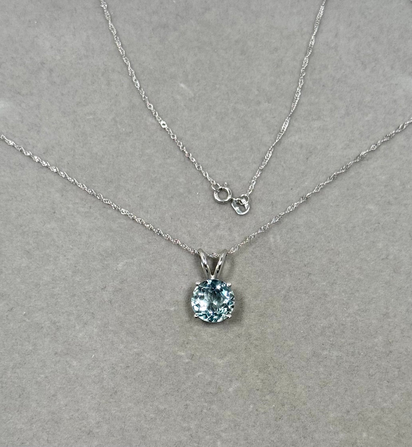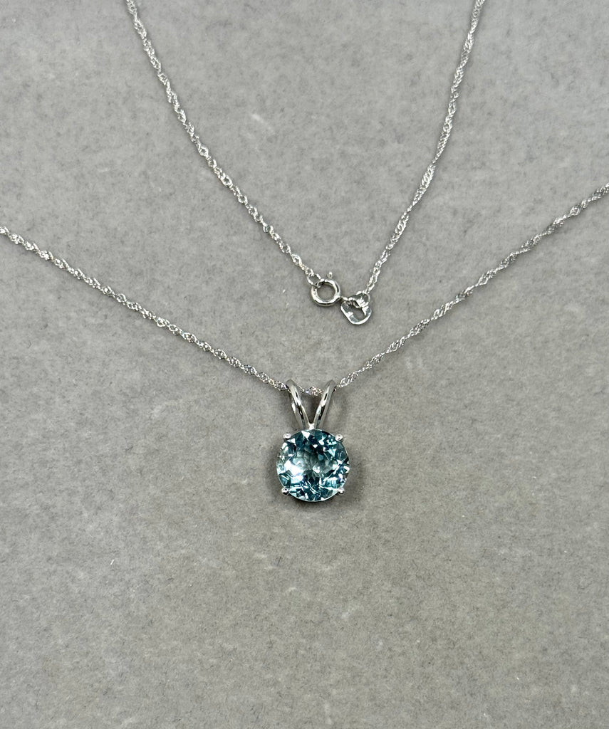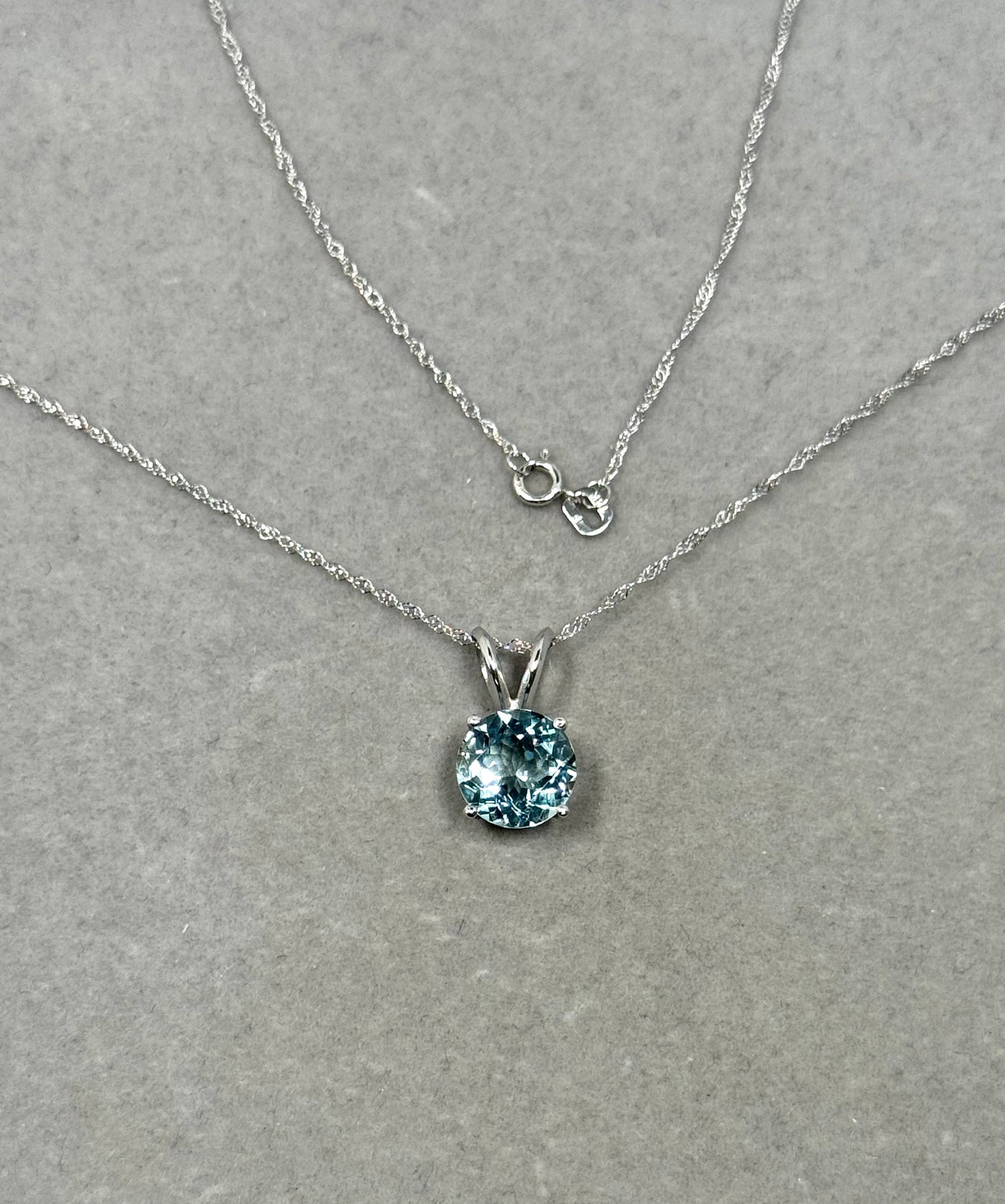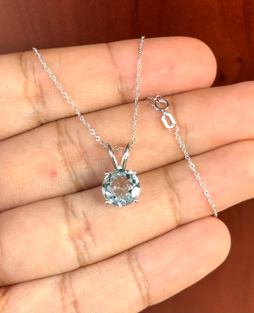 Aquamarine Solitaire Pendant – 2.10–2.75 Ct 9 mm AA Round Aquamarine Necklace in Platinum with 18K White Gold Chain