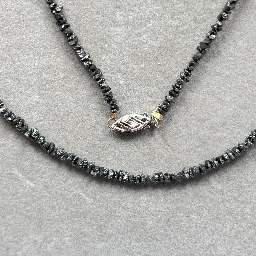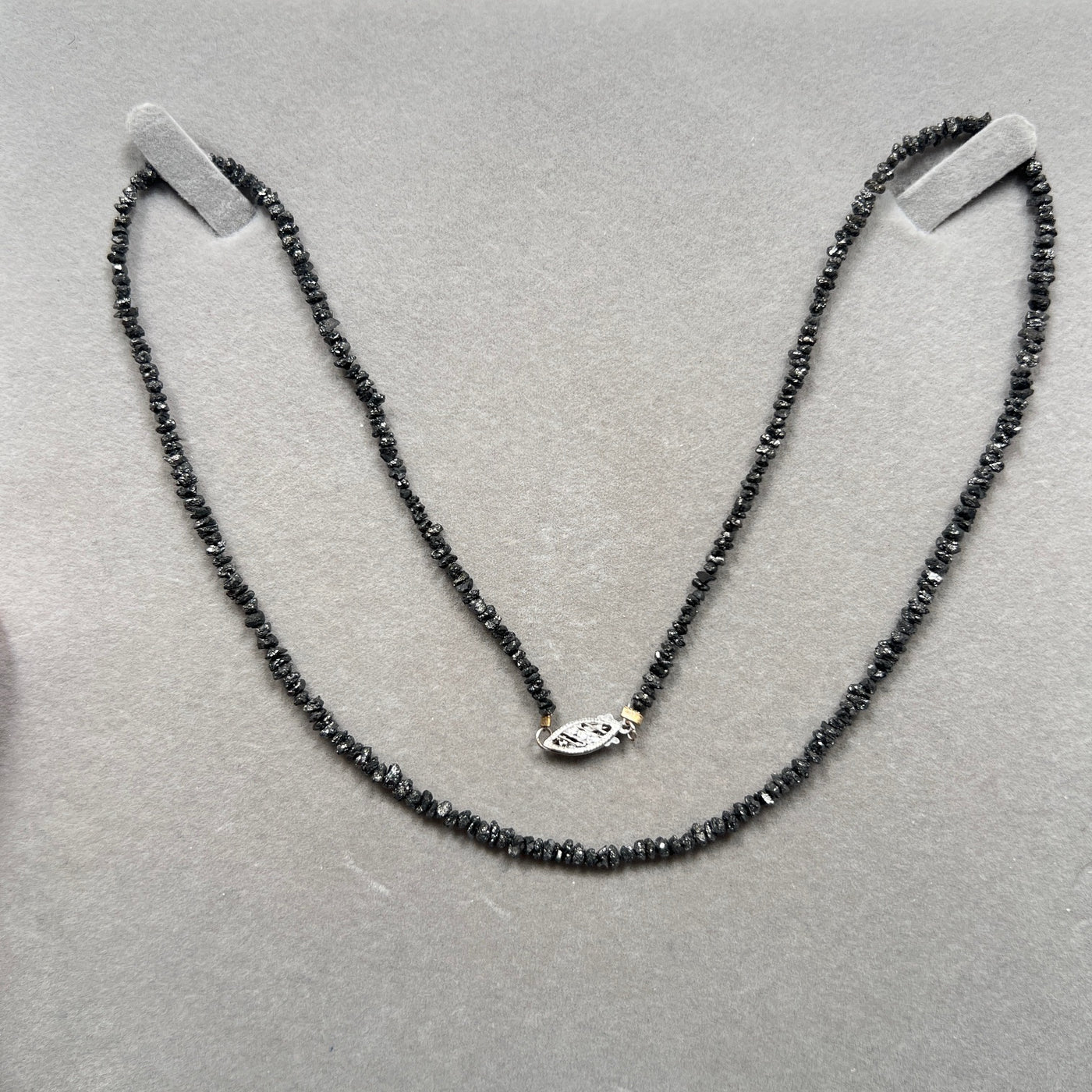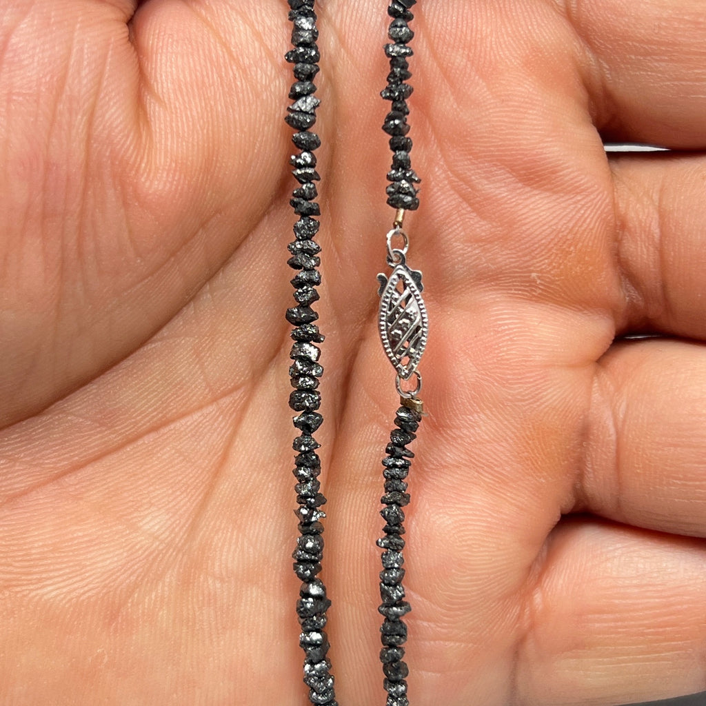 Beaded Black Diamond Necklace – 23 Ct TW, 18 Inches, 14K White Gold Fishlock Clasp