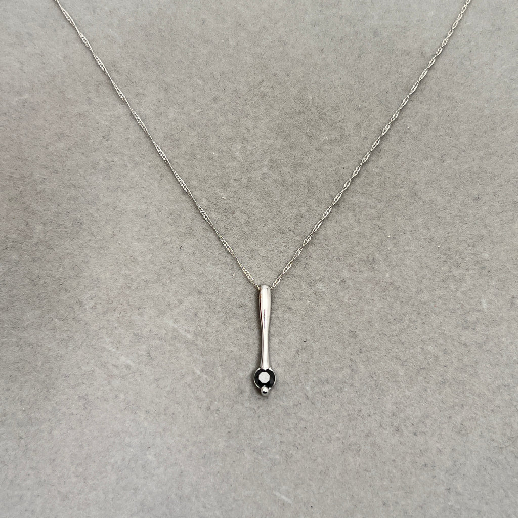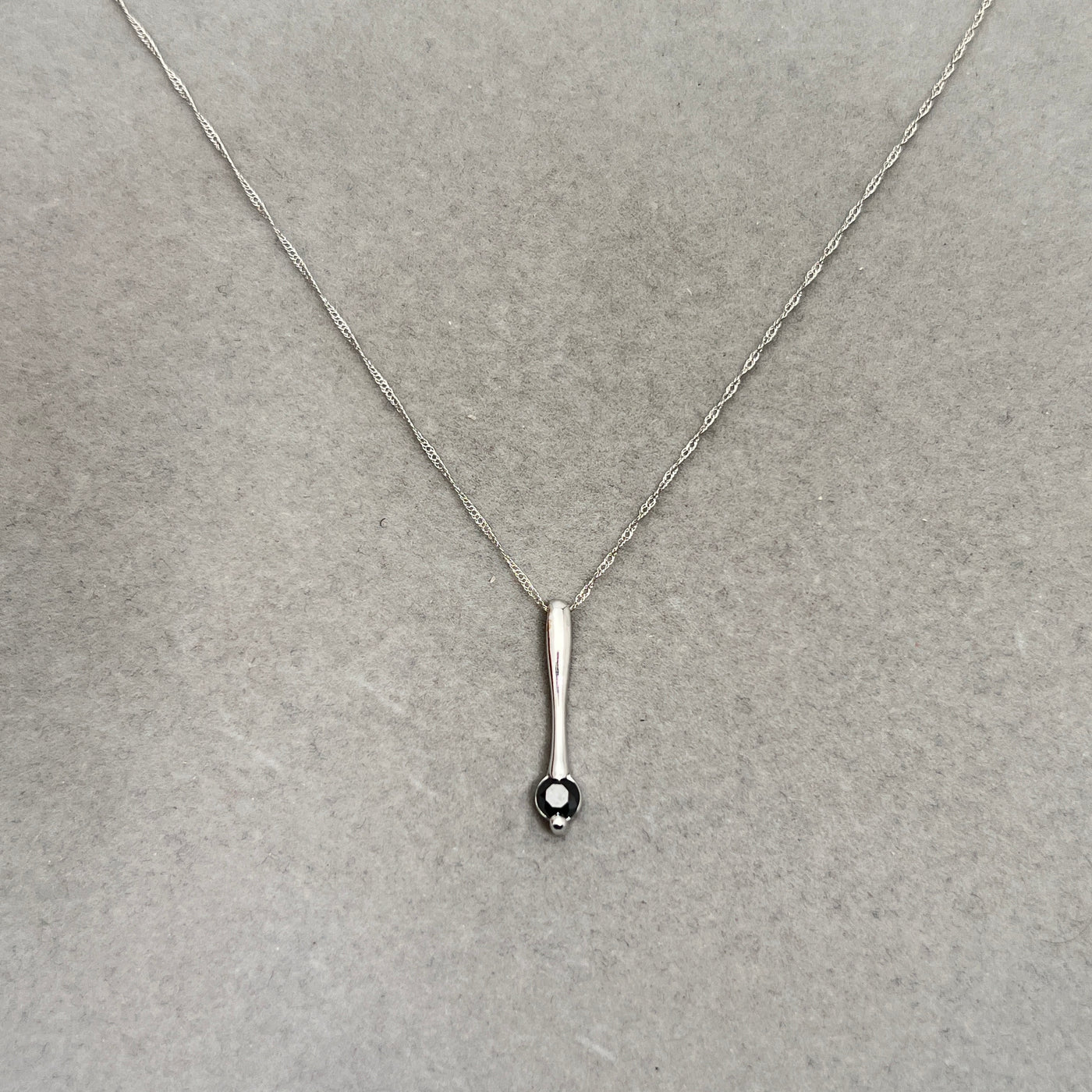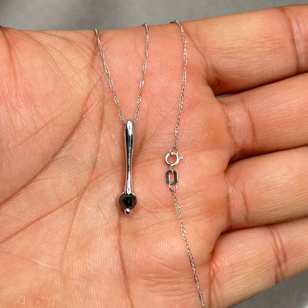 Make a sleek and modern statement with this elegant 0.50 Ct Black Diamond Solitaire Long Bar Pendant, crafted in premium 14K White Gold. Featuring a single AA-quality round black diamond, this minimalist vertical bar design creates a bold yet refined look suitable for everyday luxury or special-occasion wear.