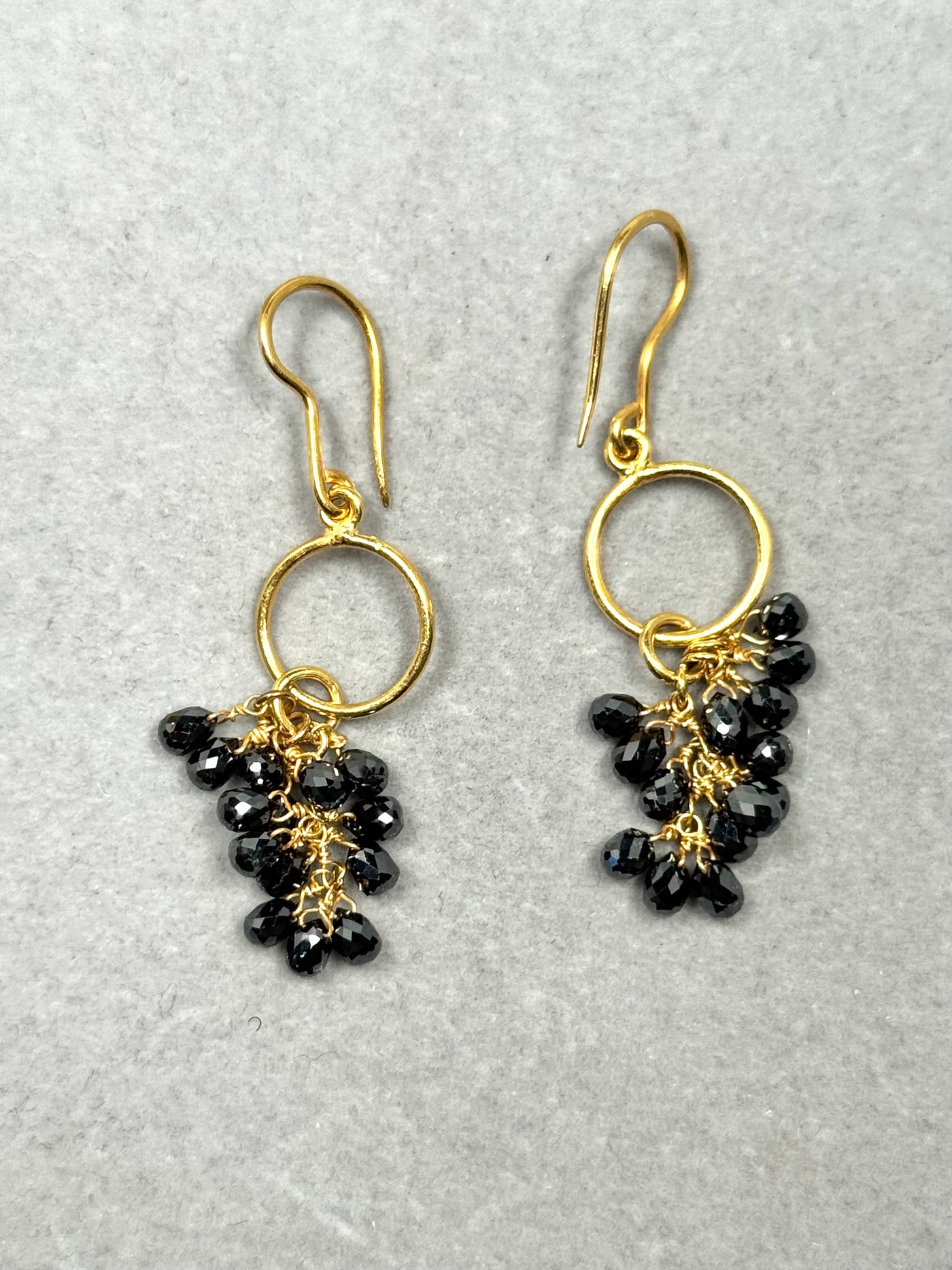 Black Diamond Briolette Earrings 18K Yellow Gold | 7.46 ct Natural Black Diamonds | French Wire Drop Earrings