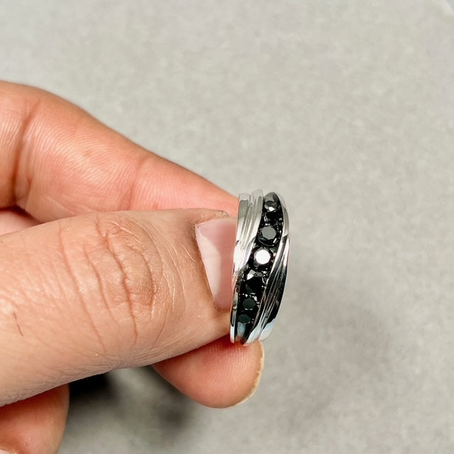 Black Diamond Fashion Ring | 925 Sterling Silver | Channel Set Round Diamonds | Women’s Ring Size 10