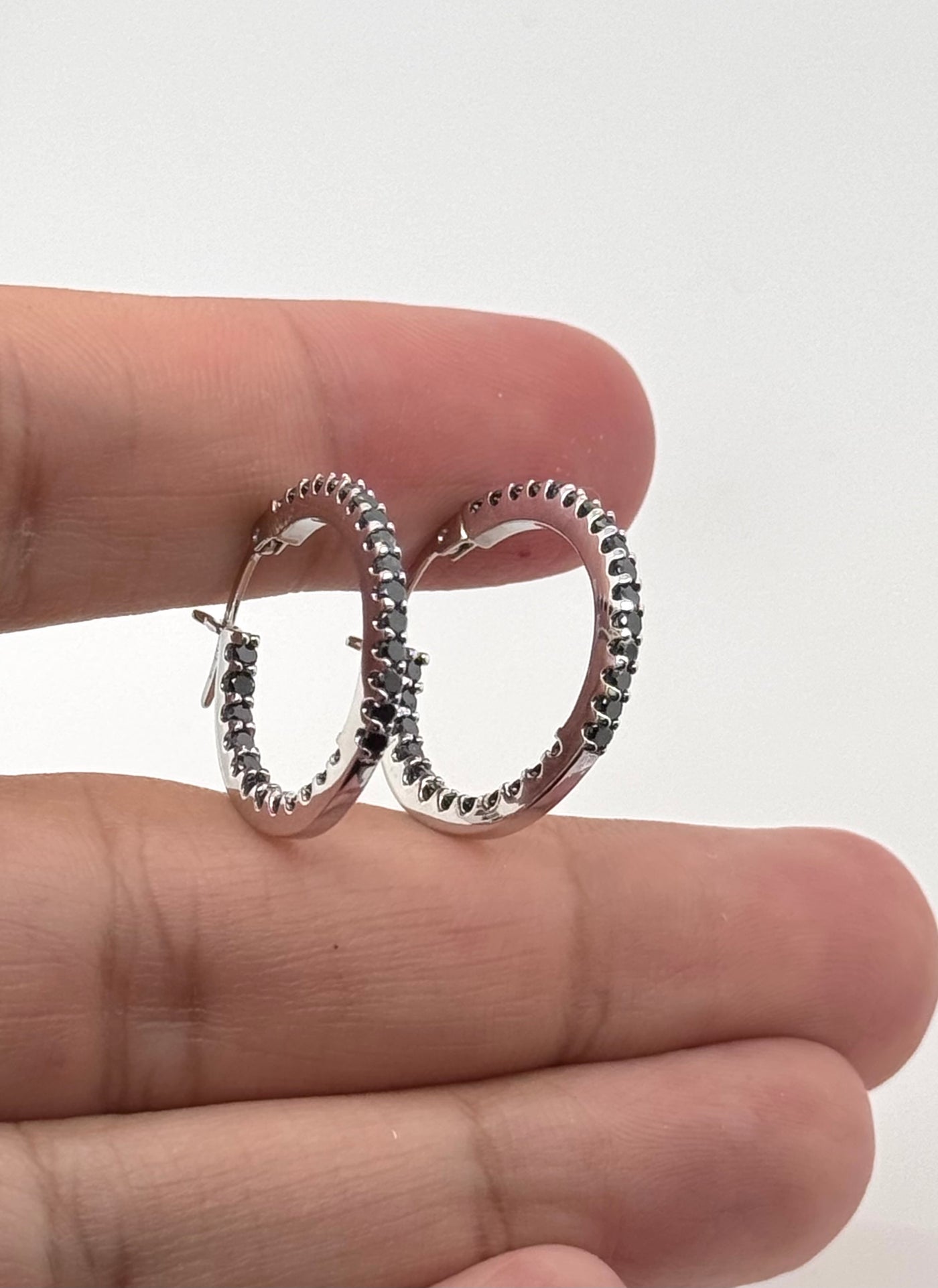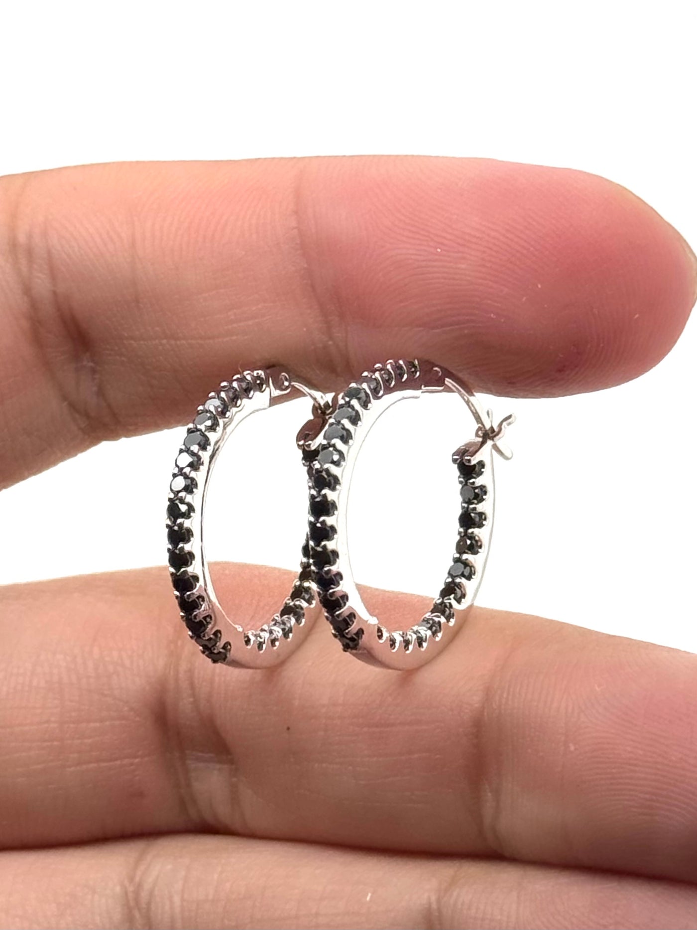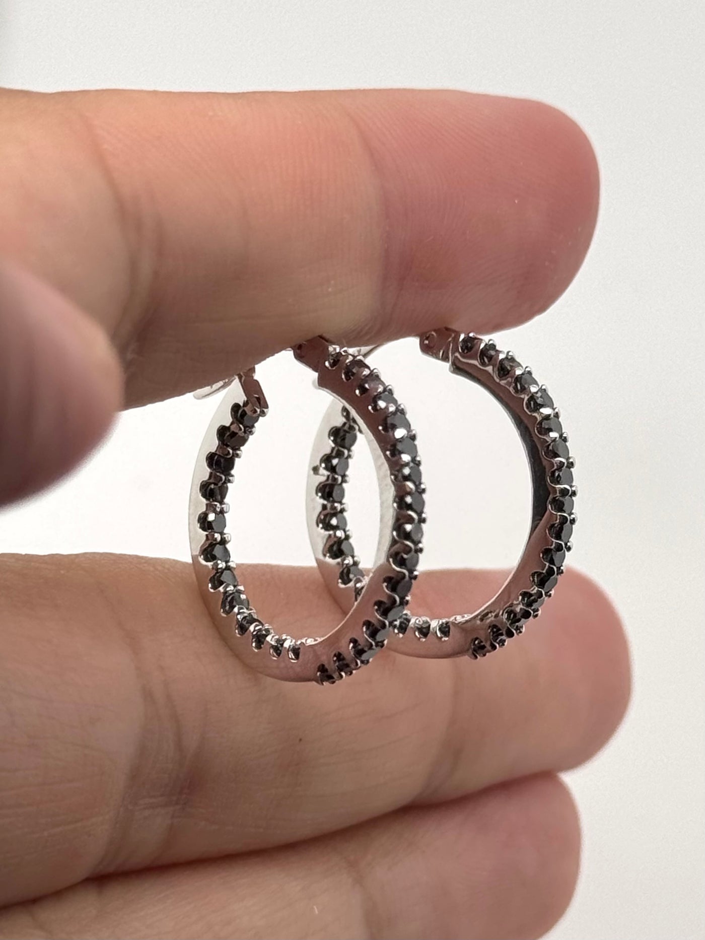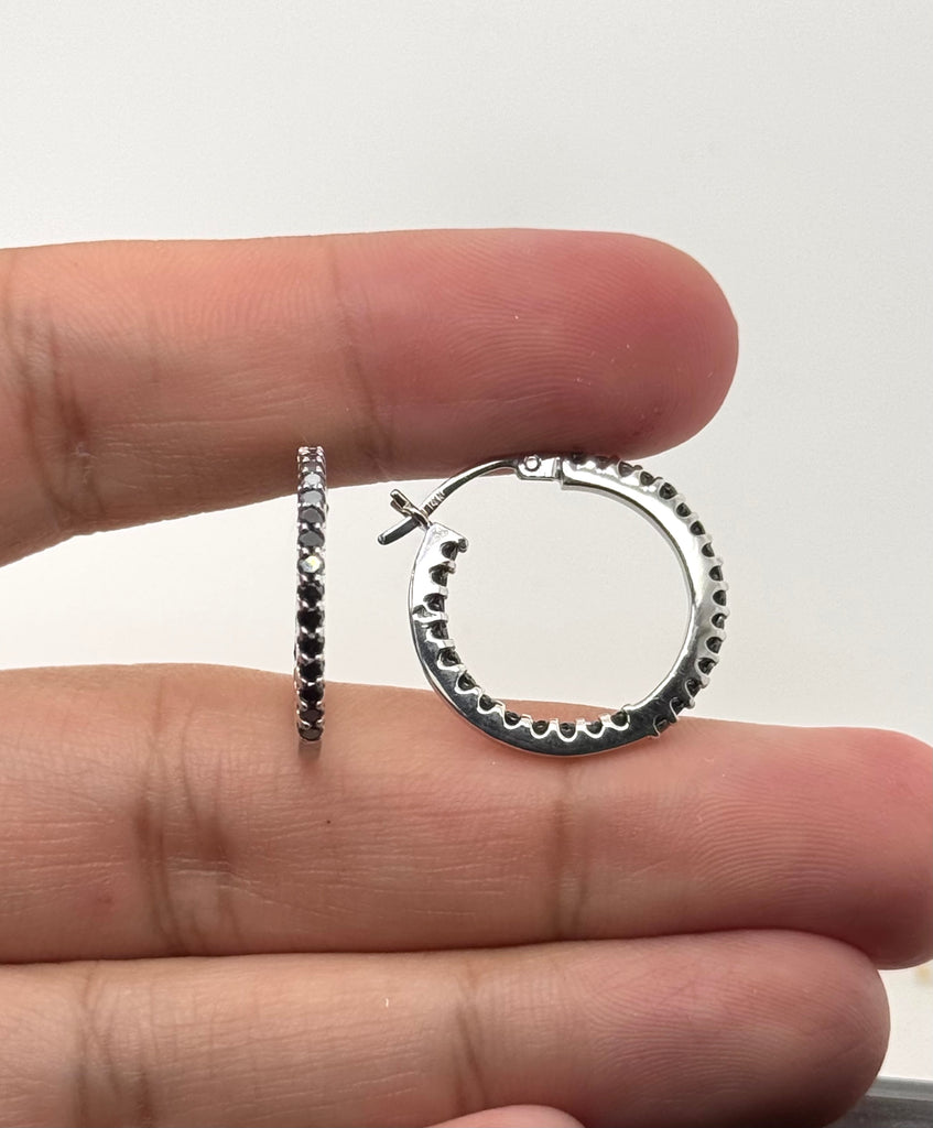 Black Diamond Huggie Earrings 18K White Gold | 1.37 Ct In Out Diamond Hoops | AAA Black Diamond Earrings