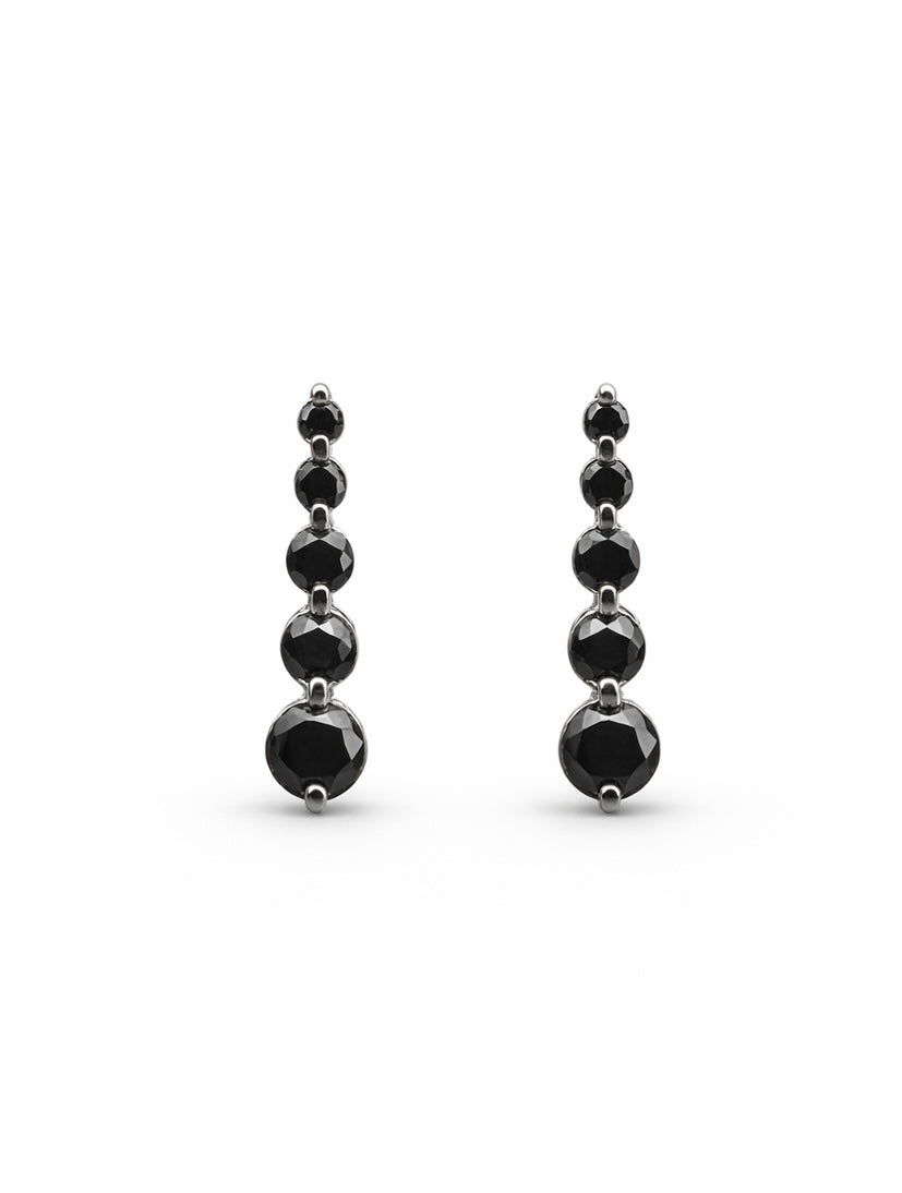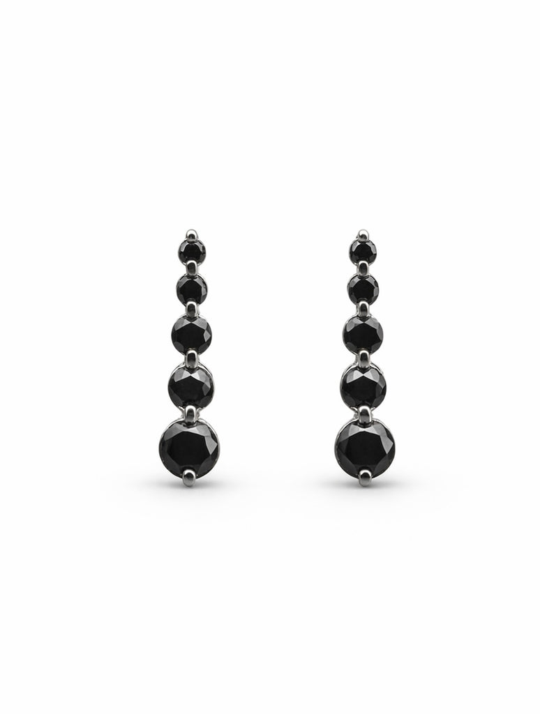 Black Diamond Journey Earrings | 14K White Gold Five Stone — Elegant Gift for Her
