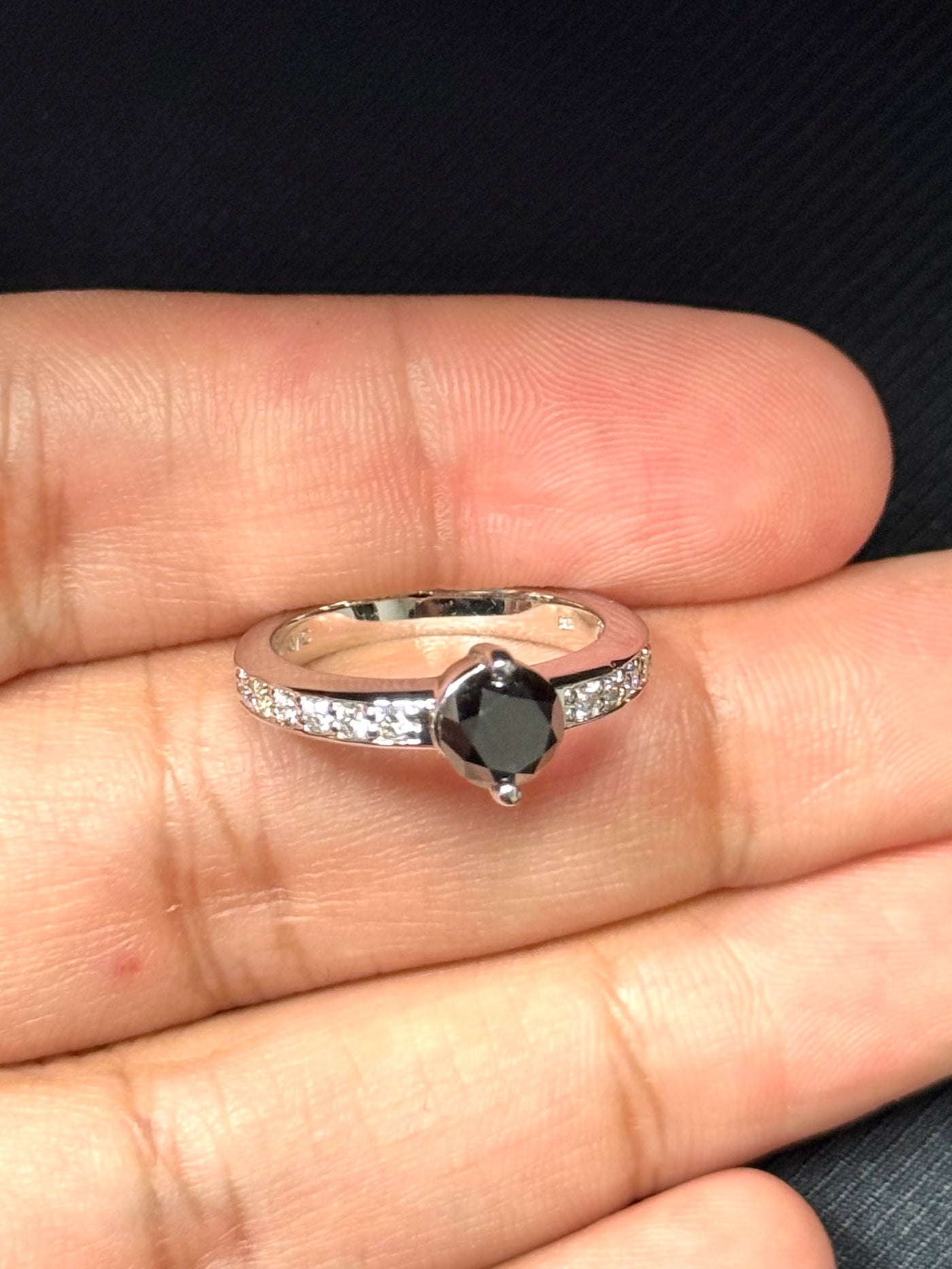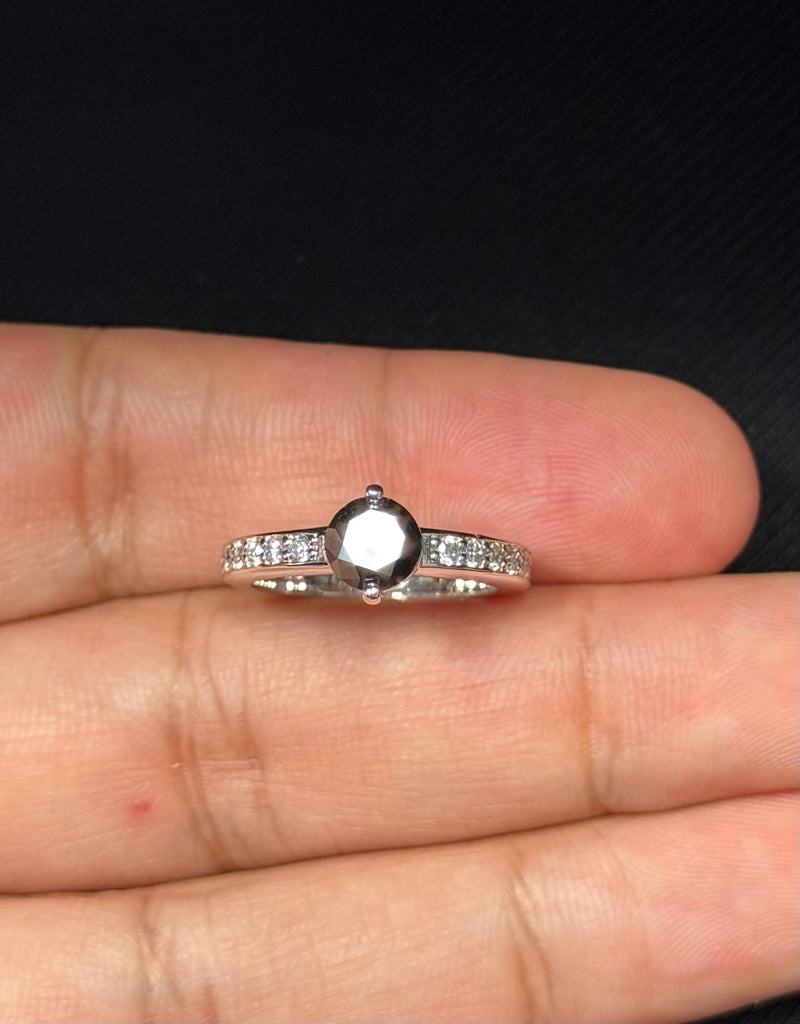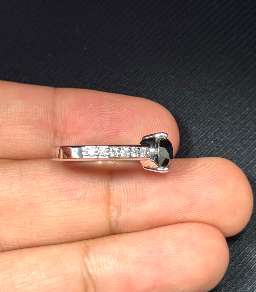 Black Diamond Ring 18K White Gold | 1.00 ct Round Black Diamond + 0.30 ct Accent Diamonds | Prong-Set Women’s Ring