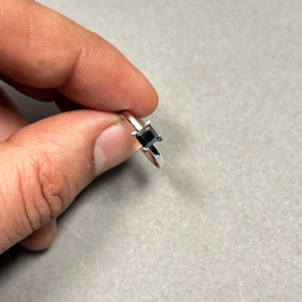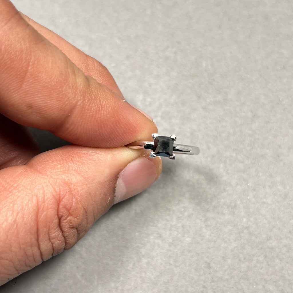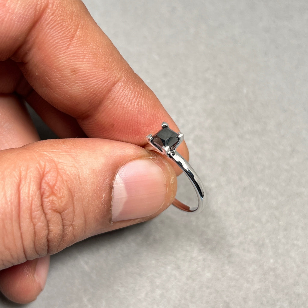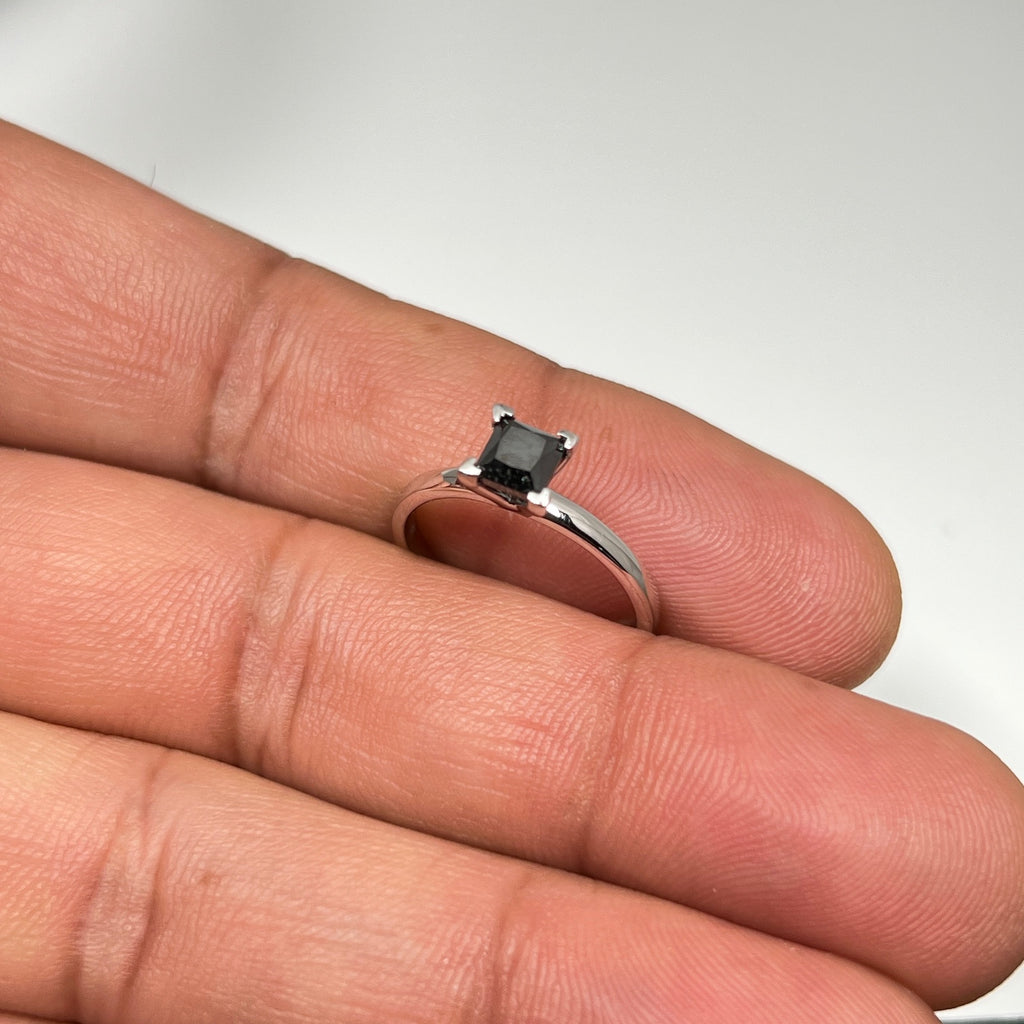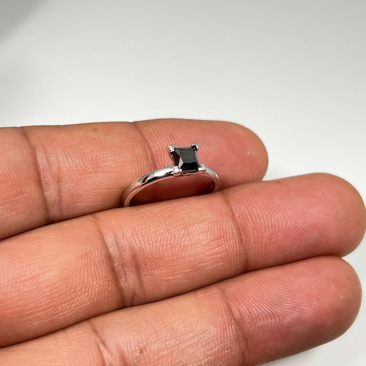 Black Diamond Solitaire Ring | AA Princess Cut 4.3–4.7mm | 3/4 Ct in 14K White Gold | Modern Engagement Ring & Fine Jewelry Gift