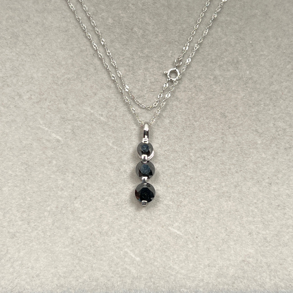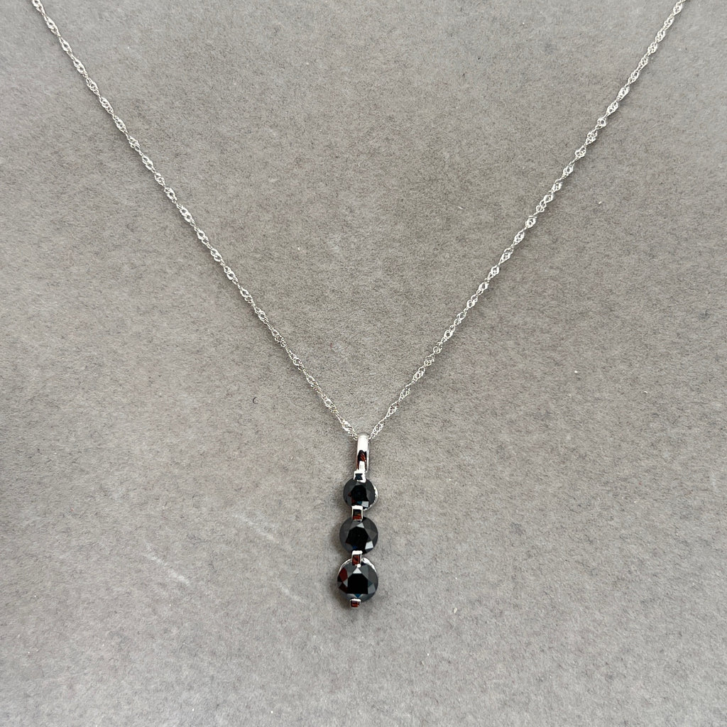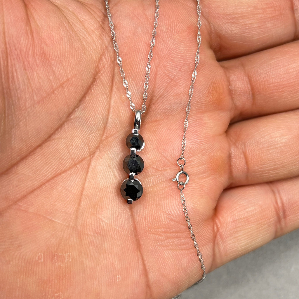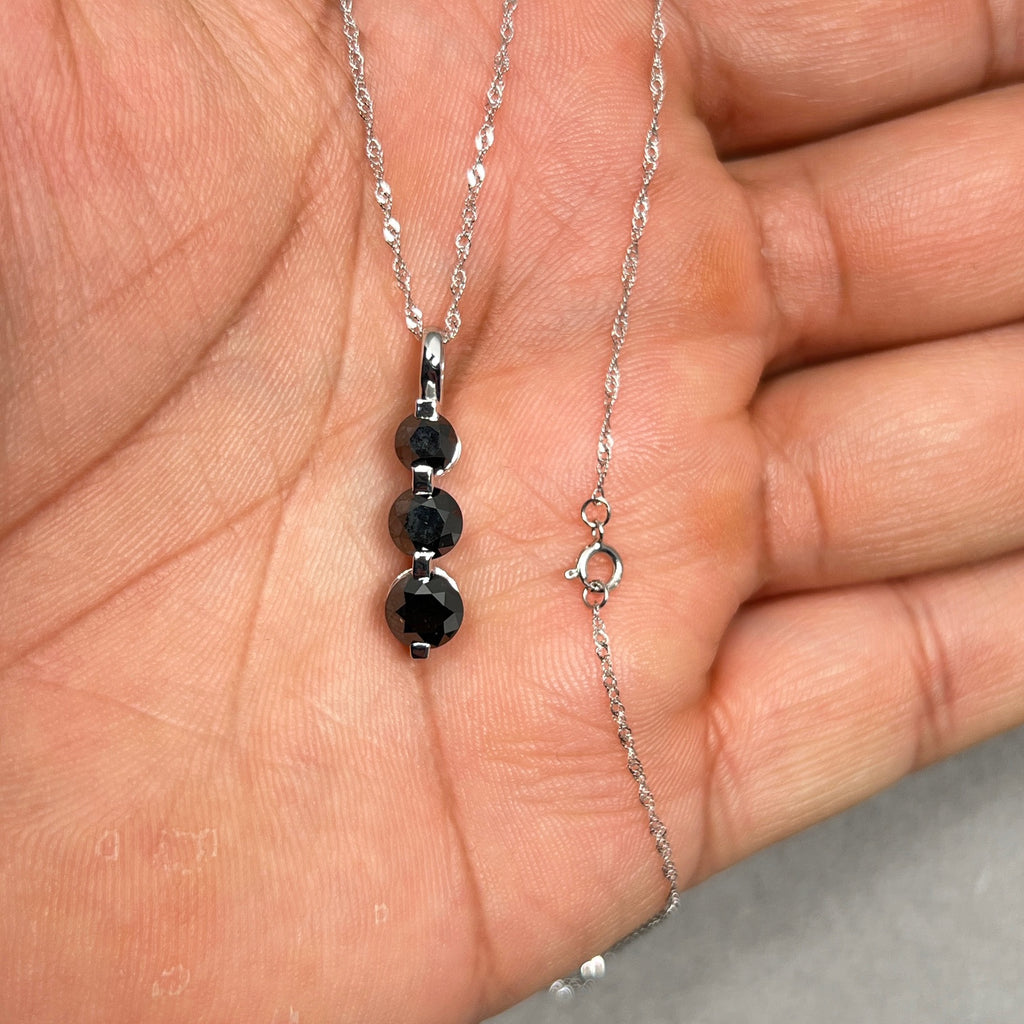 Black Diamond Three Stone Pendant | 2.50 Ct Graduated Black Diamonds | 14K White Gold Necklace with 18" Chain | Fine Jewelry Gift