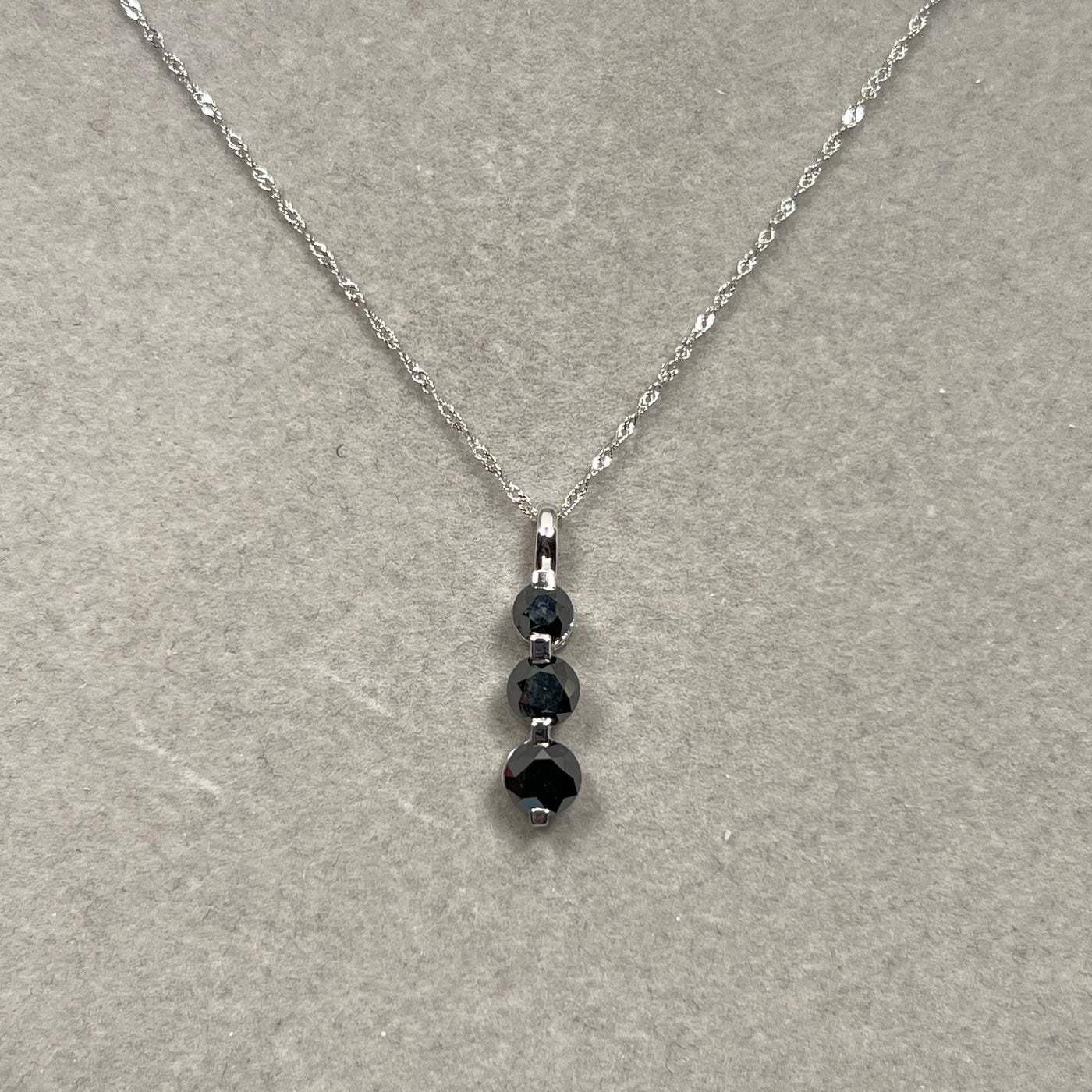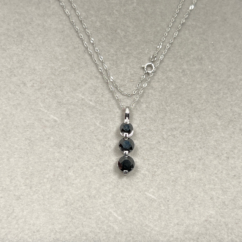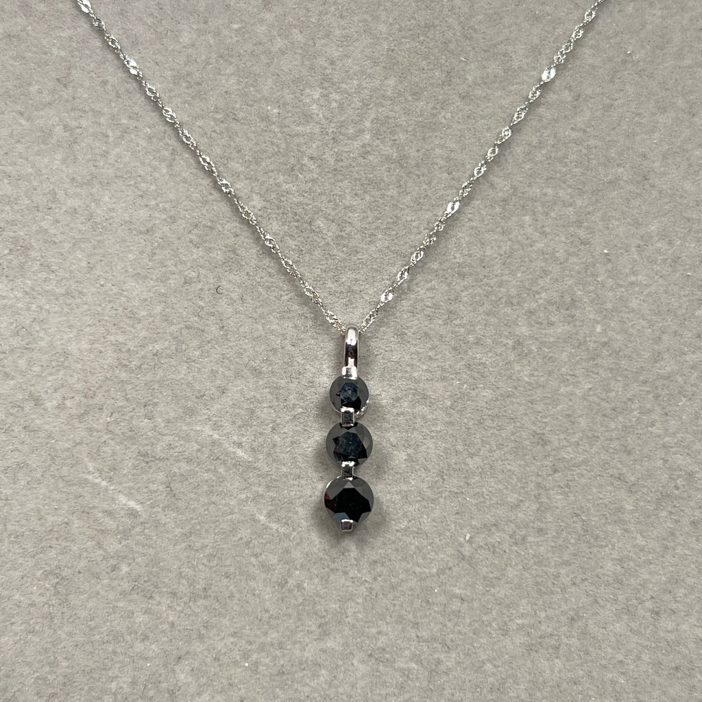 Black Diamond Three Stone Pendant | 2.50 Ct Graduated Black Diamonds | 14K White Gold Necklace with 18" Chain | Fine Jewelry Gift