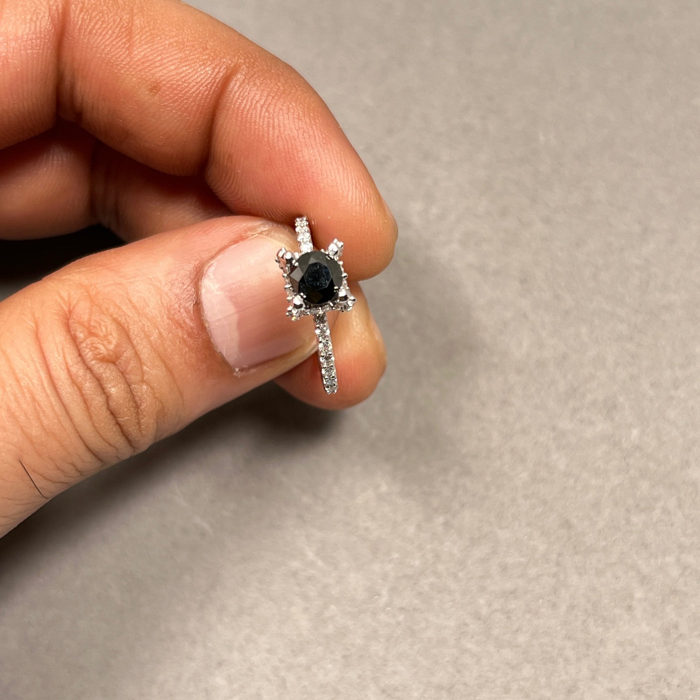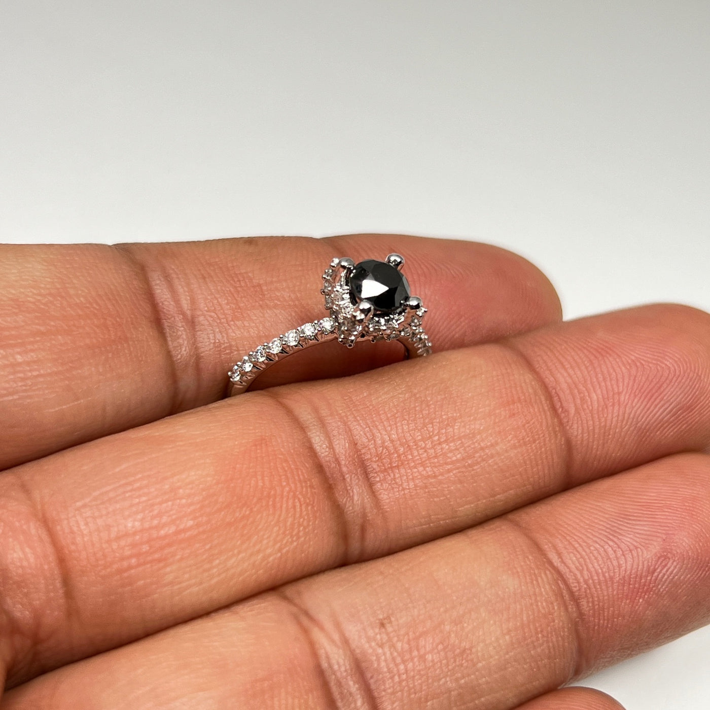 Black Diamond & White Diamond Ring 14K White Gold | 0.85 ct Black Diamond + 0.48 ct Diamonds | Women’s Fine Jewelry