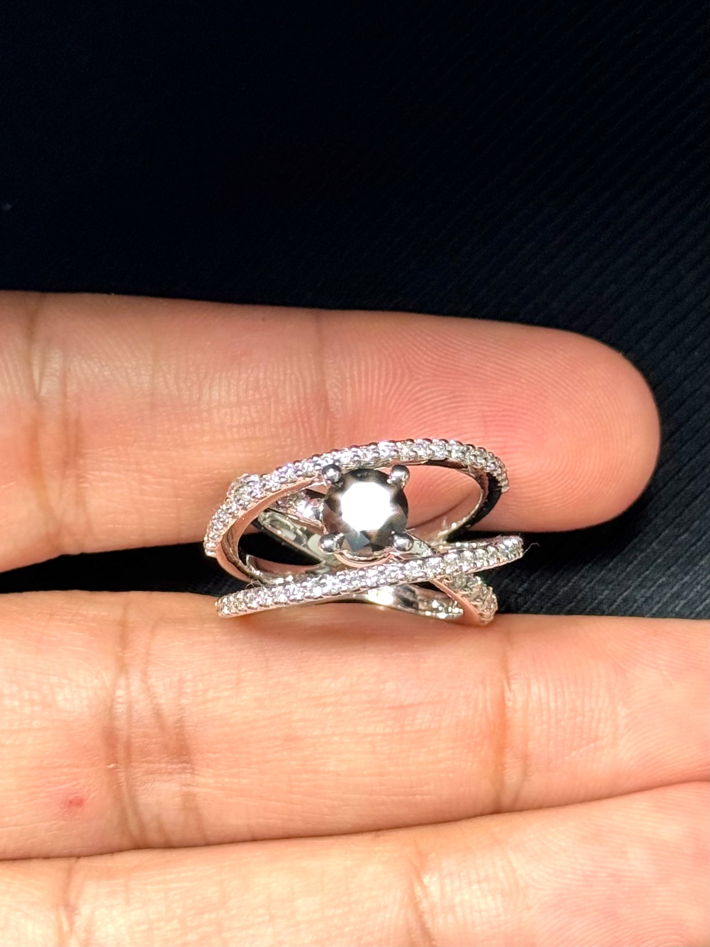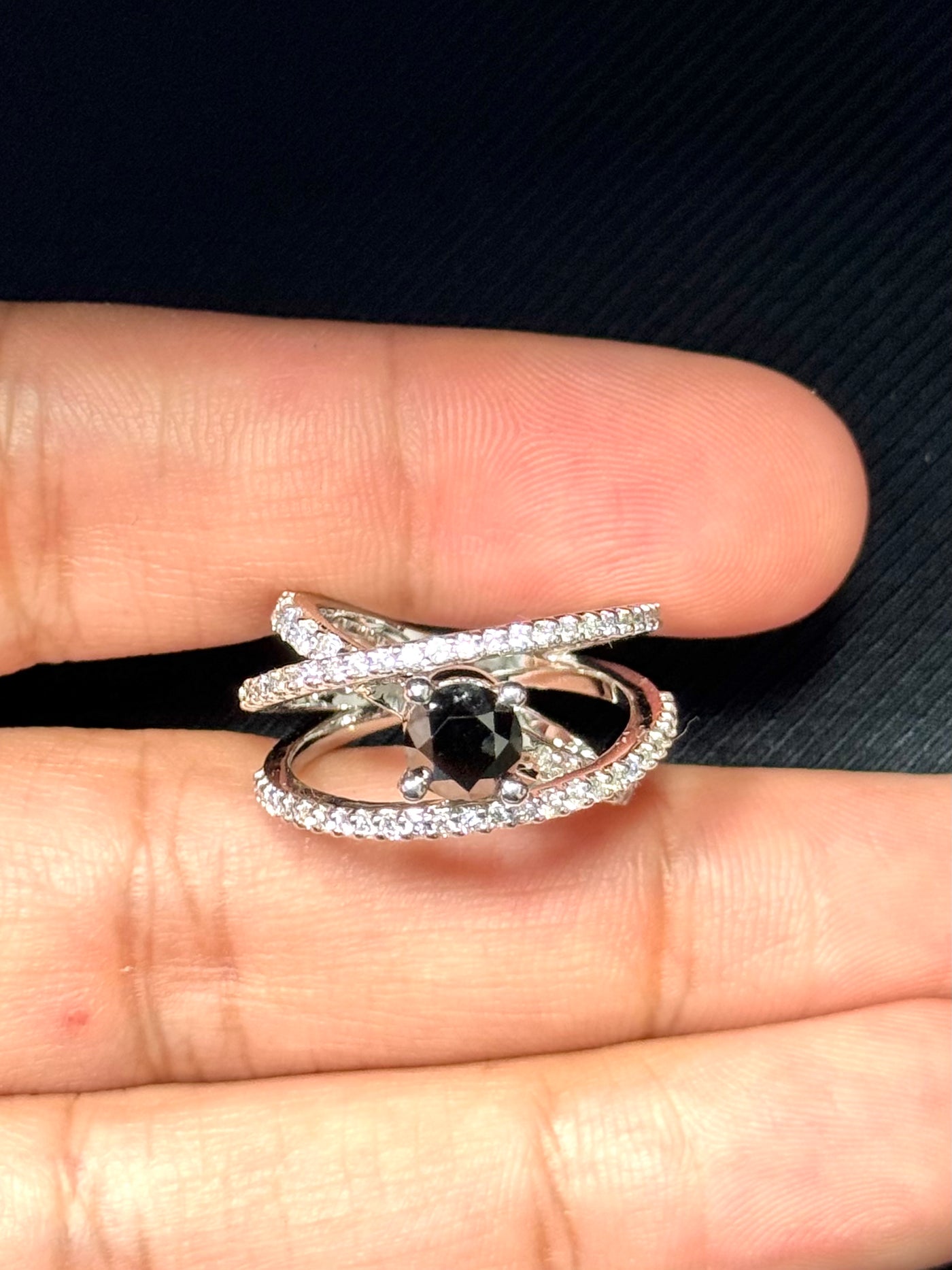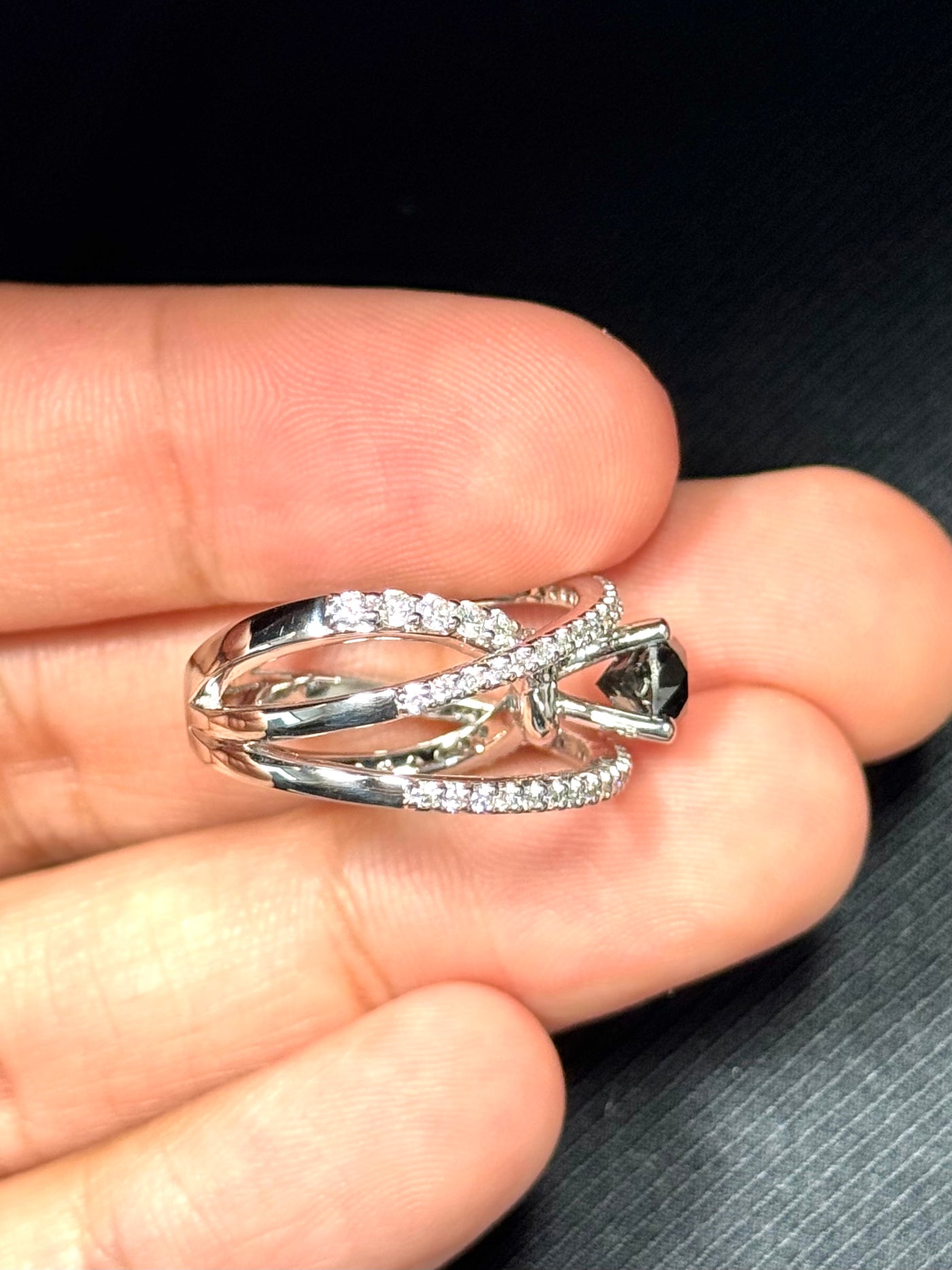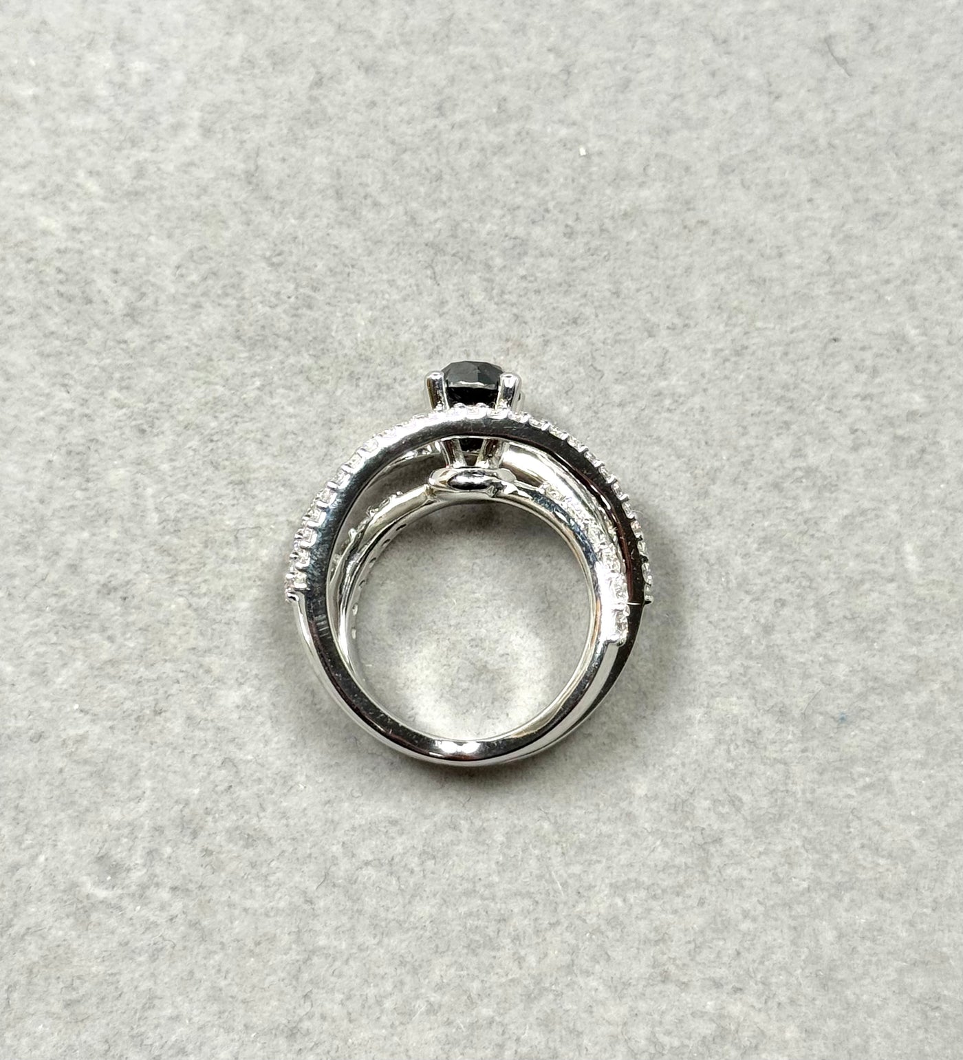 Black & White Diamond Ring 18K White Gold | 1.25 ct Black Diamond + 0.88 ct White Diamonds | Prong-Set Multi-Diamond Ring