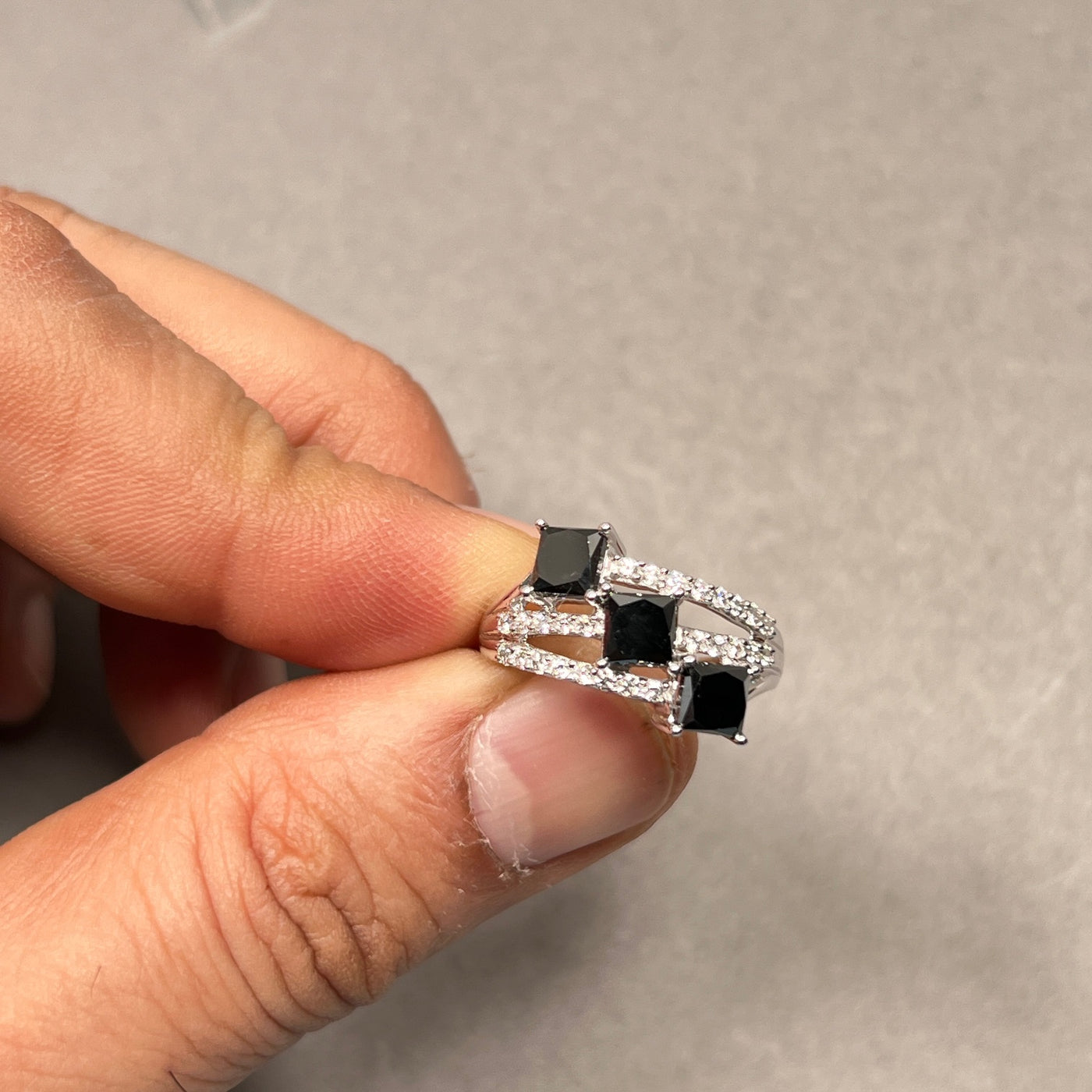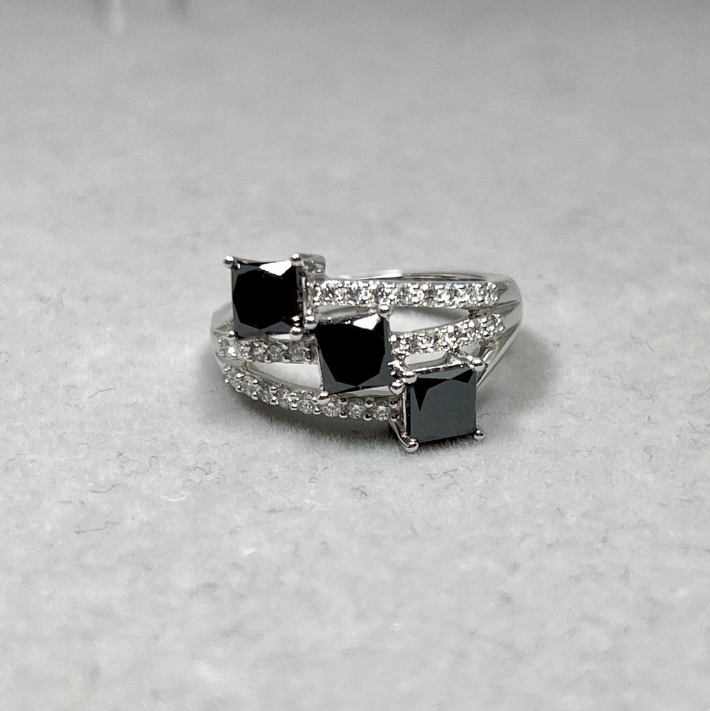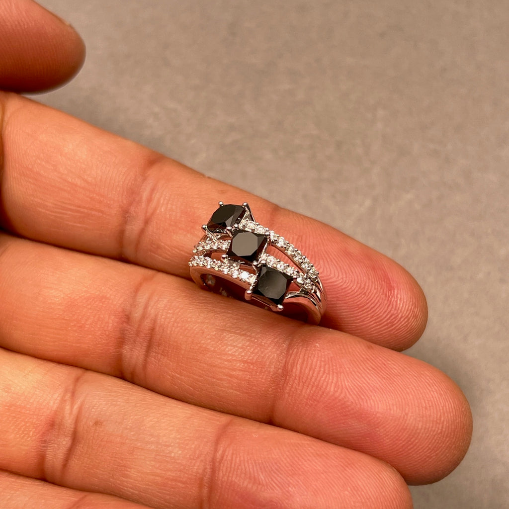 Black & White Diamond Ring 18K White Gold | 1.25 ct Black Diamond + 0.88 ct White Diamonds | Prong-Set Multi-Diamond Ring