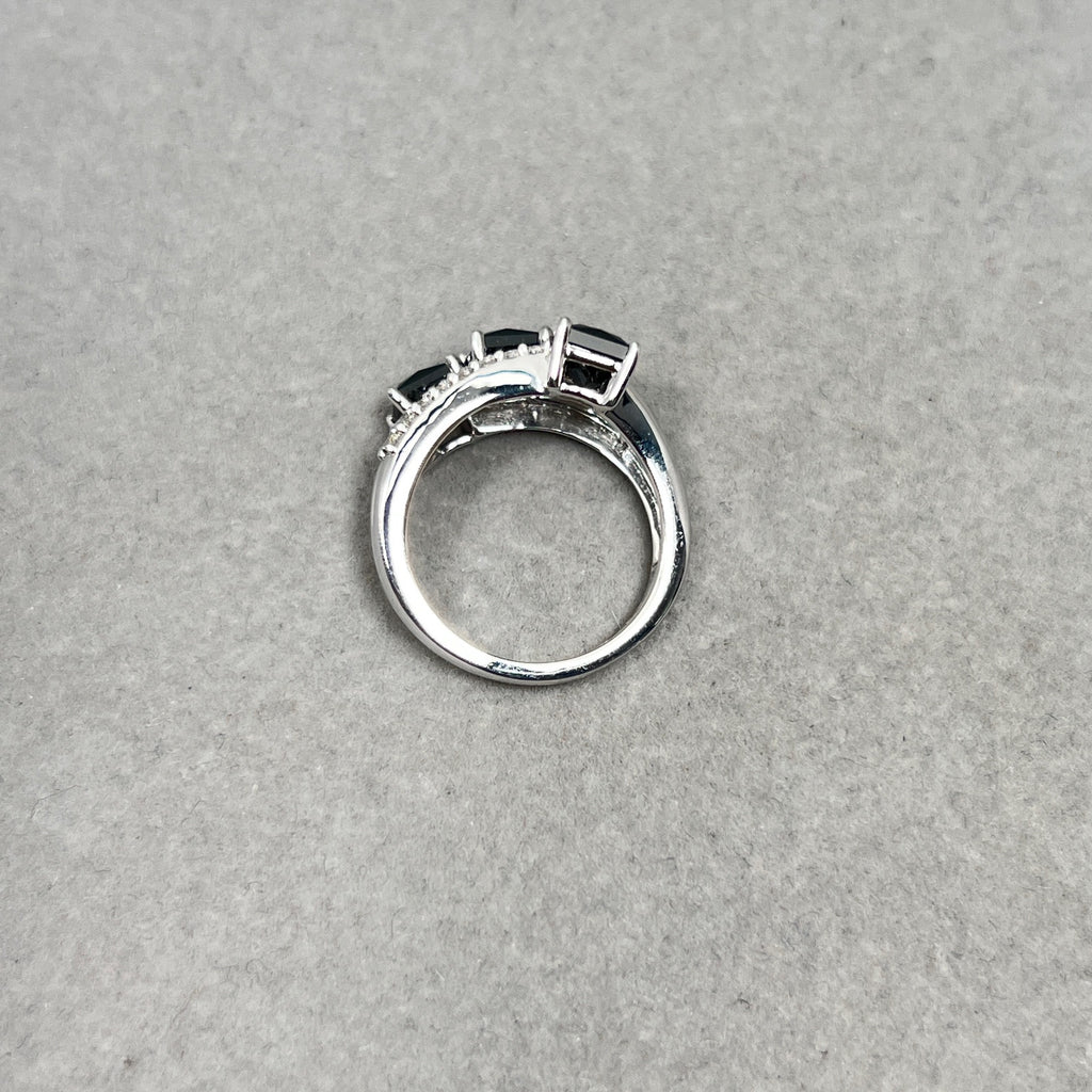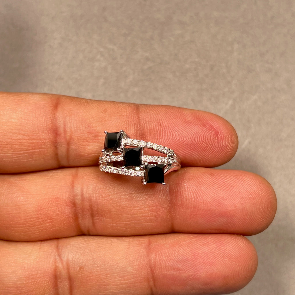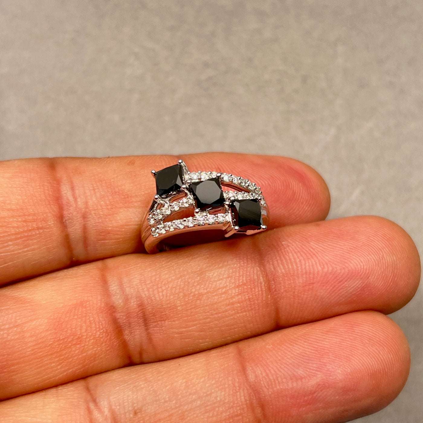 Black & White Diamond Ring 18K White Gold | 1.25 ct Black Diamond + 0.88 ct White Diamonds | Prong-Set Multi-Diamond Ring