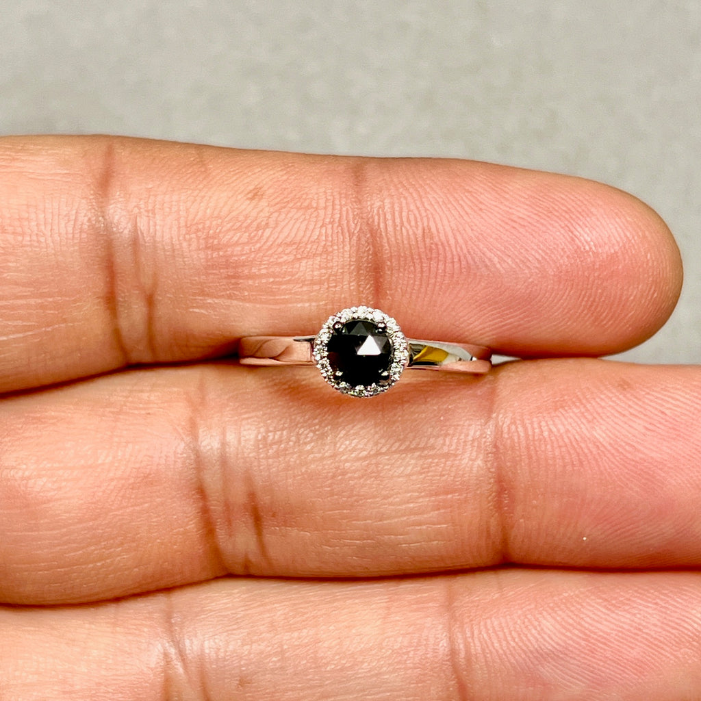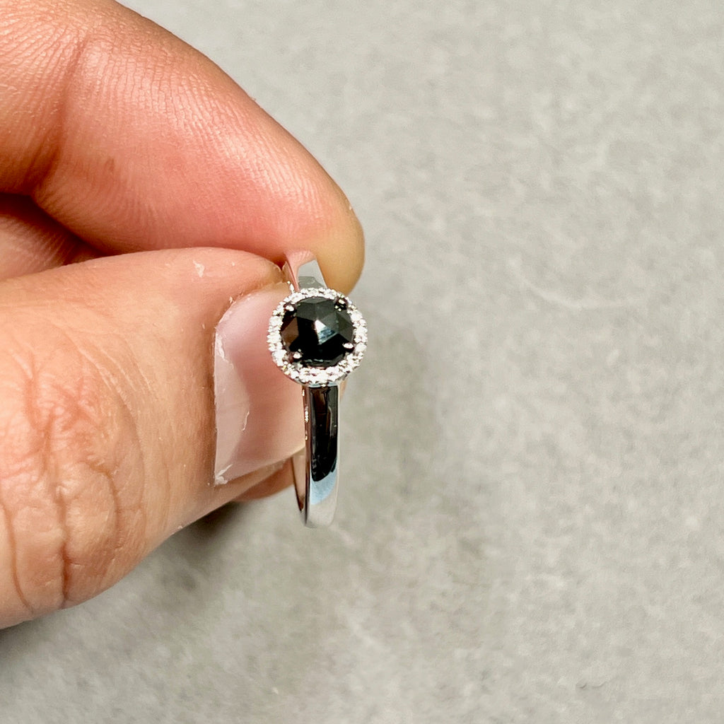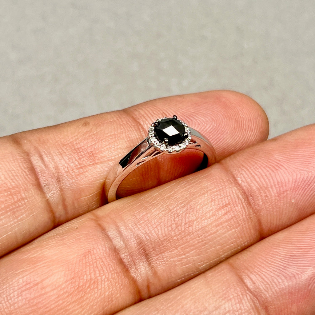 Black & White Diamond Ring 925 Silver | 5.1mm Rose Cut Black Diamond 0.50ct + 16 White Diamonds | Women Fashion, Anniversary Gift