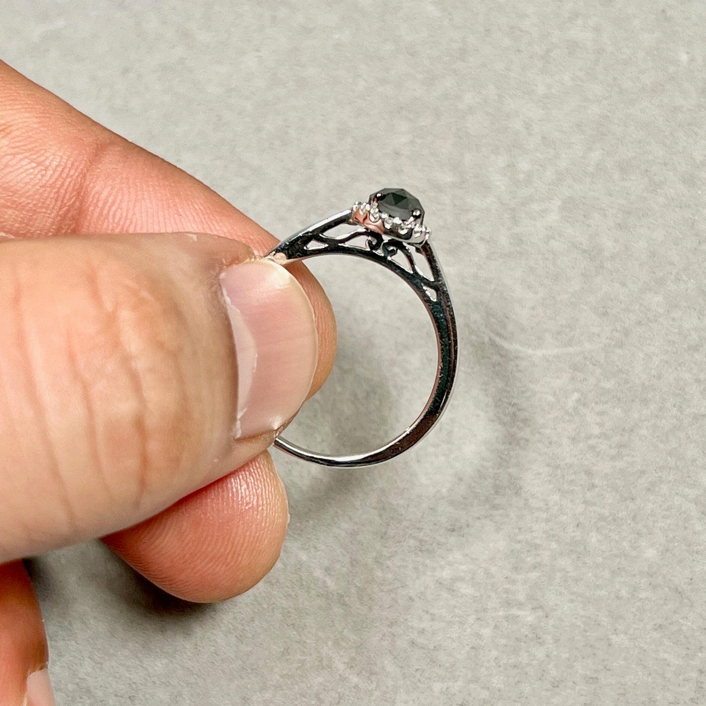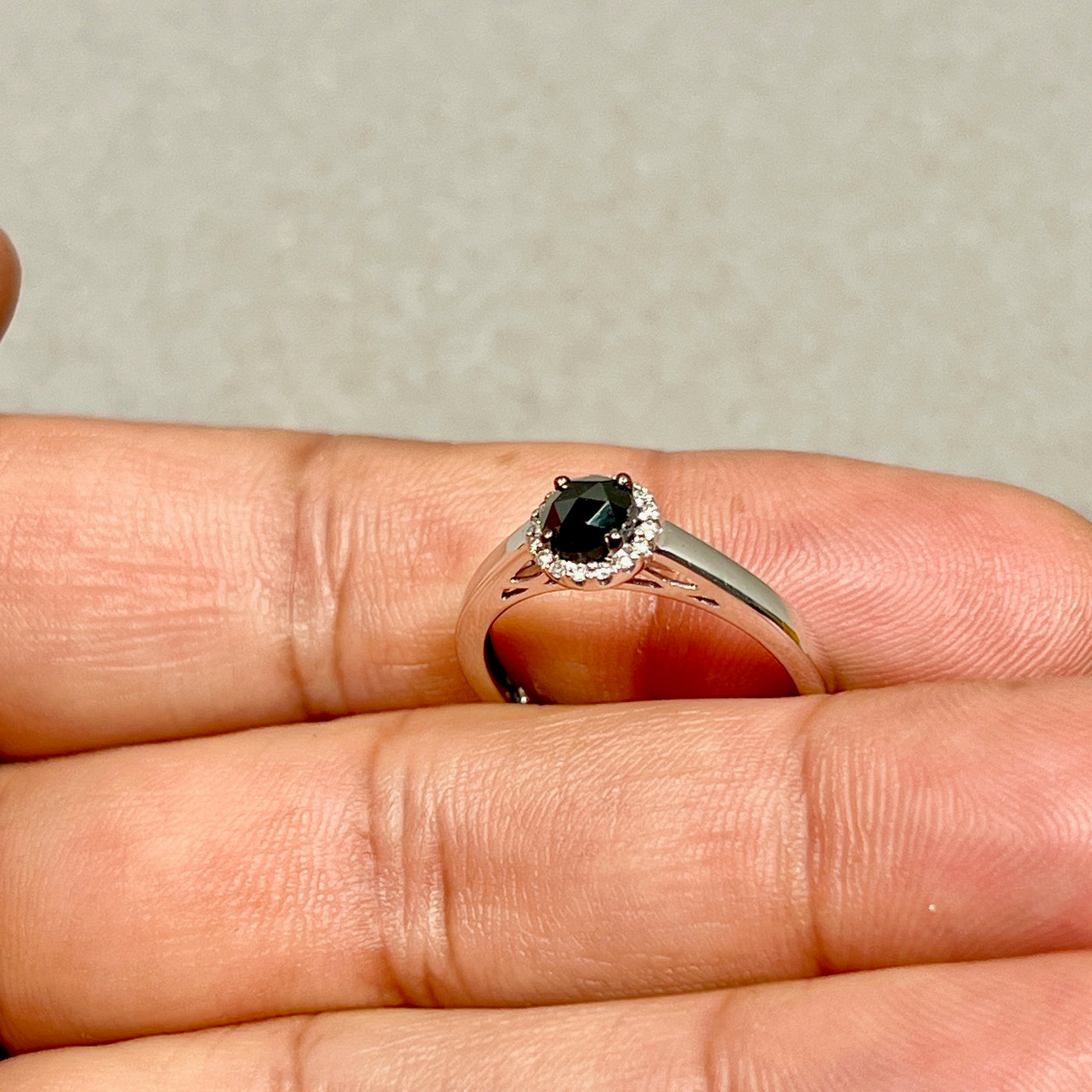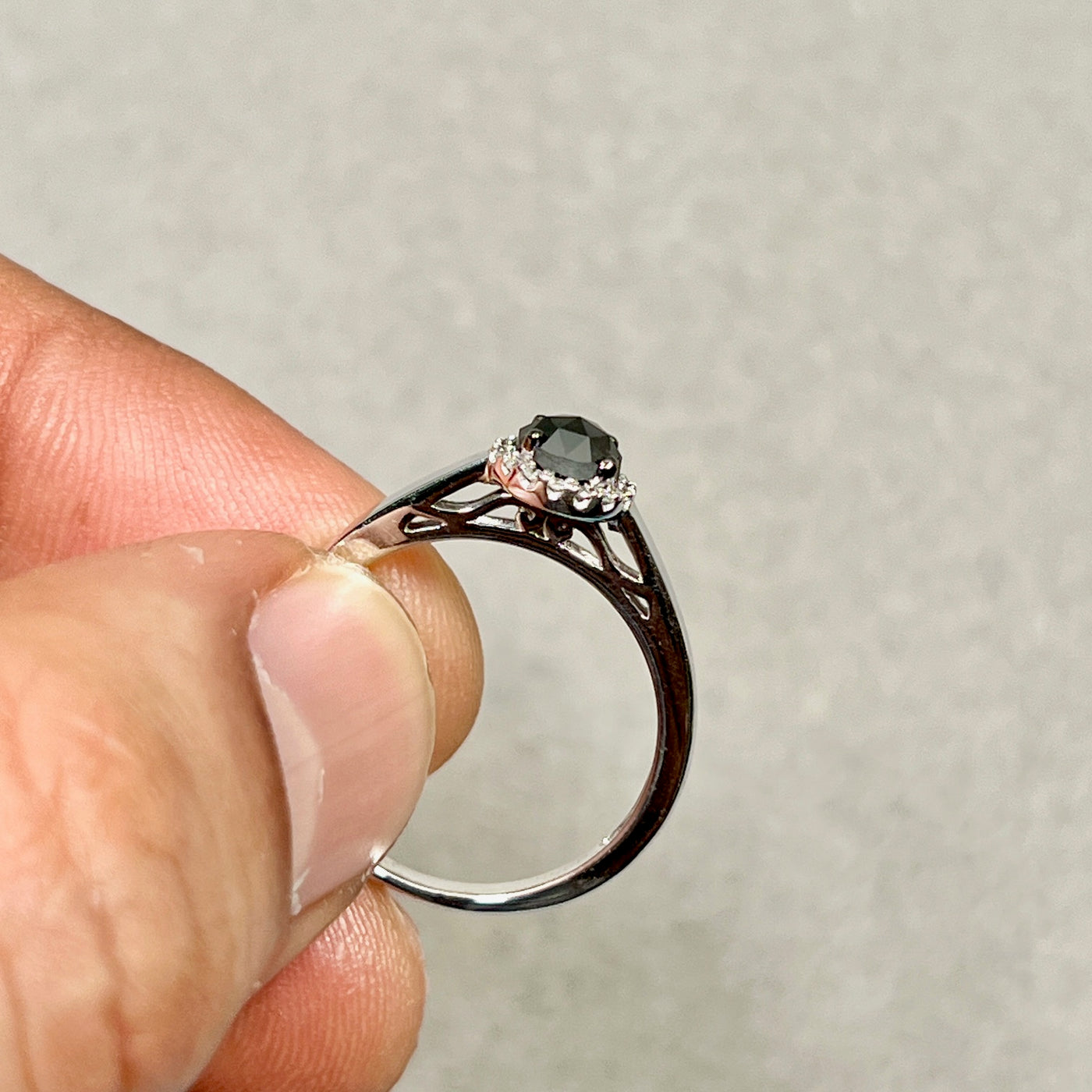 Black & White Diamond Ring 925 Silver | 5.1mm Rose Cut Black Diamond 0.50ct + 16 White Diamonds | Women Fashion, Anniversary Gift