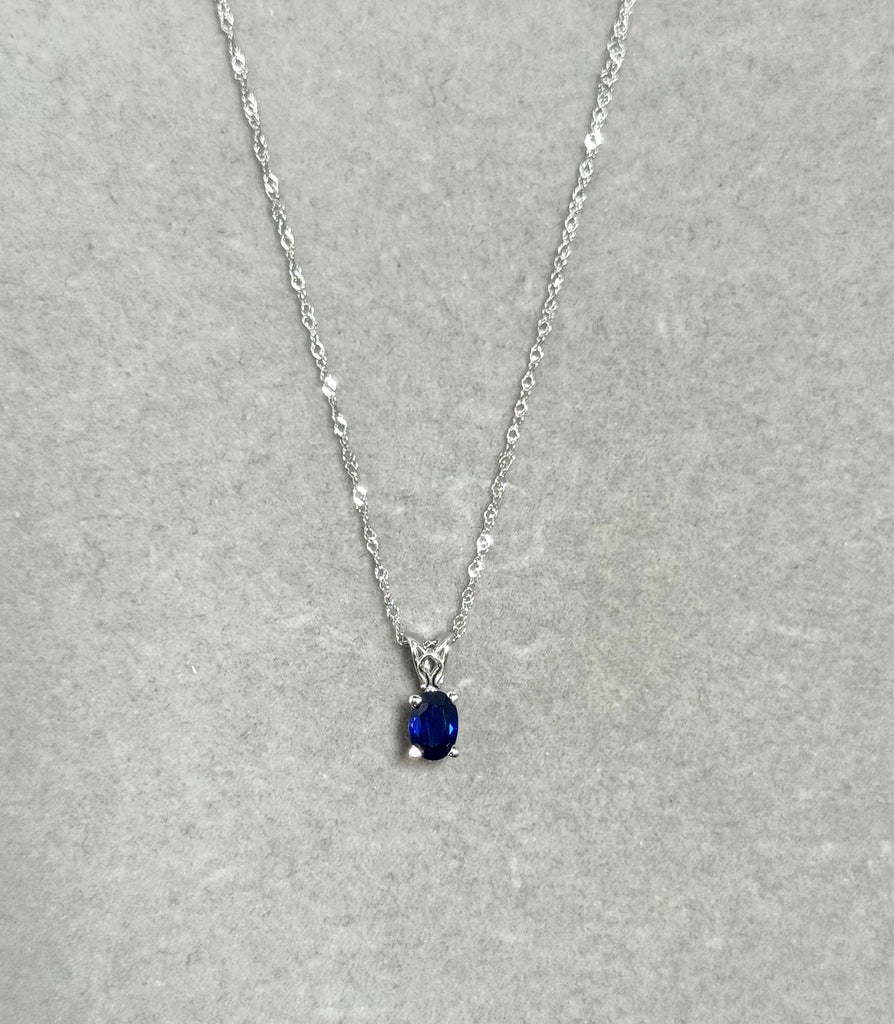 Blue Sapphire Pendant – 0.70 Ct Oval 6x4 mm AA Blue Sapphire Scroll Solitaire Necklace in Platinum with 18K White Gold Chain