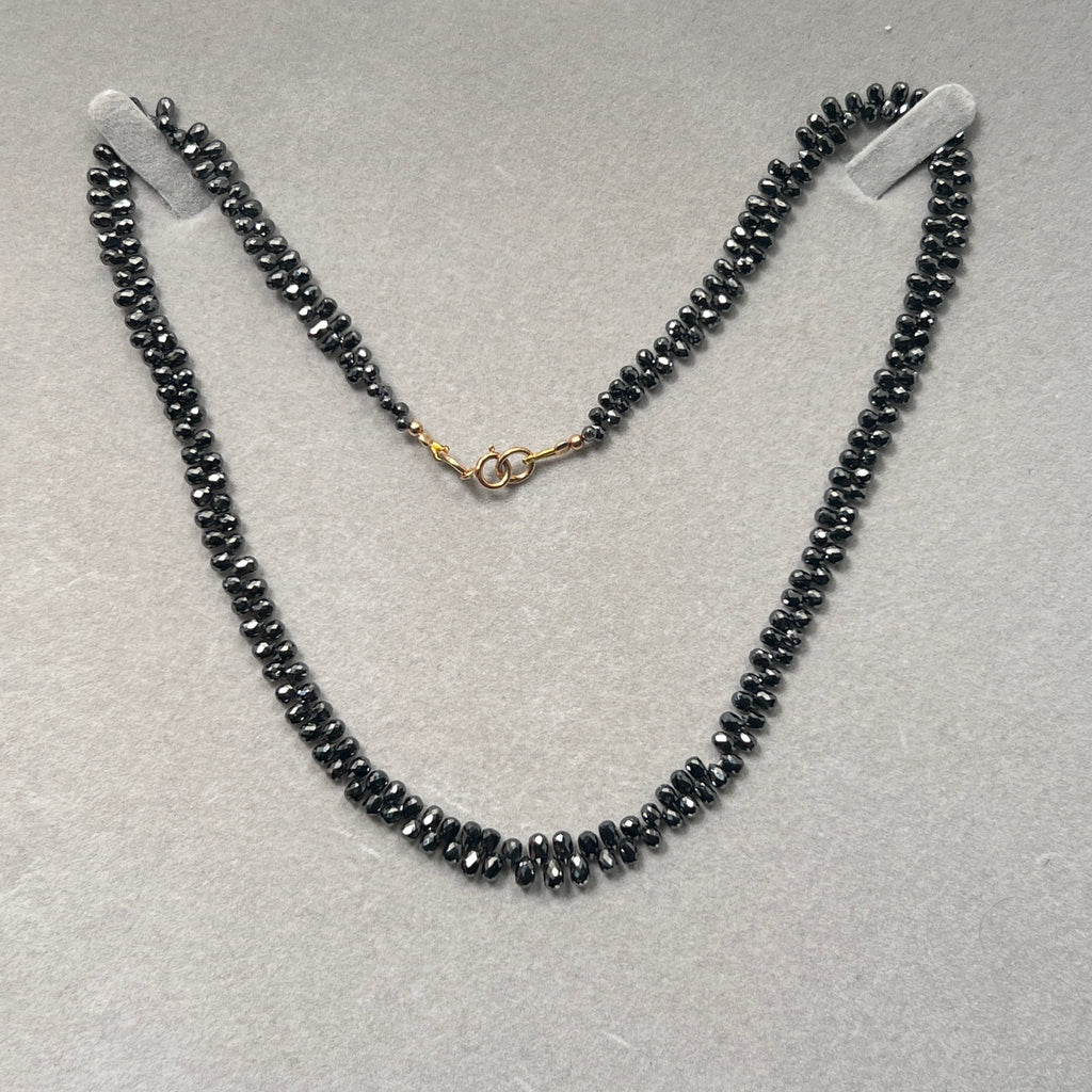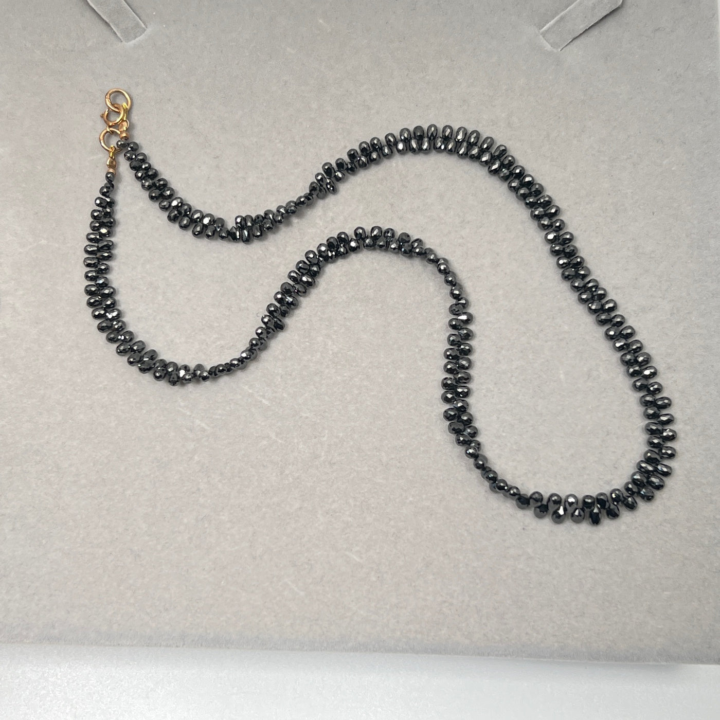 Elevate your style with this luxury Briolette Black Diamond Necklace, expertly crafted with 61.85 carats of natural faceted black diamonds hand-strung for exceptional brilliance and movement. Each briolette reflects light beautifully, giving this statement necklace an elegant and modern edge.