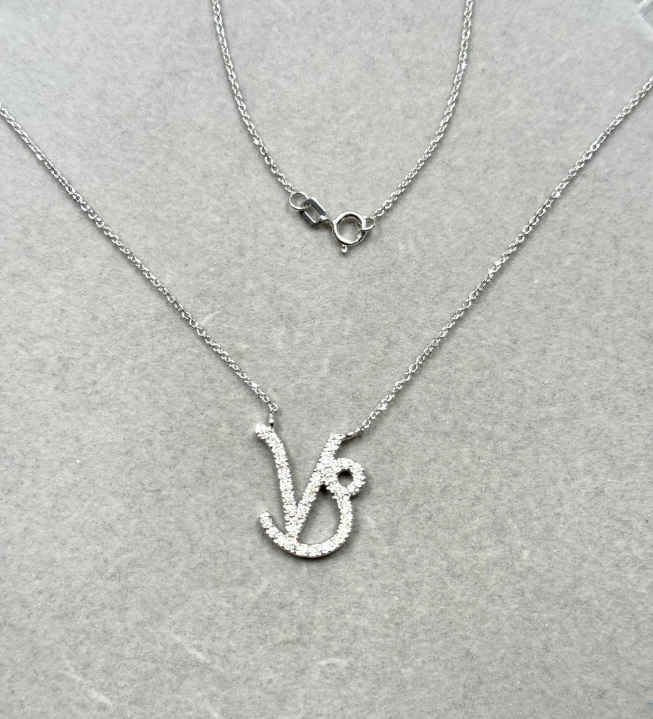 Capricorn Diamond Zodiac Pendant in 14K White Gold | 0.30–0.37 CT I-J SI2-I1 | Astrology Necklace | Birthday Gift for Capricorn Women