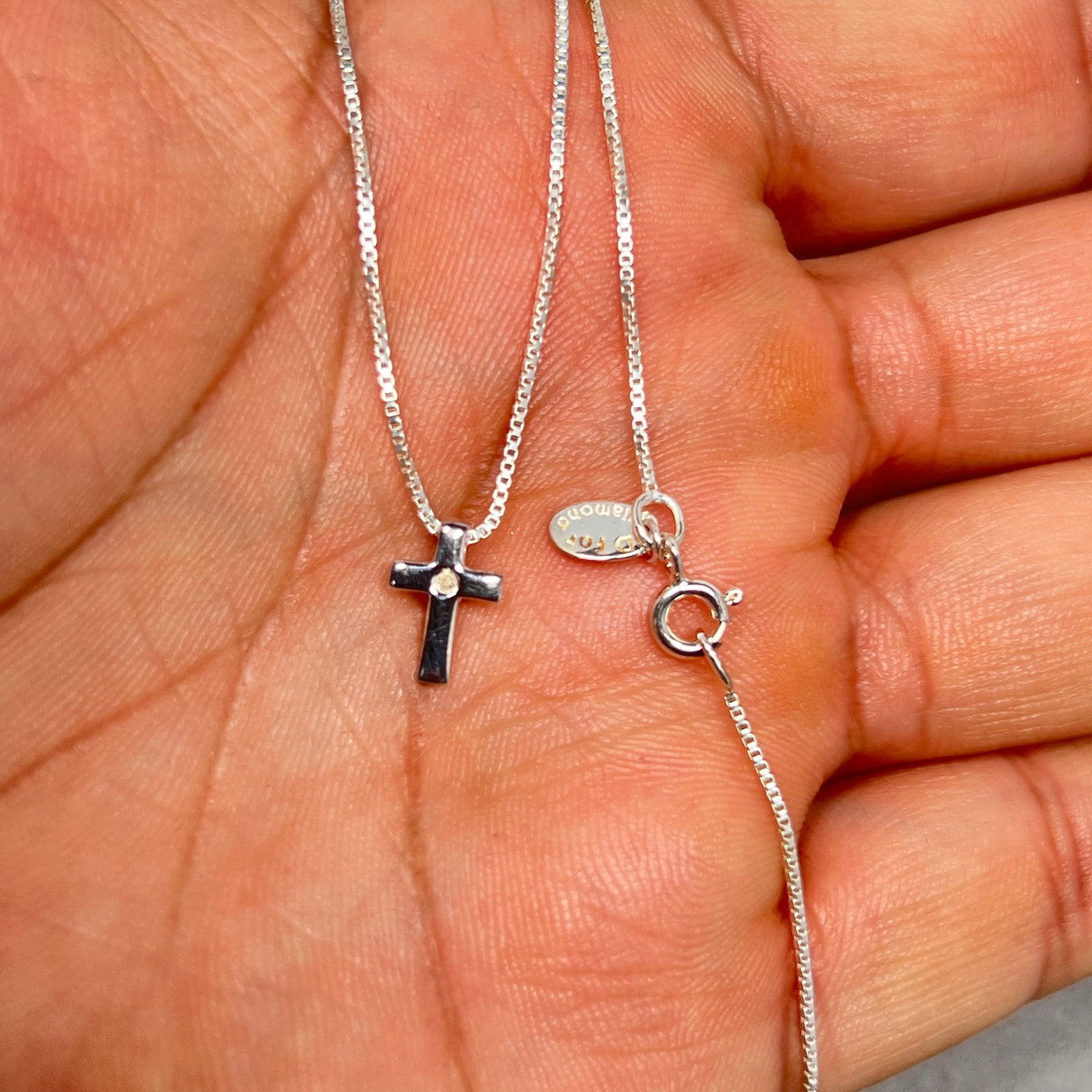 Children’s Diamond Cross Pendant | 0.01 Ct Natural Diamond | SI2-I1 Clarity I-J Color | Kids Religious Jewelry Gift Necklace