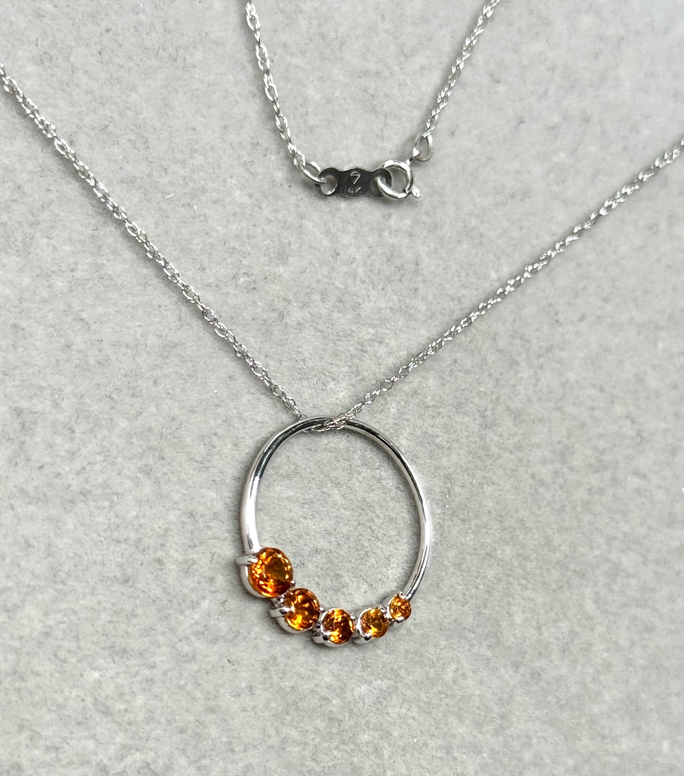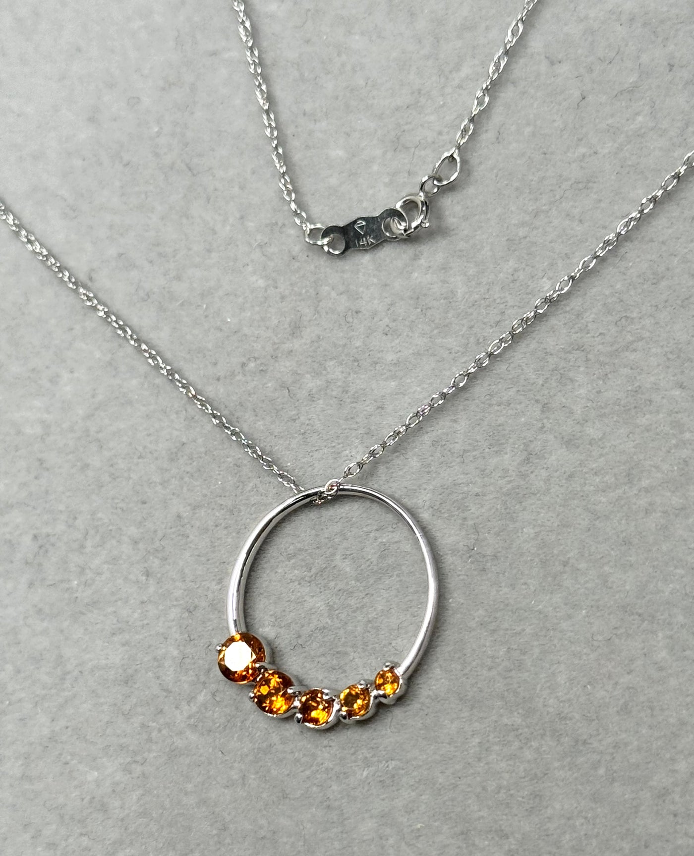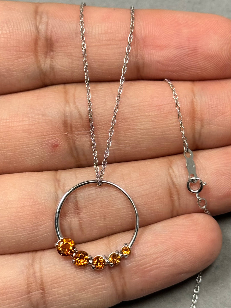 Citrine Journey Circle Pendant 14K White Gold | 0.30–0.50 ct Natural Citrine | Round Gemstone Pendant with 18” Chain