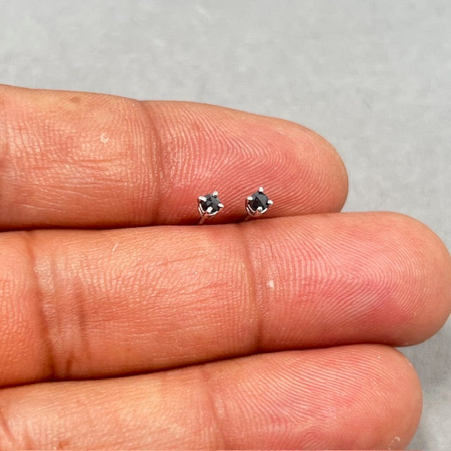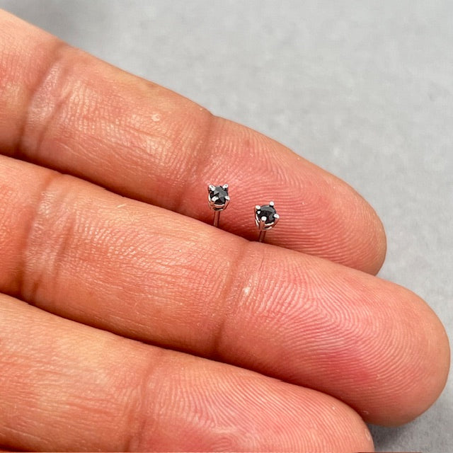Dainty AA Black Diamond Stud Earrings: 14K White Gold Rose Cut