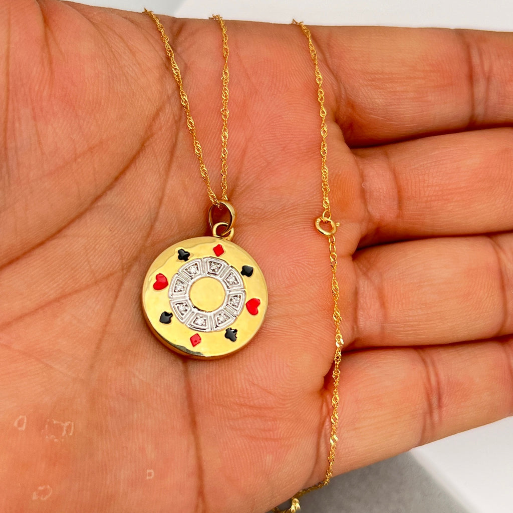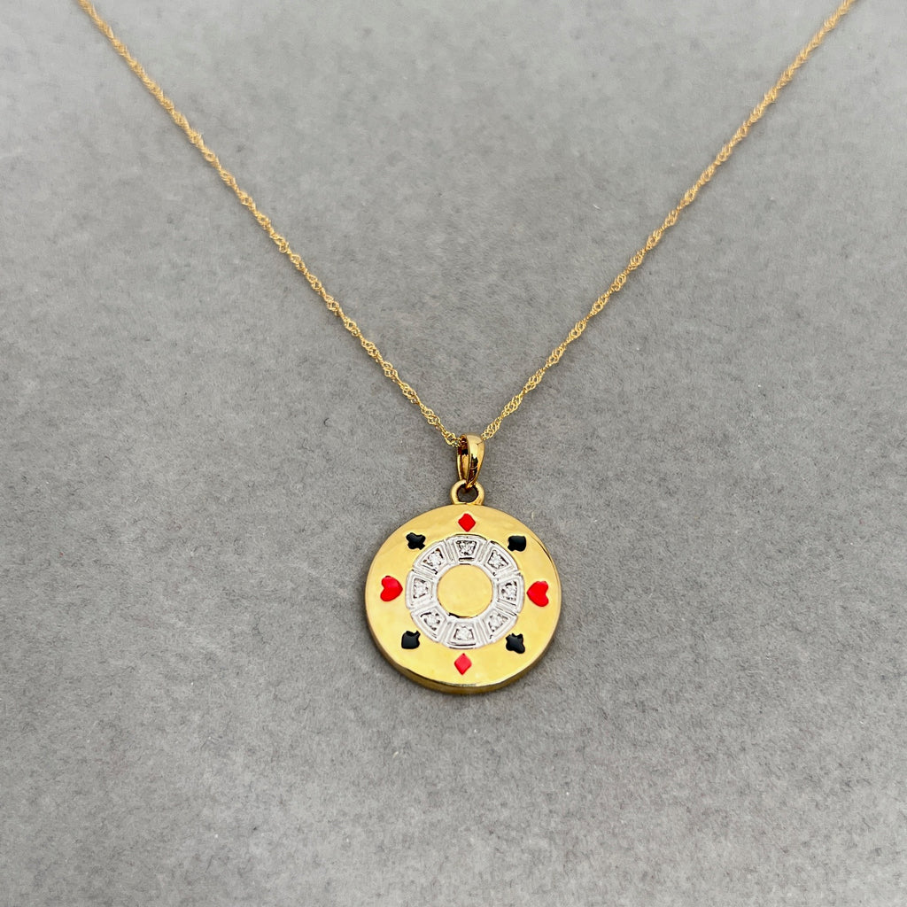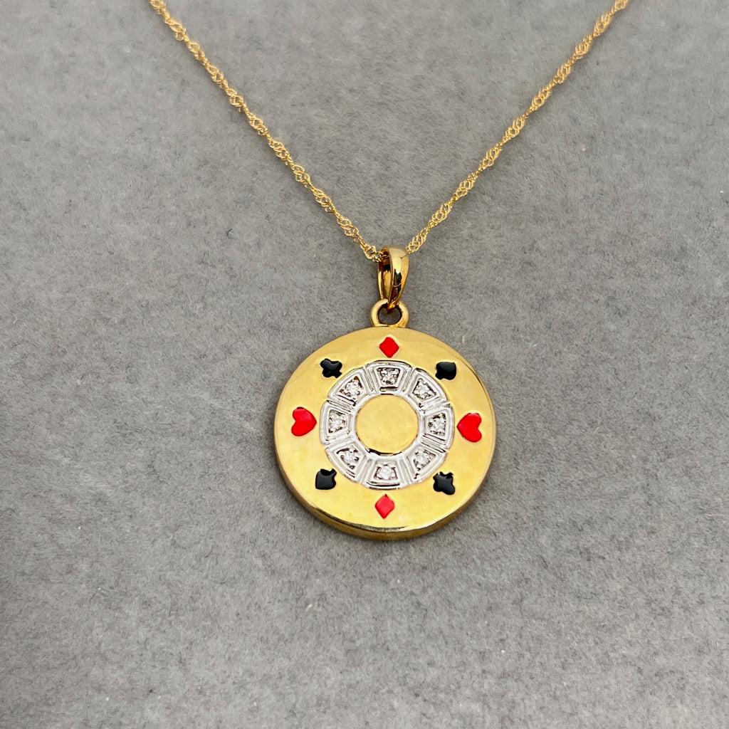 Diamond Poker Chip Pendant | 0.03–0.40 Ct SI2–I1 I–J Color | 14K Yellow Gold Necklace | Unique Fine Jewelry Gift with 18" Chain