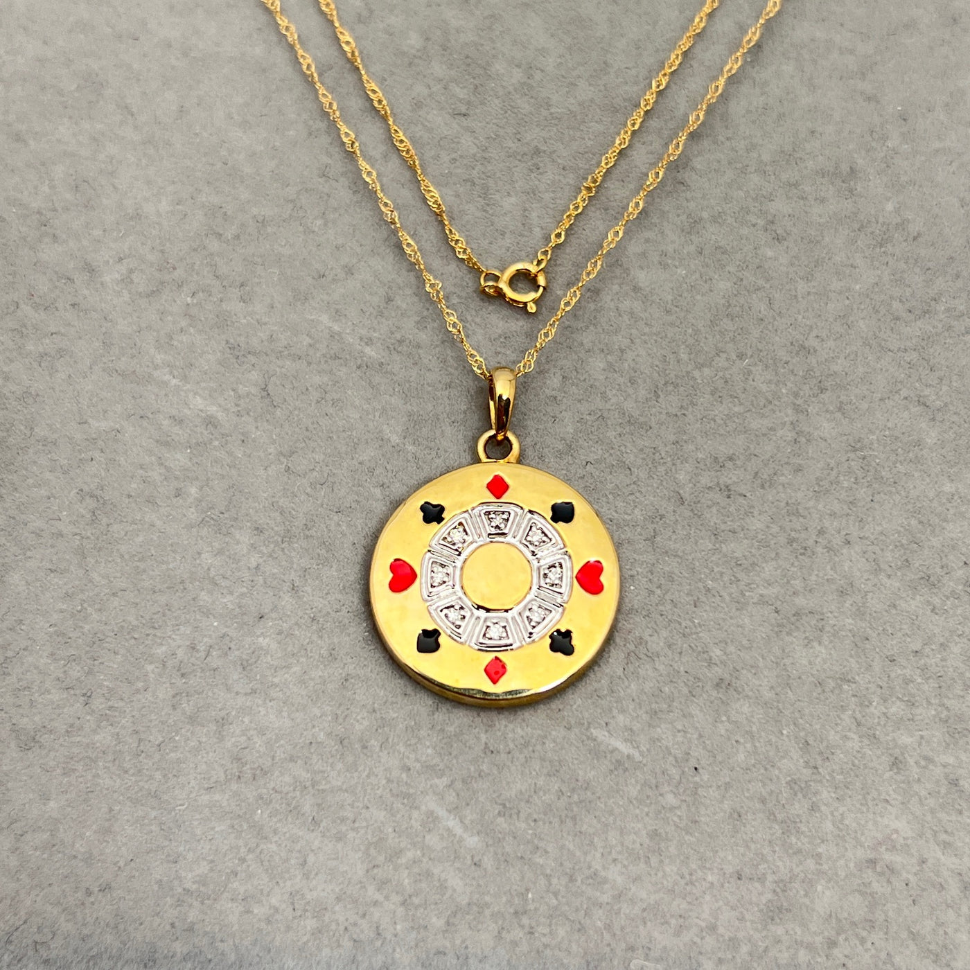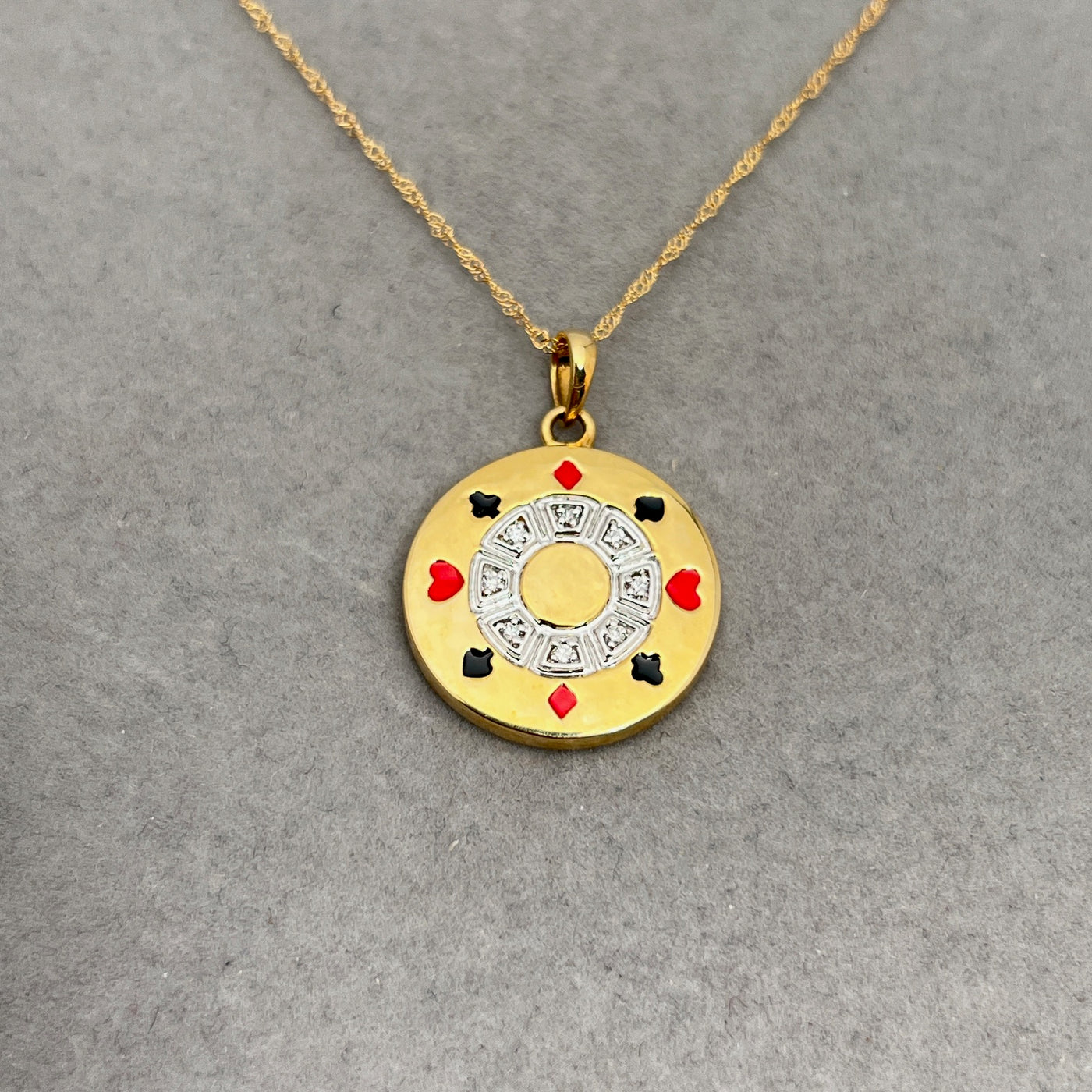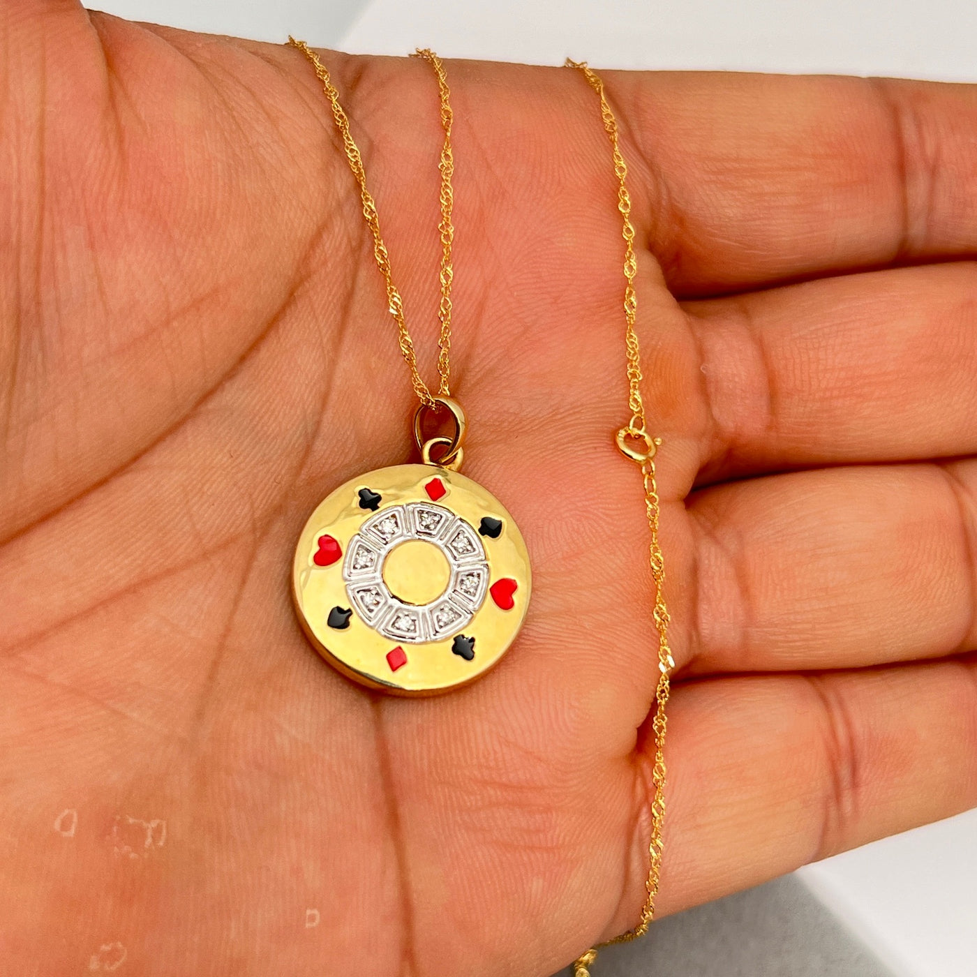 Diamond Poker Chip Pendant | 0.03–0.40 Ct SI2–I1 I–J Color | 14K Yellow Gold Necklace | Unique Fine Jewelry Gift with 18" Chain