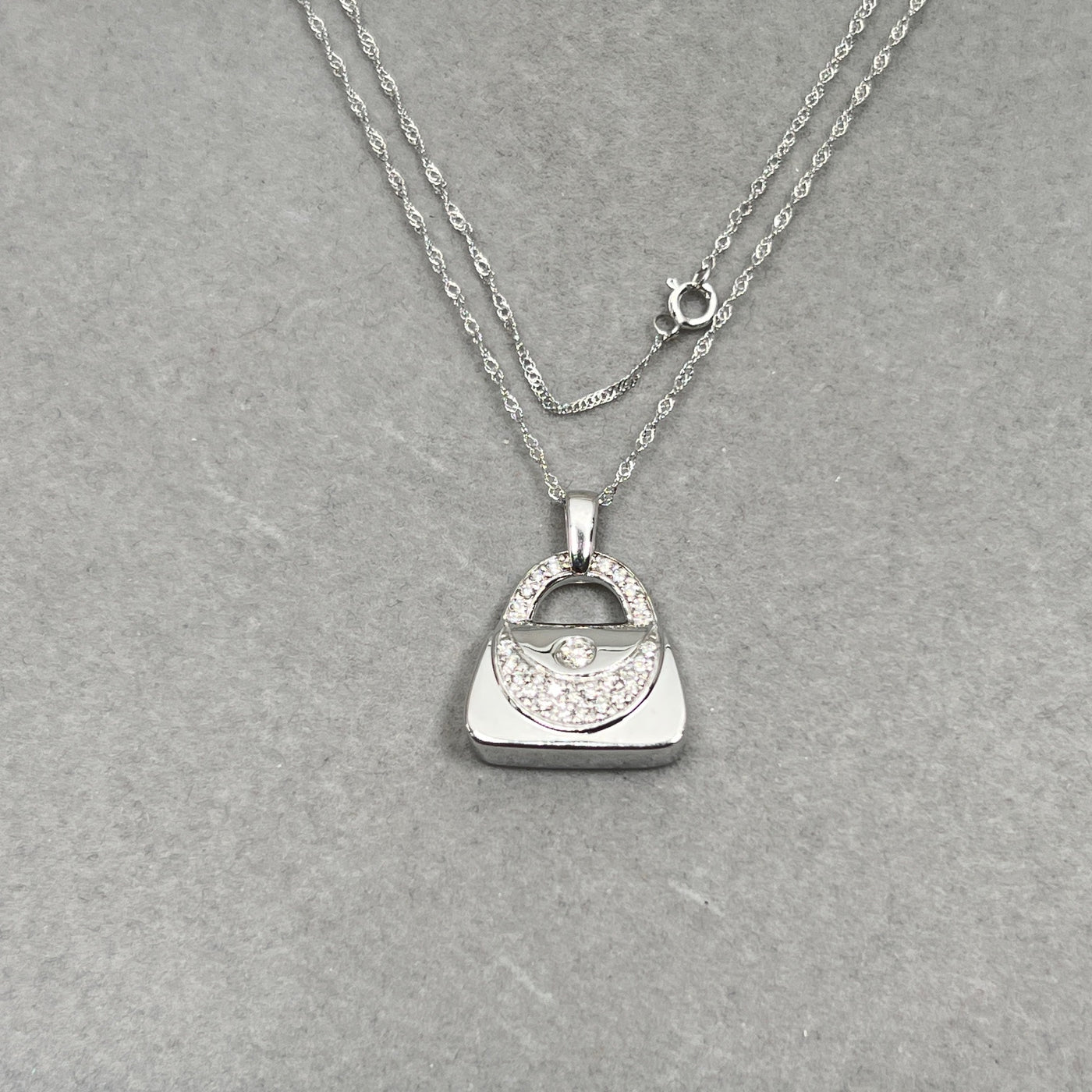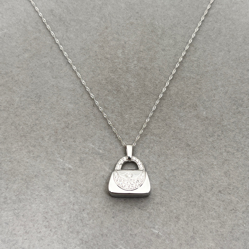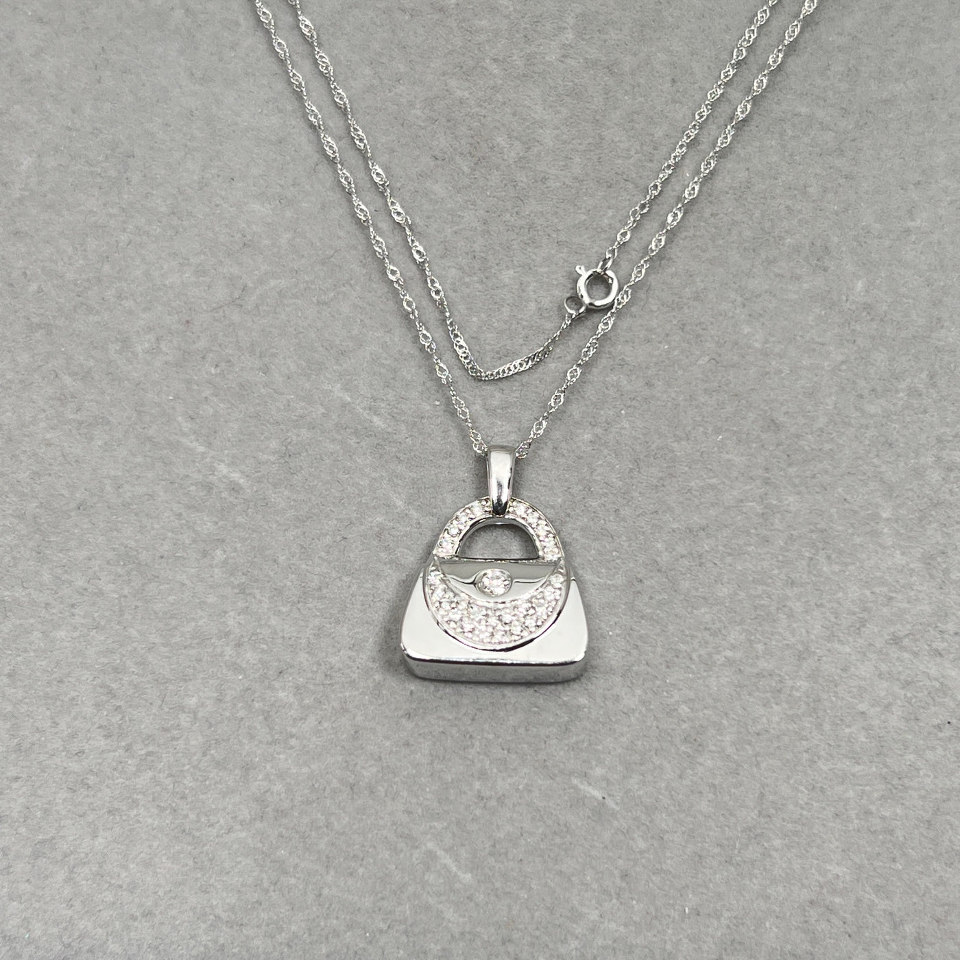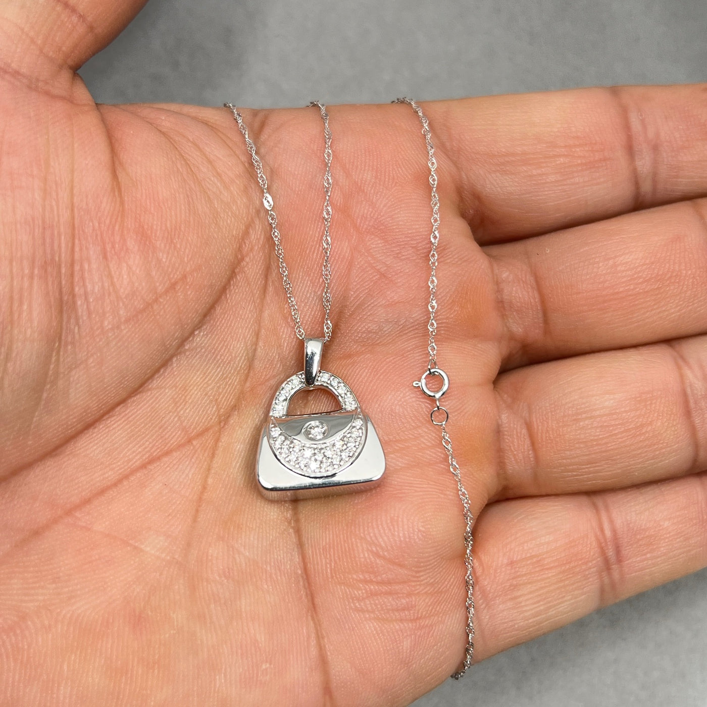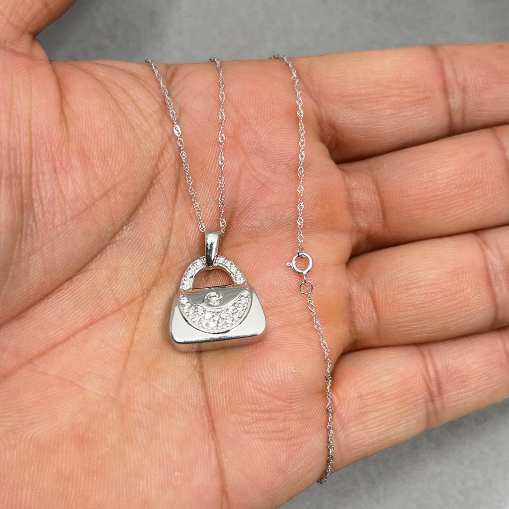 Diamond Purse Pendant 14K White Gold | 0.25–0.30 ct Natural Diamonds | Women’s Fine Jewelry Gift with 18" Singapore Chain