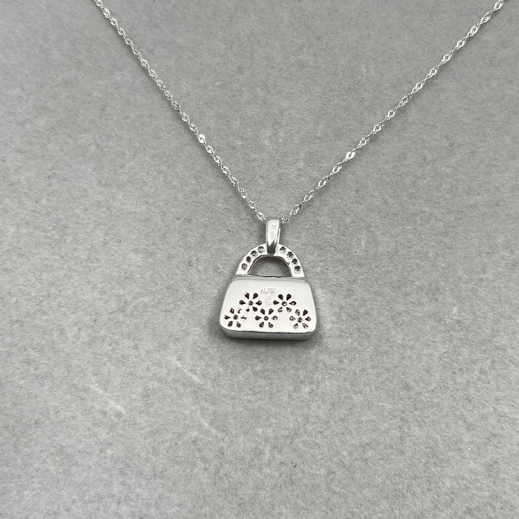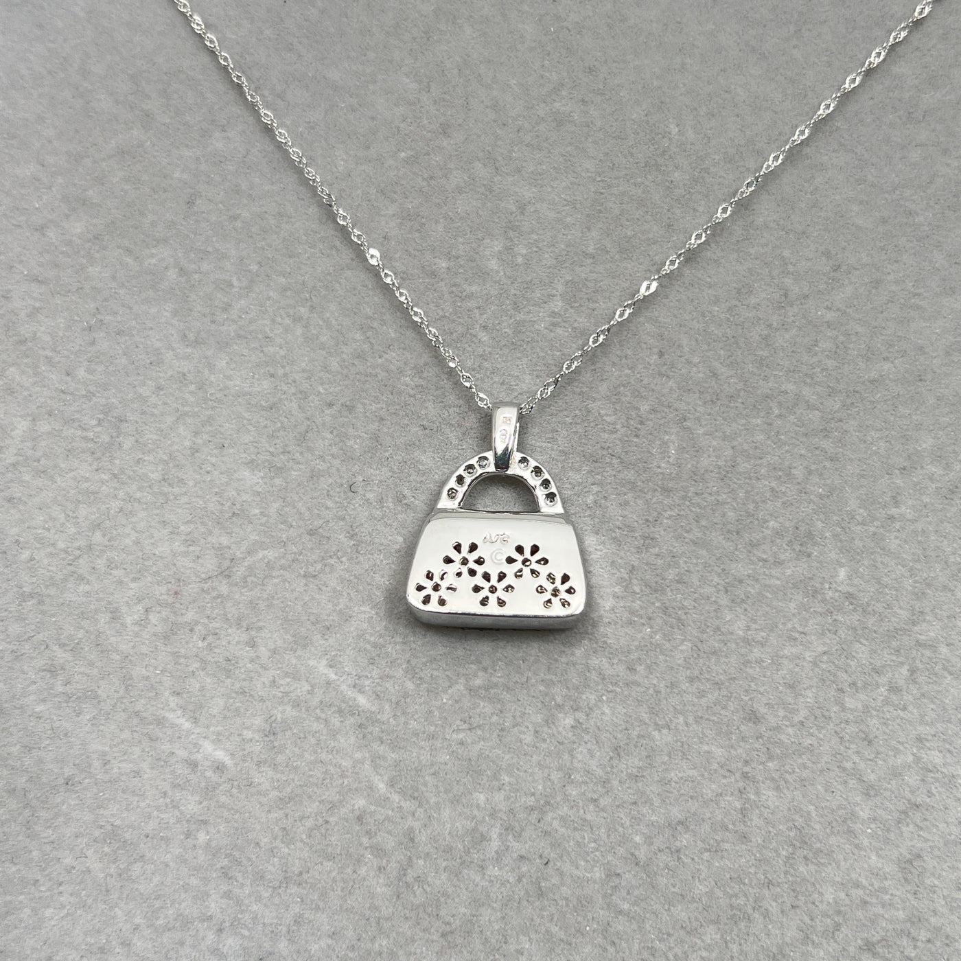 diamond purse pendant 14k, white gold women’s necklace, diamond accent pendant gift, natural diamond gold pendant.