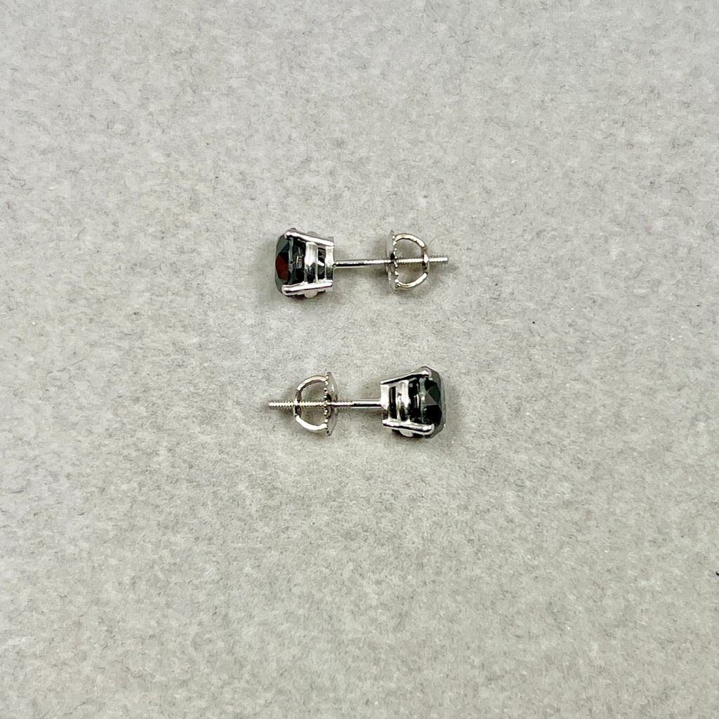 EGL Certified Black Diamond Stud Earrings 3.34 Cts Round Brilliant Platinum Screwback