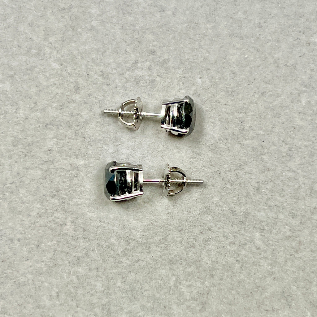 These fascinating EGL USA Certified Genuine Black Diamond Stud Earrings showcase bold elegance and refined craftsmanship. Featuring AA quality round brilliant black diamonds, each stone is securely prong set in premium platinum for a timeless and luxurious finish. With an approximate total black diamond weight of 3.93 carats, these earrings make a confident statement while maintaining classic sophistication. Designed with screwback posts, they offer enhanced comfort and security. The black diamonds are EGL USA certified, with individual appraised values of $965 and $1,200 respectively (appraisal applies to diamonds only, not the platinum). A truly beautiful pair of earrings crafted to elevate any jewelry collection.