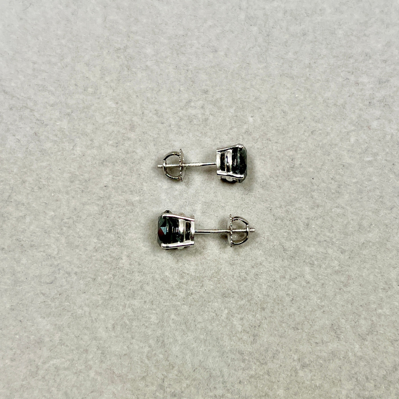 EGL Certified Black Diamond Stud Earrings 3.93 Cts Round Brilliant Platinum Screwbacks